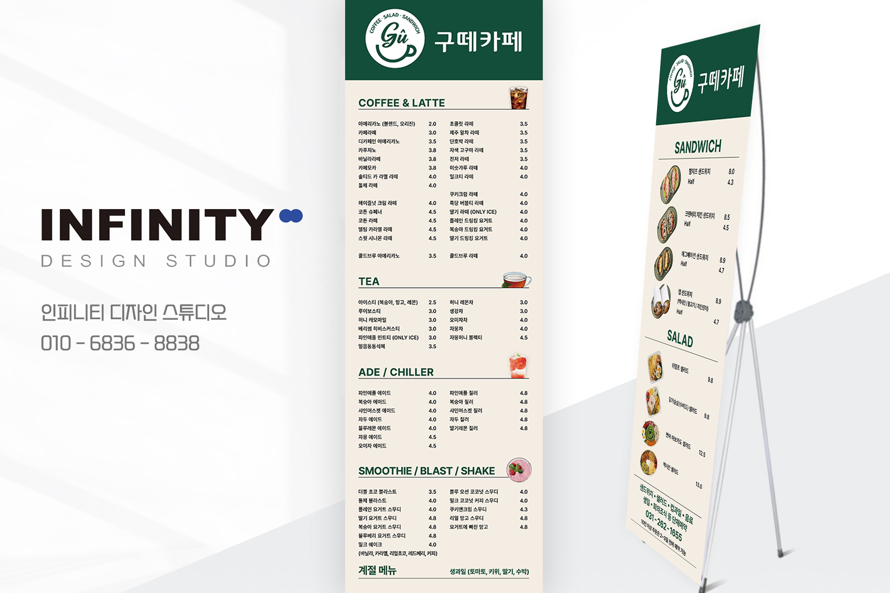 안녕하세요, 카페 배너 제작 전문 인피니티 디자인 스튜디오 입니다. 카페 오픈 준비중이거나, 이미 카페를 운영중이신 사장님들께 인기만점인 카페메뉴 배너 제작! 추천 포스팅 드립니다 카페