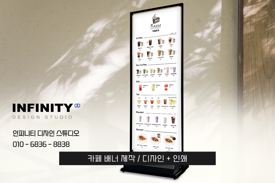 안녕하세요, 카페 배너 제작 전문 인피니티 디자인 스튜디오 입니다. 카페 오픈 준비중이거나, 이미 카페를 운영중이신 사장님들께 인기만점인 카페메뉴 배너 제작! 추천 포스팅 드립니다 카페