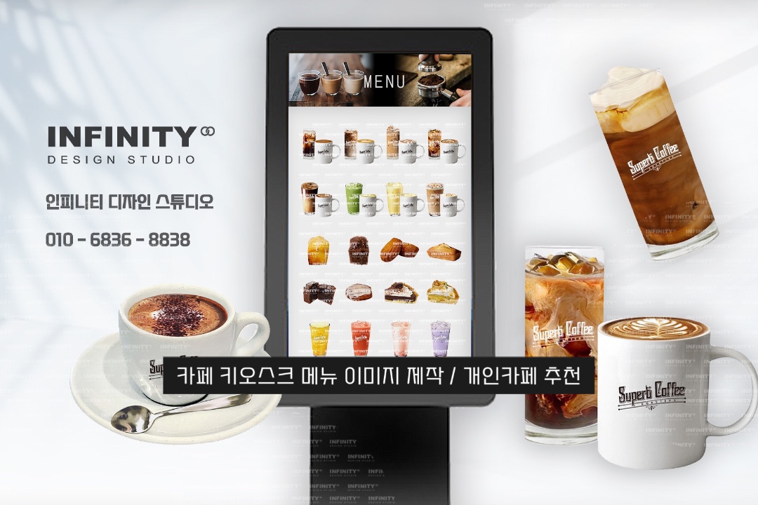 안녕하세요, 카페 키오스크 메뉴 제작 전문 인피니티 디자인 스튜디오 입니다. 오늘은 베이커리 카페에서 의뢰해주신 메뉴 제작 소식 전해드립니다. 키오스크 / 배달어플 등 스마트오더 기기에