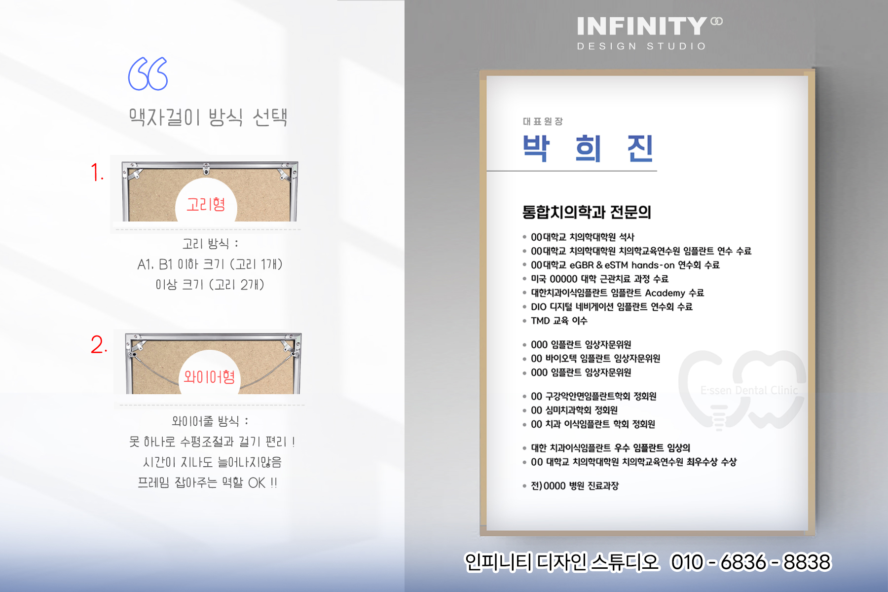 한의원 액자 제작, 원장님 홍보물 디자인+인쇄+제작