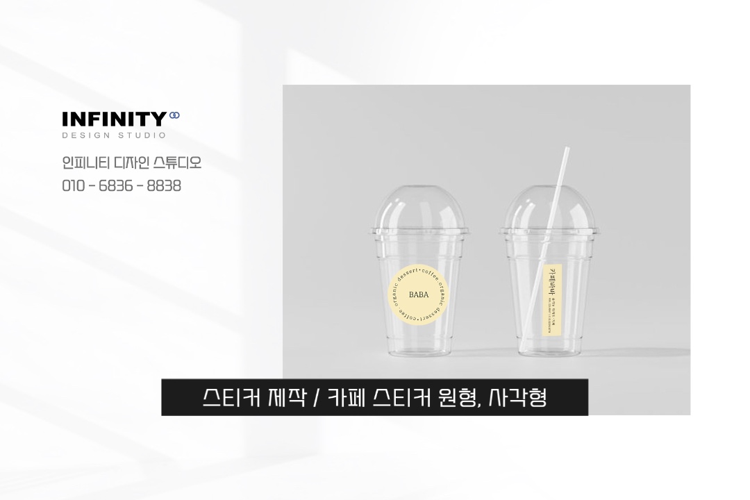 안녕하세요, 카페 홍보물 제작 전문 인피니티 디자인 스튜디오 입니다. 오늘은 신규 오픈 카페 제작물 진행 소식 전해드립니다 :) 스티커 제작, 카페 스티커, 키오스크 메뉴이미지, 배너 제작 추