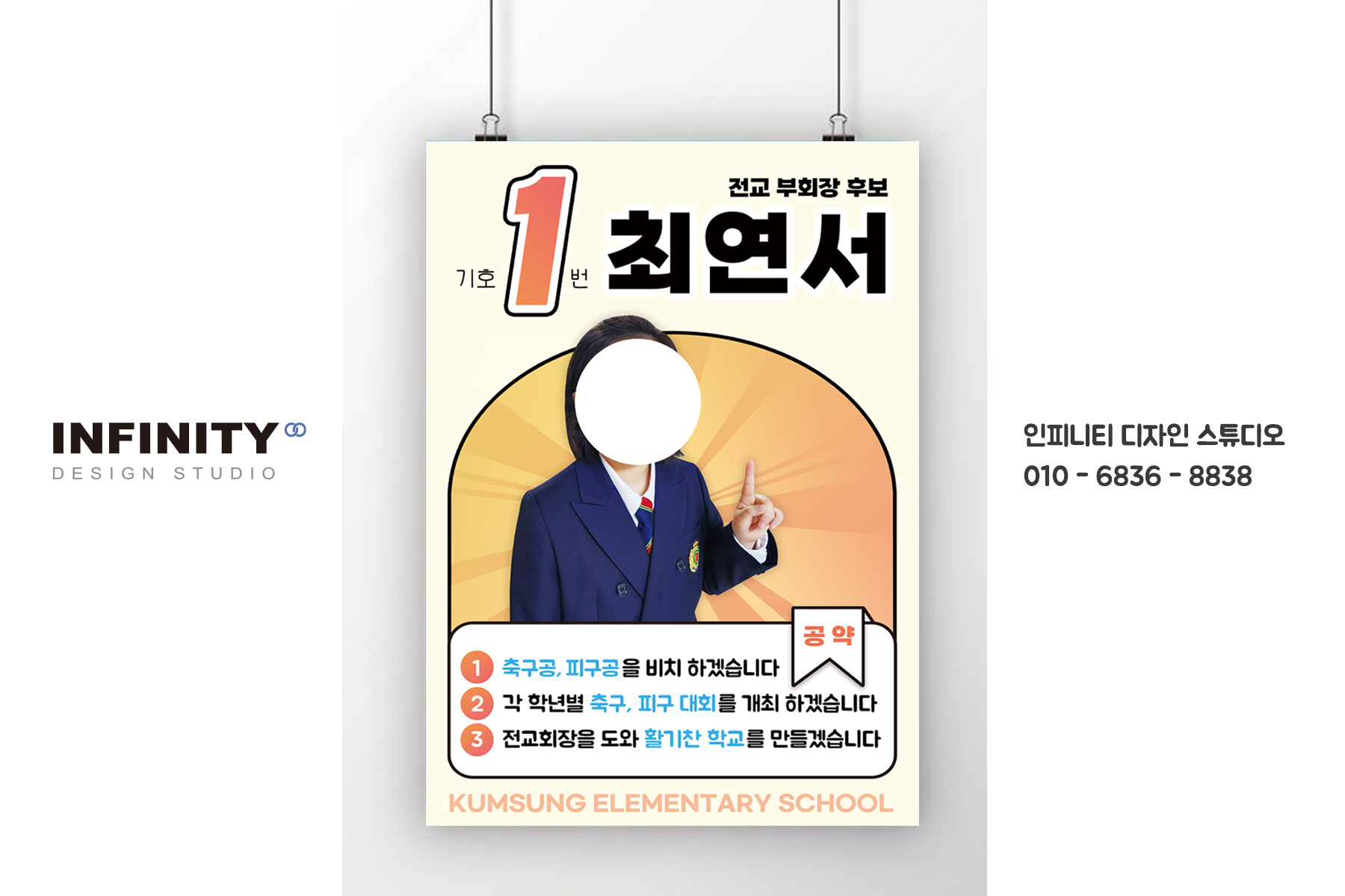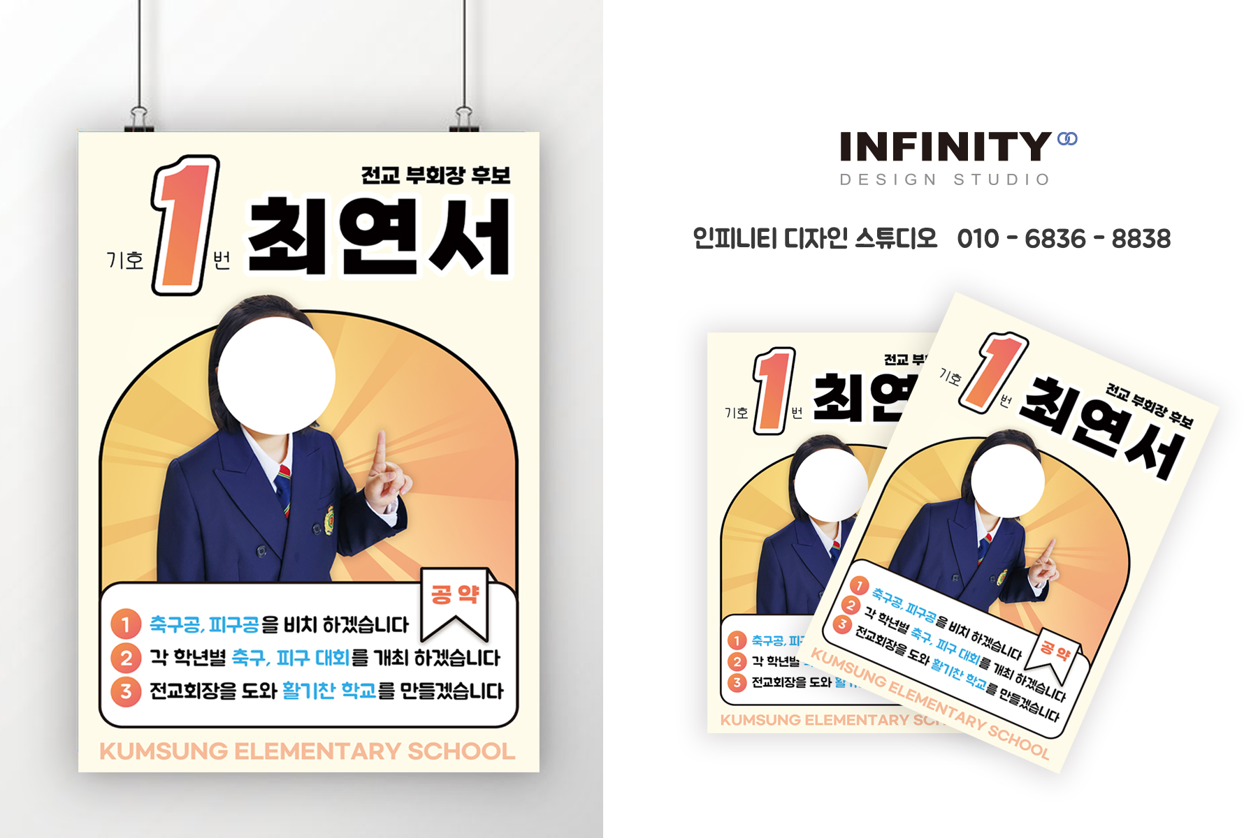 안녕하세요, 선거 포스터, 피켓, 어깨띠 등 선거 홍보물 제작 / 디자인 전문 인피니티 디자인 스튜디오 입니다. 학교 전교회장 선거로 한창인 요즘 문의와 의뢰가 많이 오고 있네요 ^^ 고등학교
