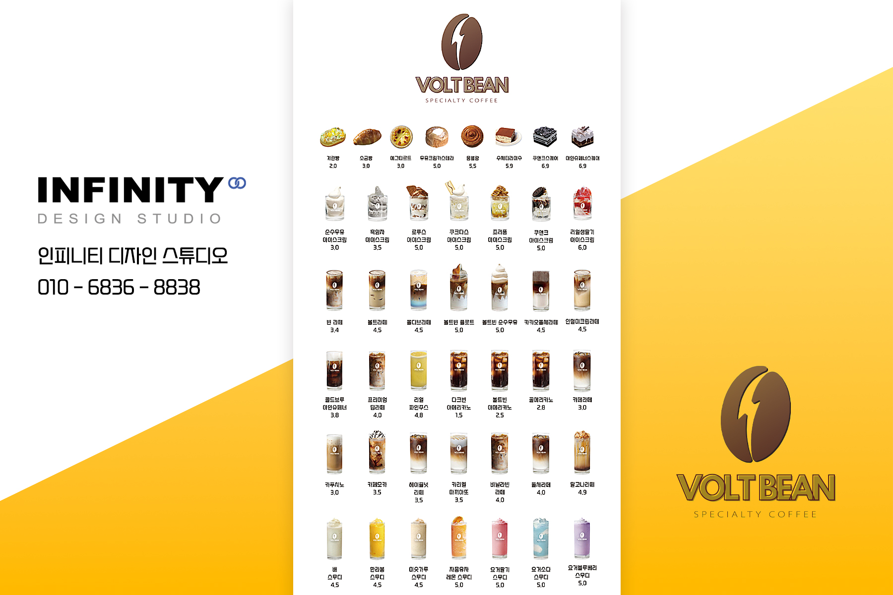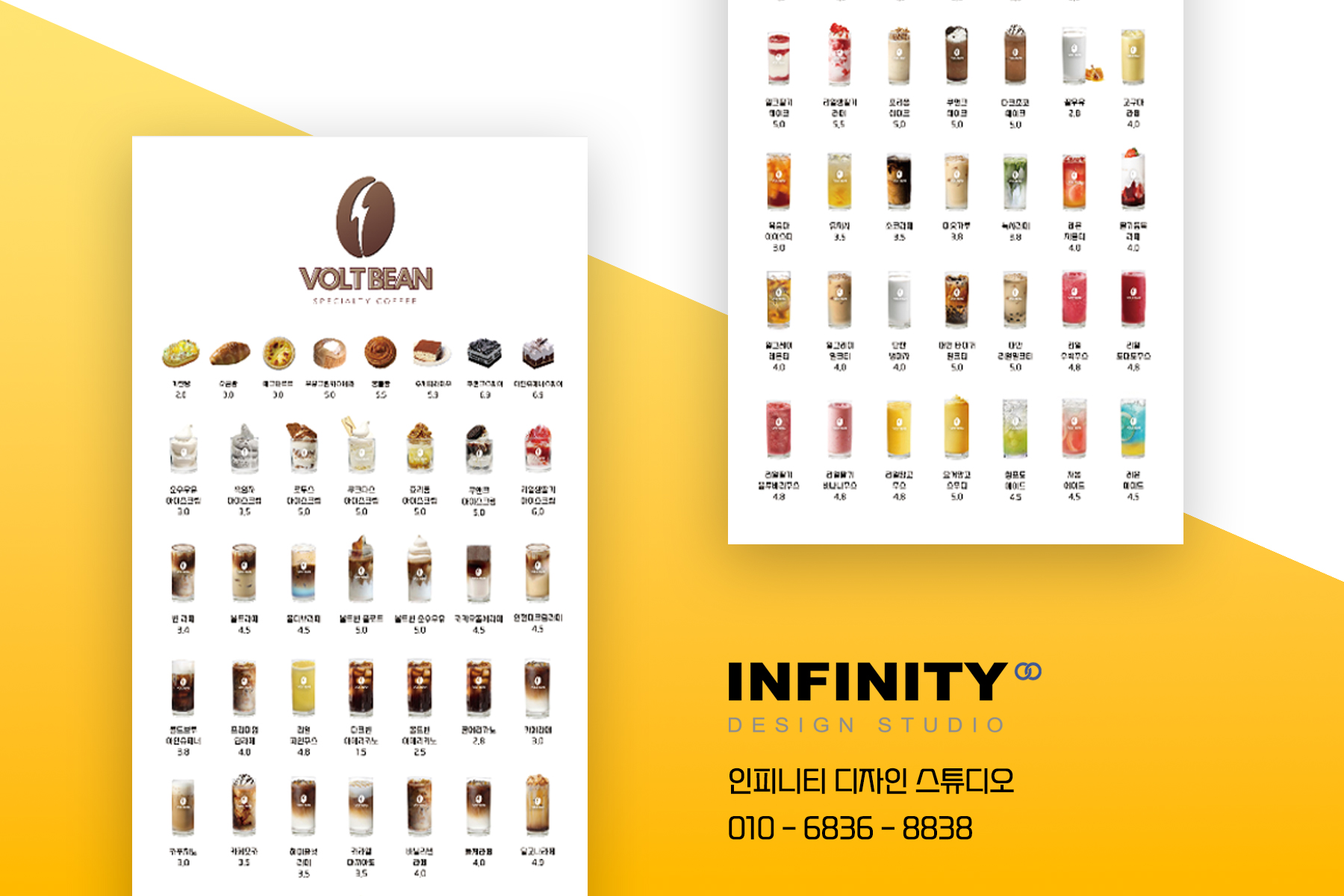 카페 홍보물 제작 추천! 카페 메뉴 촬영 이미지 제작 키오스크, 배민 등록, 배너 제작 안녕하세요, 홍보물 디자인, 제작 전문 인피니티 디자인 스튜디오 입니다. 키오스크, 배민 메뉴, 디저트 메