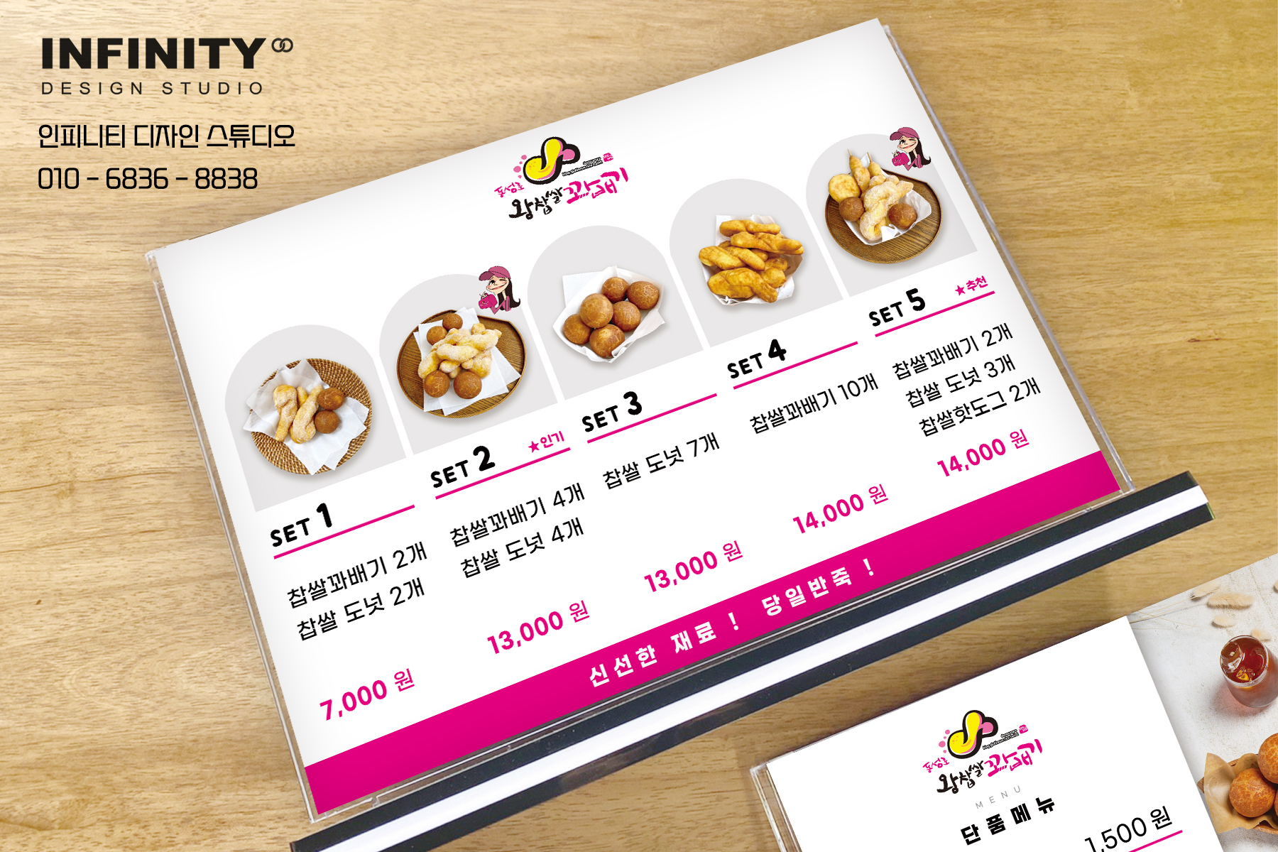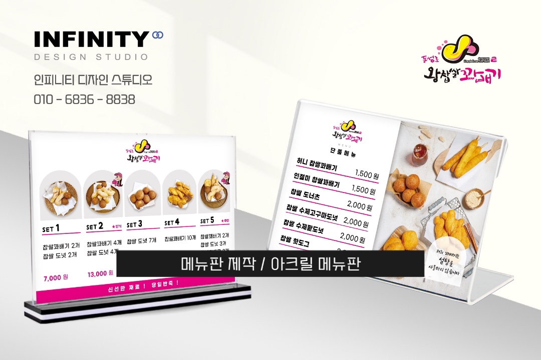 카페 배너 제작, 디저트 홍보 배너, 카페 메뉴판, 아크릴 메뉴판 추천 안녕하세요, 디자인, 제작 전문 인피니티 디자인 스튜디오 입니다. 개인카페 사장님께서 의뢰해주신 카페 배너, 메뉴판, 메