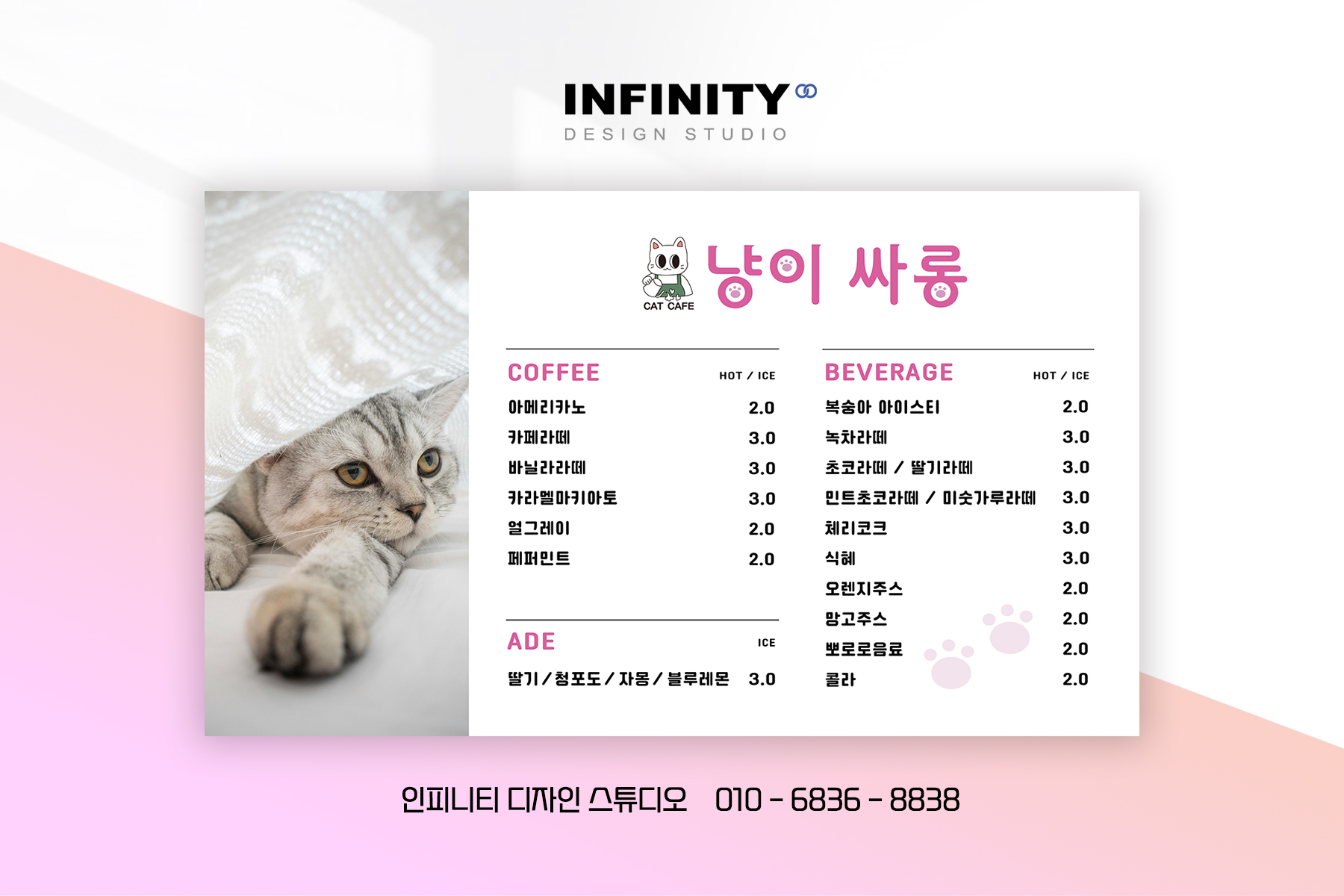 안녕하세요, 카페 메뉴판 제작 전문 인피니티 디자인 스튜디오 입니다. 오늘은 카페 전메뉴 메뉴판 디자인, 인쇄 강추 소식으로 포스팅 드립니다. 카페 운영중인 사장님들께 추천드리는 깔끔한