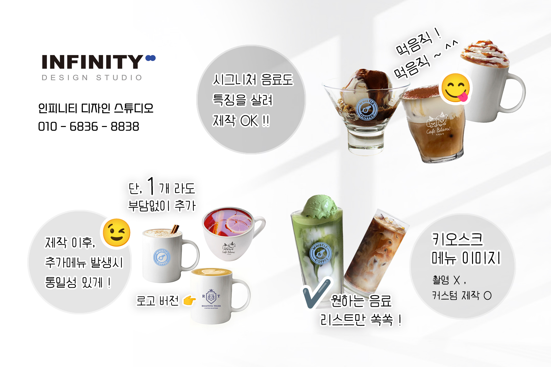 회사 카페 키오스크 메뉴 이미지 제작 사내 카페 키오스크 메뉴 이미지 제작 개인 카페 키오스크 메뉴 이미지 제작 안녕하세요, 카페 키오스크 메뉴 이미지 제작 전문, 인피니티 디자인 스튜디