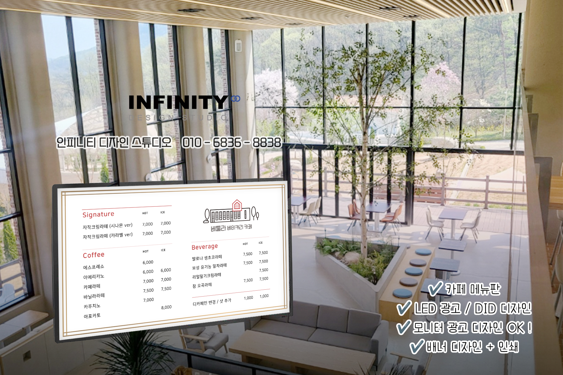 안녕하세요, 디자인, 제작 전문 인피니티 디자인 스튜디오 입니다. 인쇄물 메뉴판과 함께 DID 메뉴판의 디자인 의뢰가 많은데요~! 필요한 내용을 담아 깔끔한 제작 추천드리며 포스팅 시작합니다