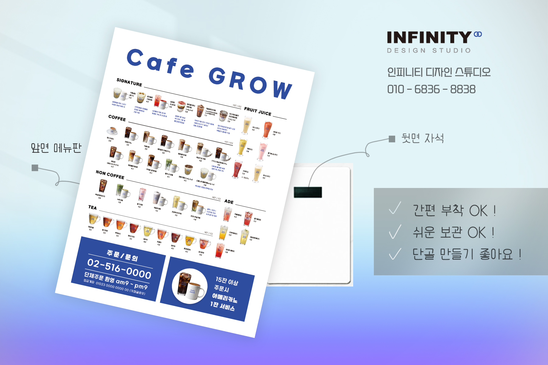 단골만들기에도 좋은 메뉴판으로 인기입니다