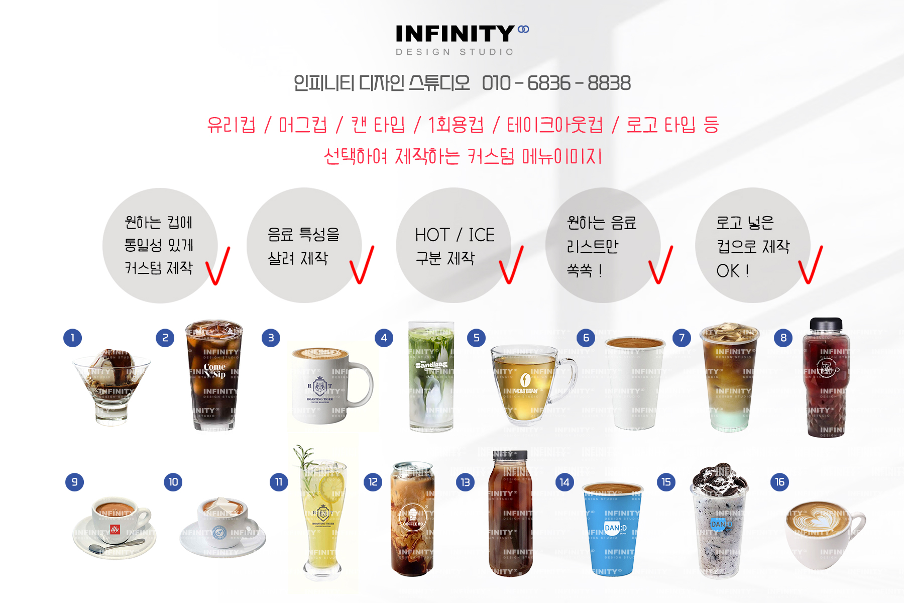 다양한 컵 중 선택하여 제작가능하며