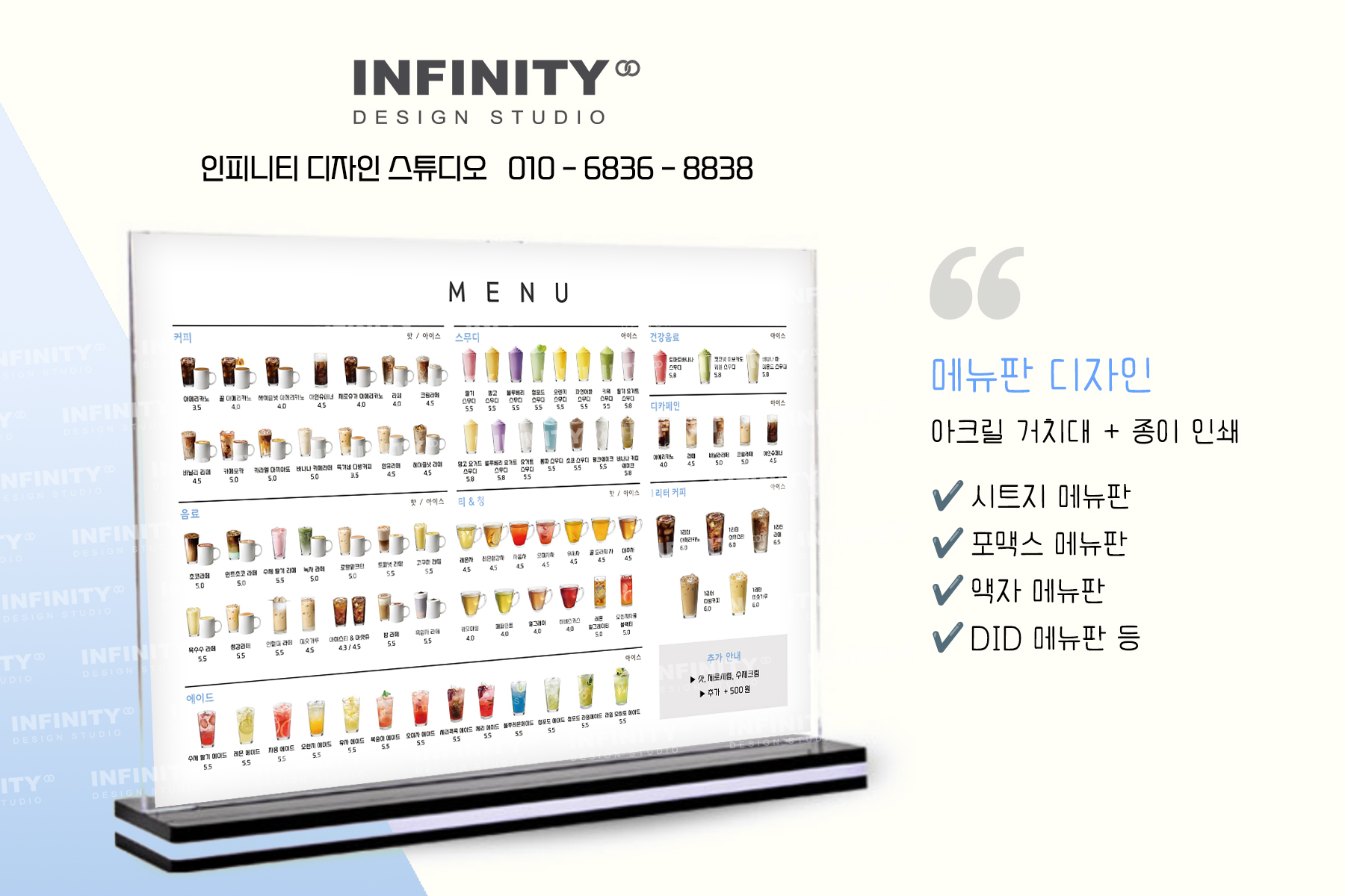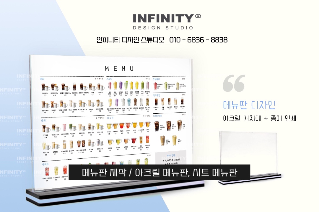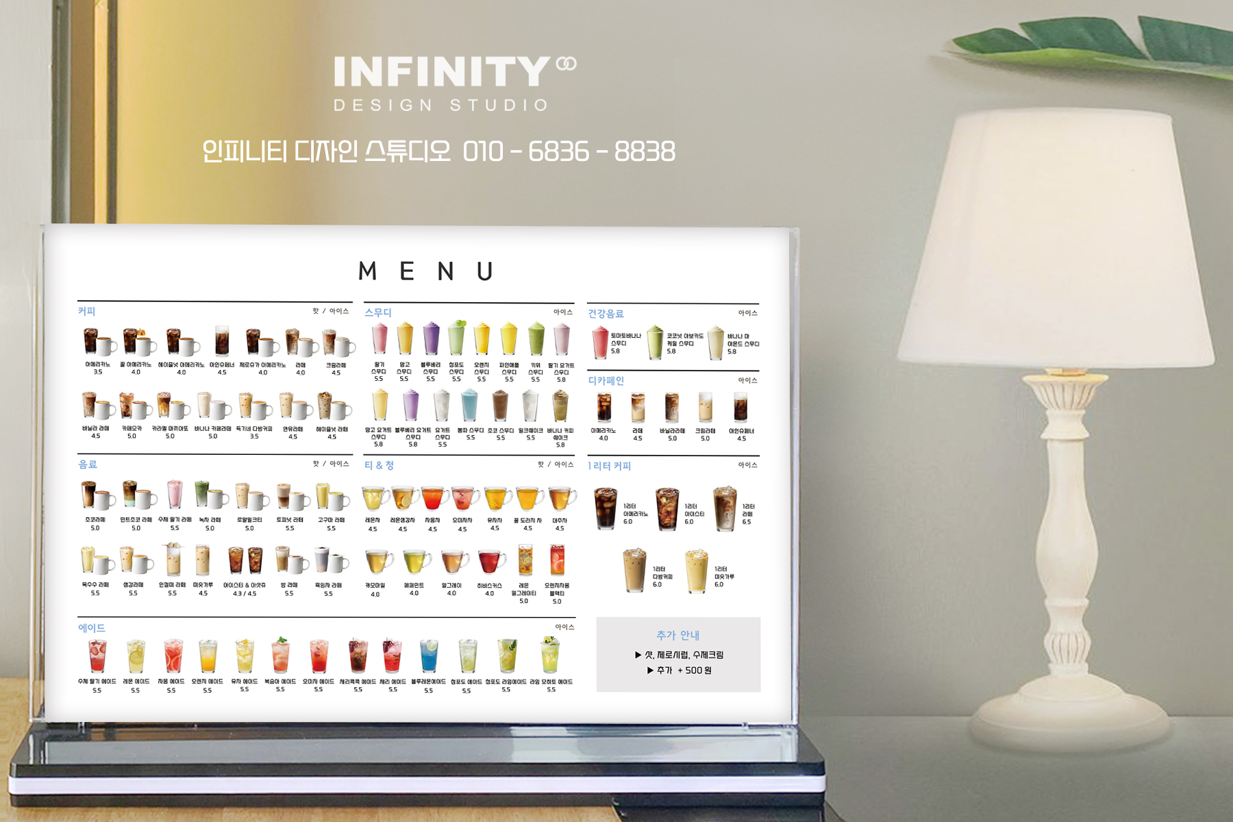 카페 메뉴 촬영 제작, 키오스크 등록, 메뉴판 제작 사진 촬영 제작 추천 안녕하세요, 디자인, 제작 전문인피니티 디자인 스튜디오 입니다. 키오스크 운영중이시거나,카페 메뉴 촬영
