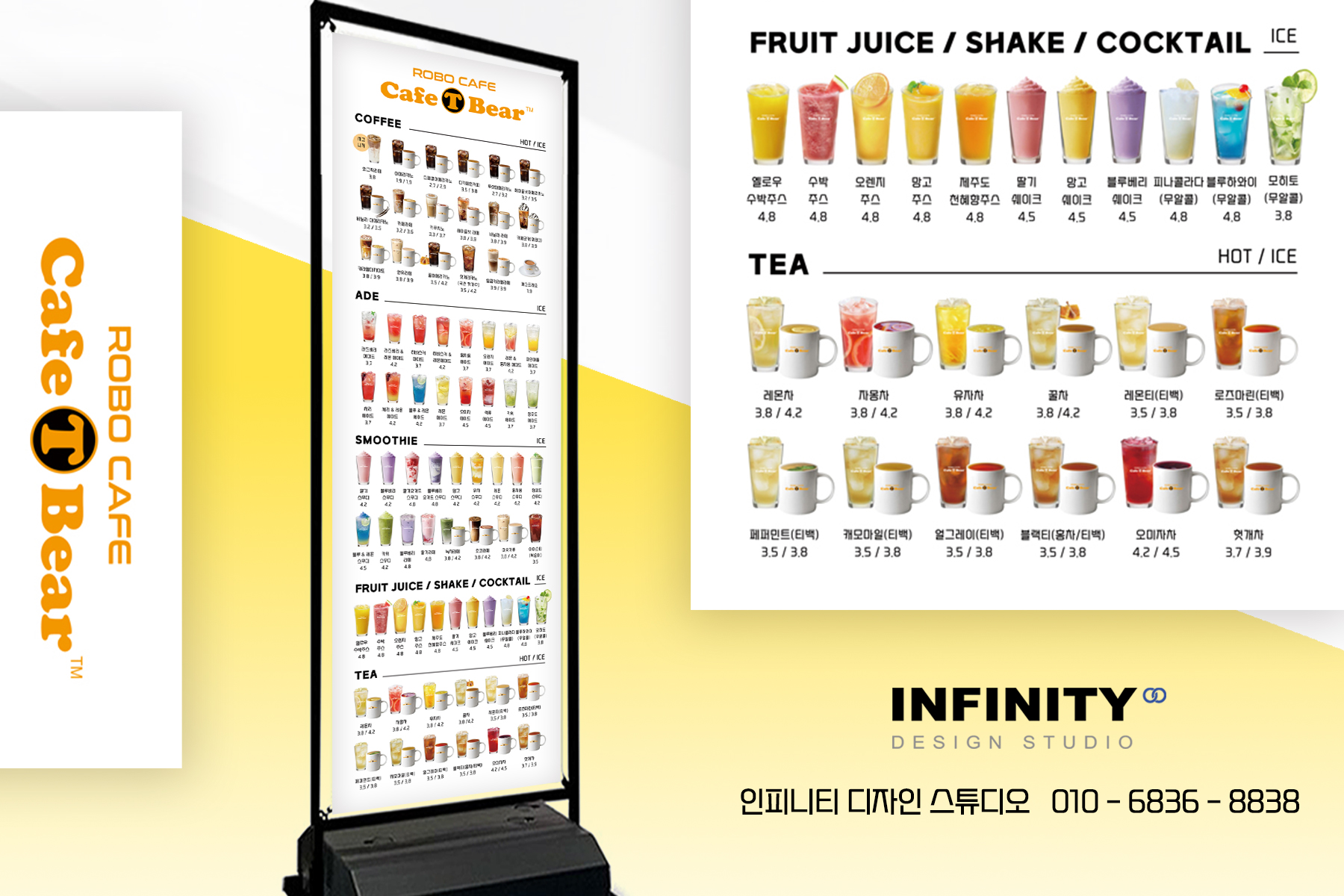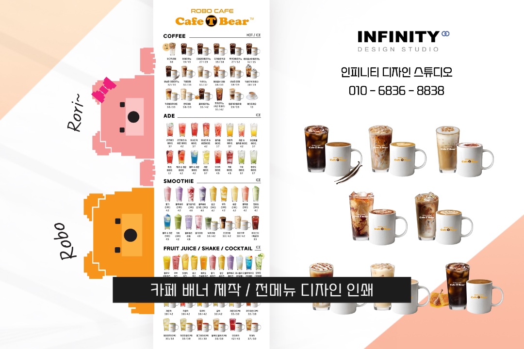 안녕하세요, 카페 홍보물 디자인, 제작 전문인피니티 디자인 스튜디오 입니다. 오늘은 카페에서 많이 의뢰주시는전메뉴 이미지를 담은 메뉴판, 배너 제작 소식포스팅 드립니다 :) 인기만점 !