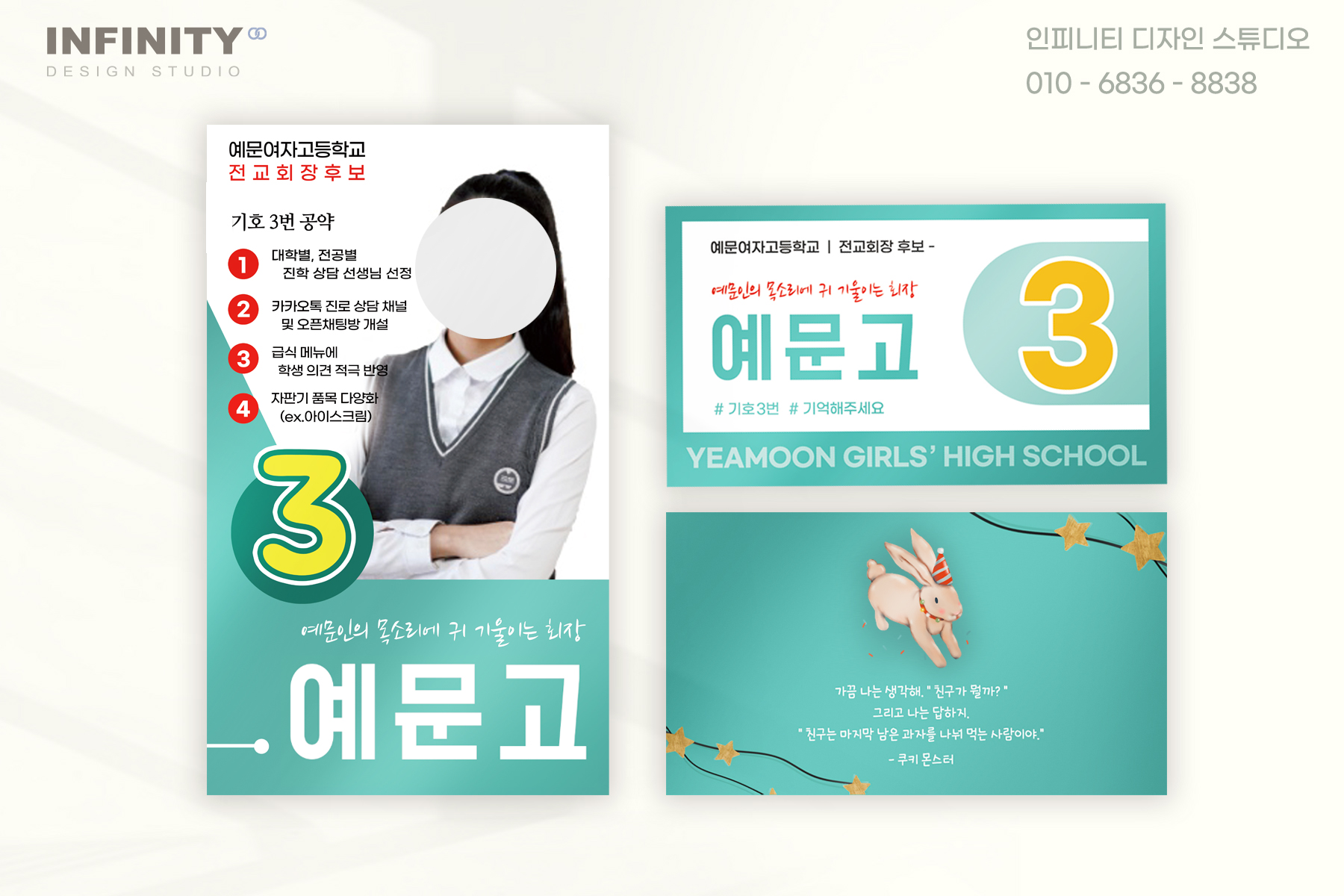 | 고등학교 전교회장 선거포스터 디자인, 제작, 피켓 제작 (1) | 2024.07.19 |