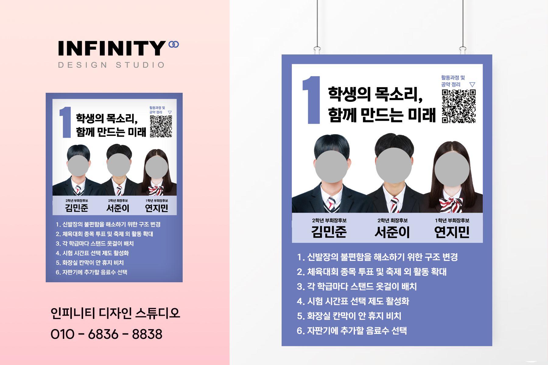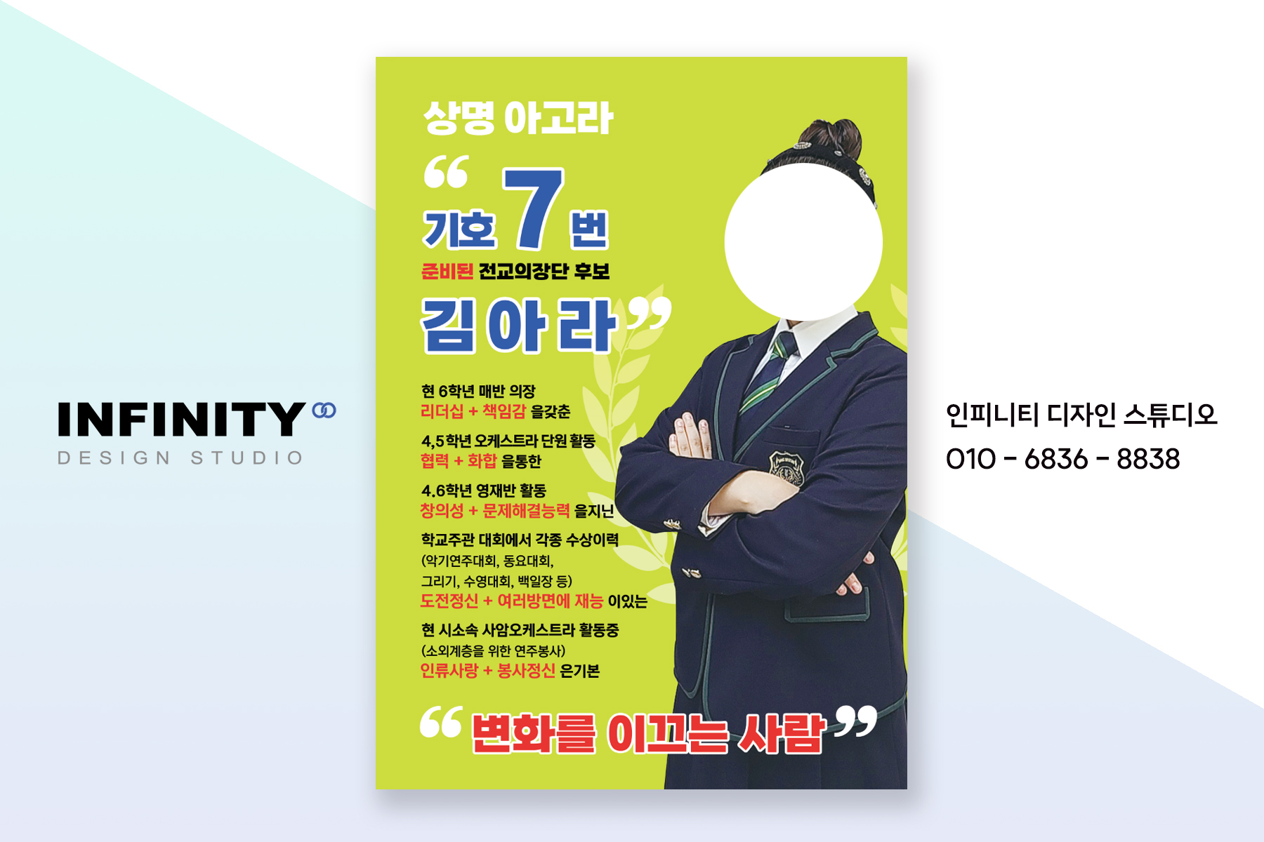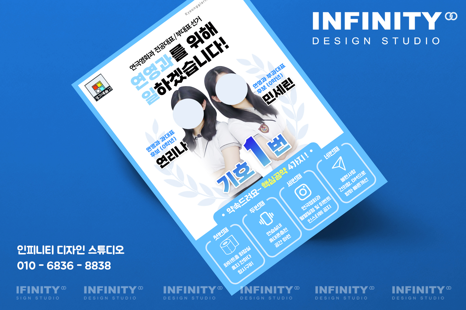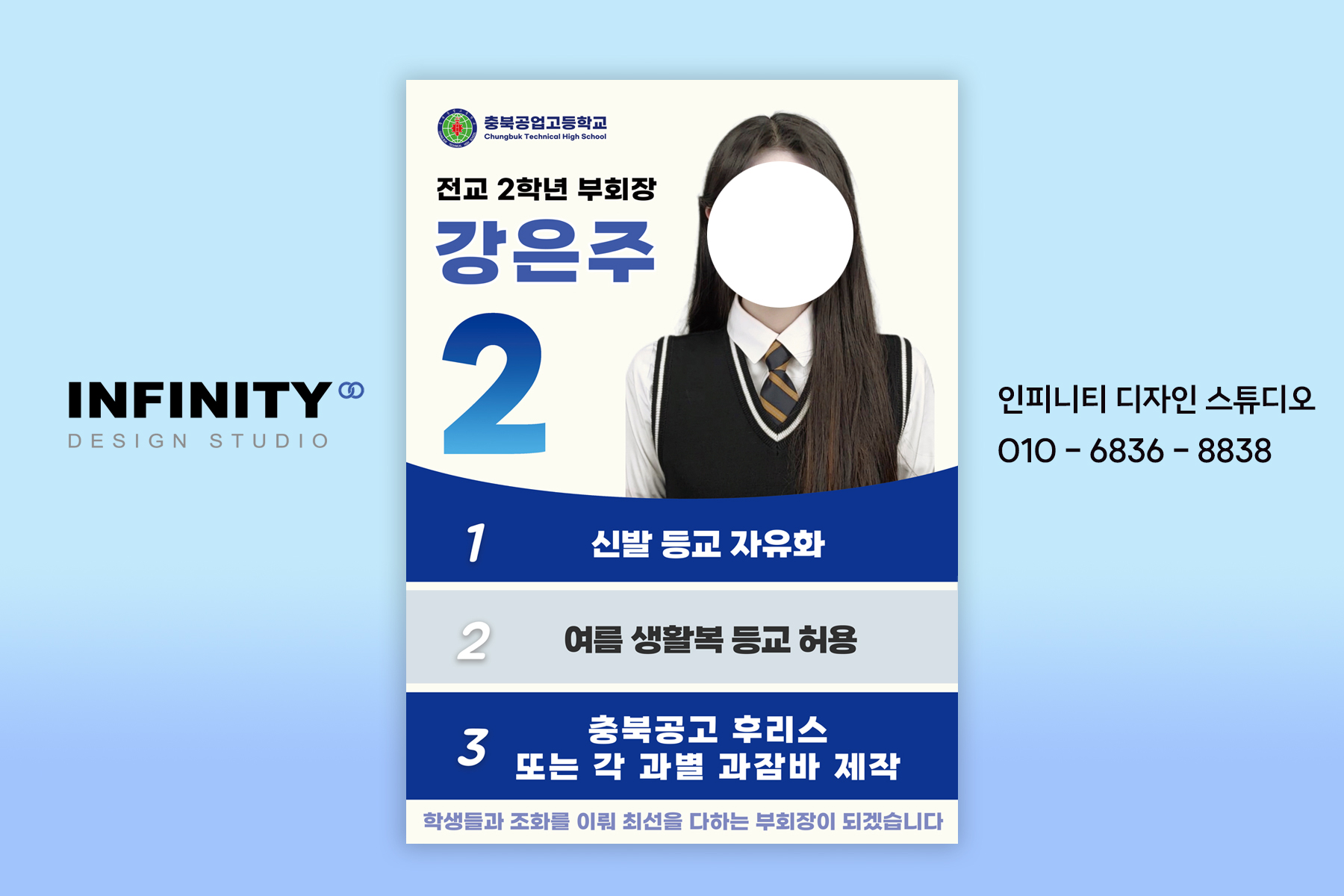 안녕하세요, 디자인, 제작 전문인피니티 디자인 스튜디오 입니다. 전교회장 선거준비로 인기인선거포스터, 피켓 세트 제작 포스팅드리니함께 보시겠습니다 :) 하늘색, 파란색 계열의 컬러로