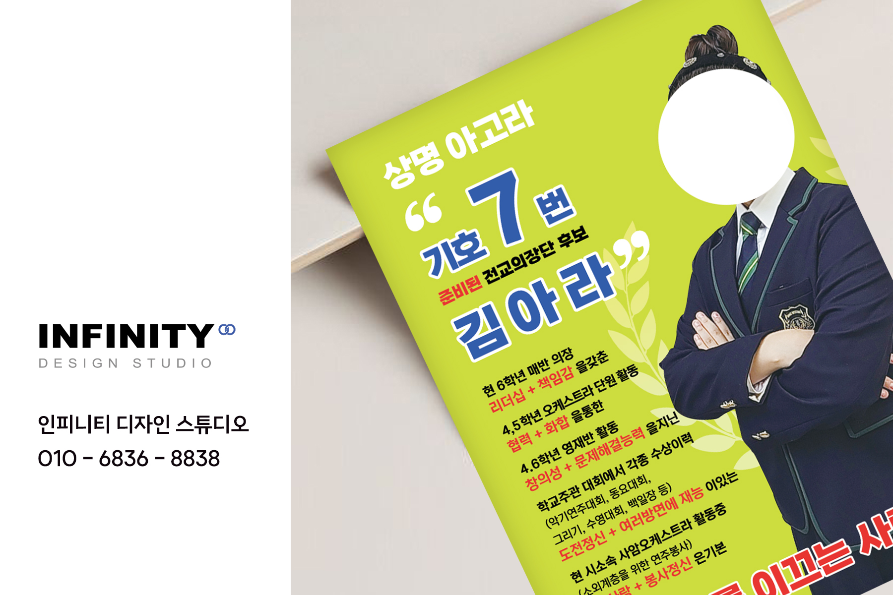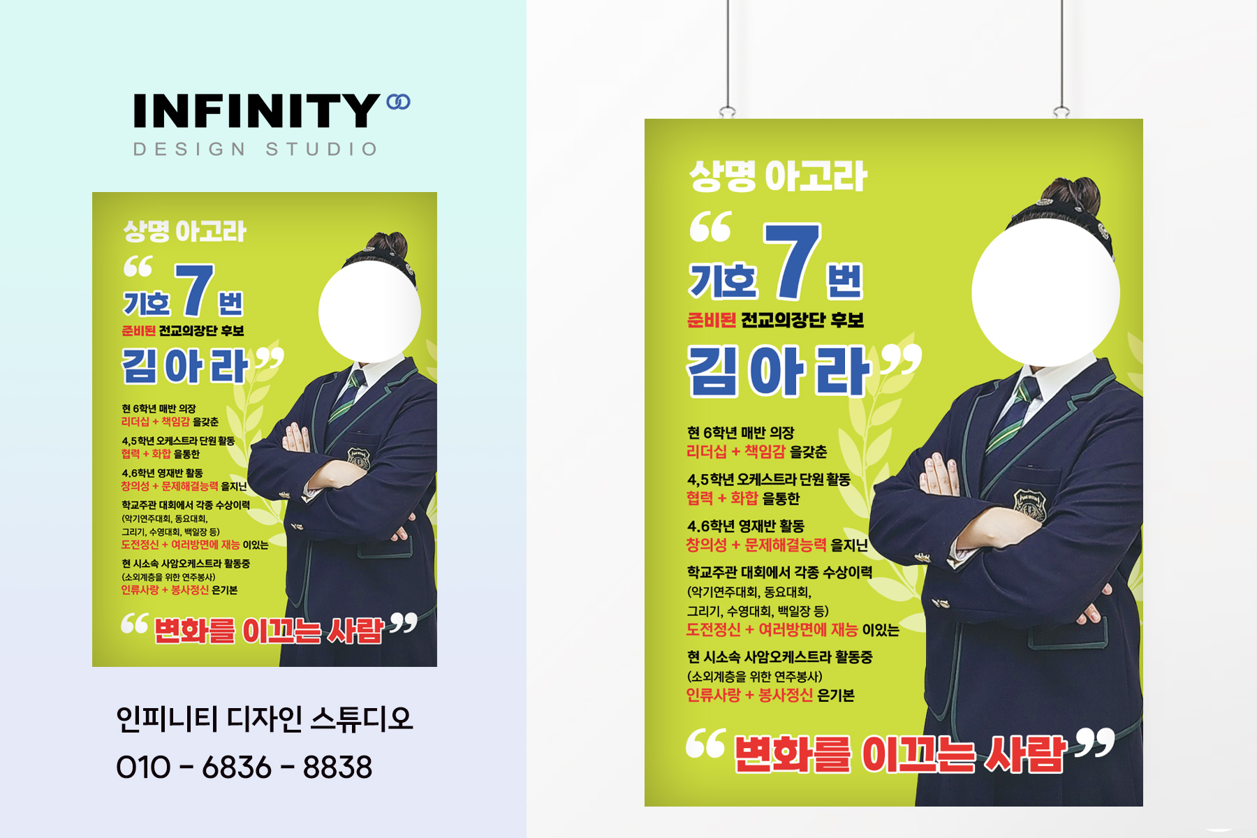 | 고등학교 전교회장 선거포스터 디자인, 제작, 피켓 제작 (1) | 2024.07.19 |