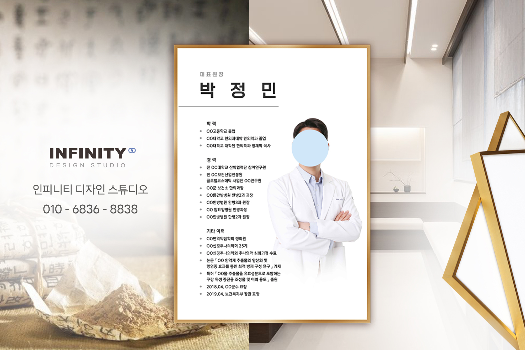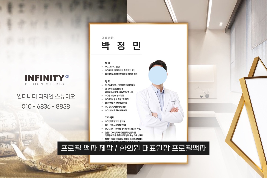 | 원장님 프로필 액자 디자인, 우드 액자, 한의원 배너, 명함, 리플렛 (0) | 2024.02.23 |