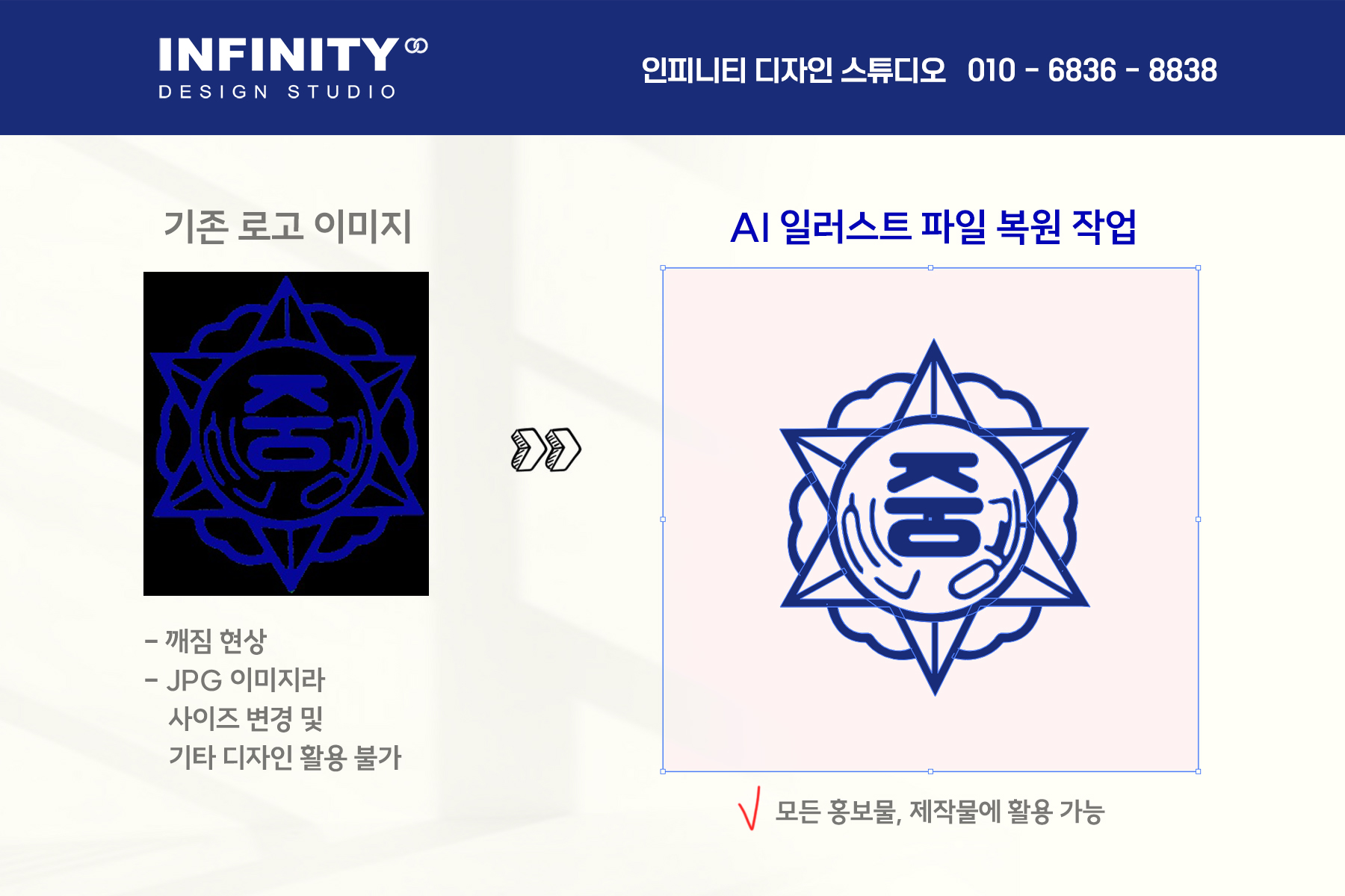 원본 파일이 없으시다면 ai 파일 제작 추천드려요!