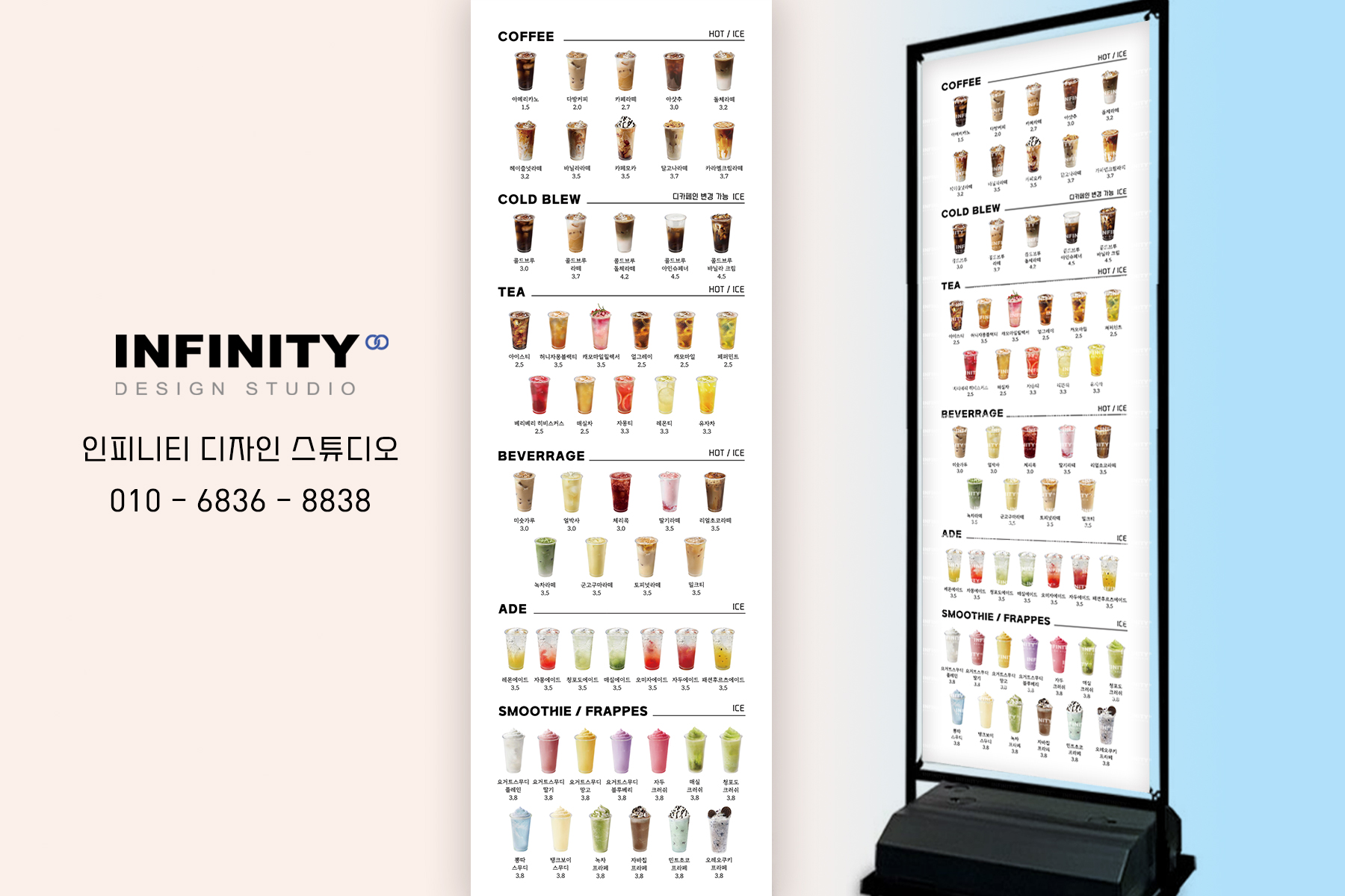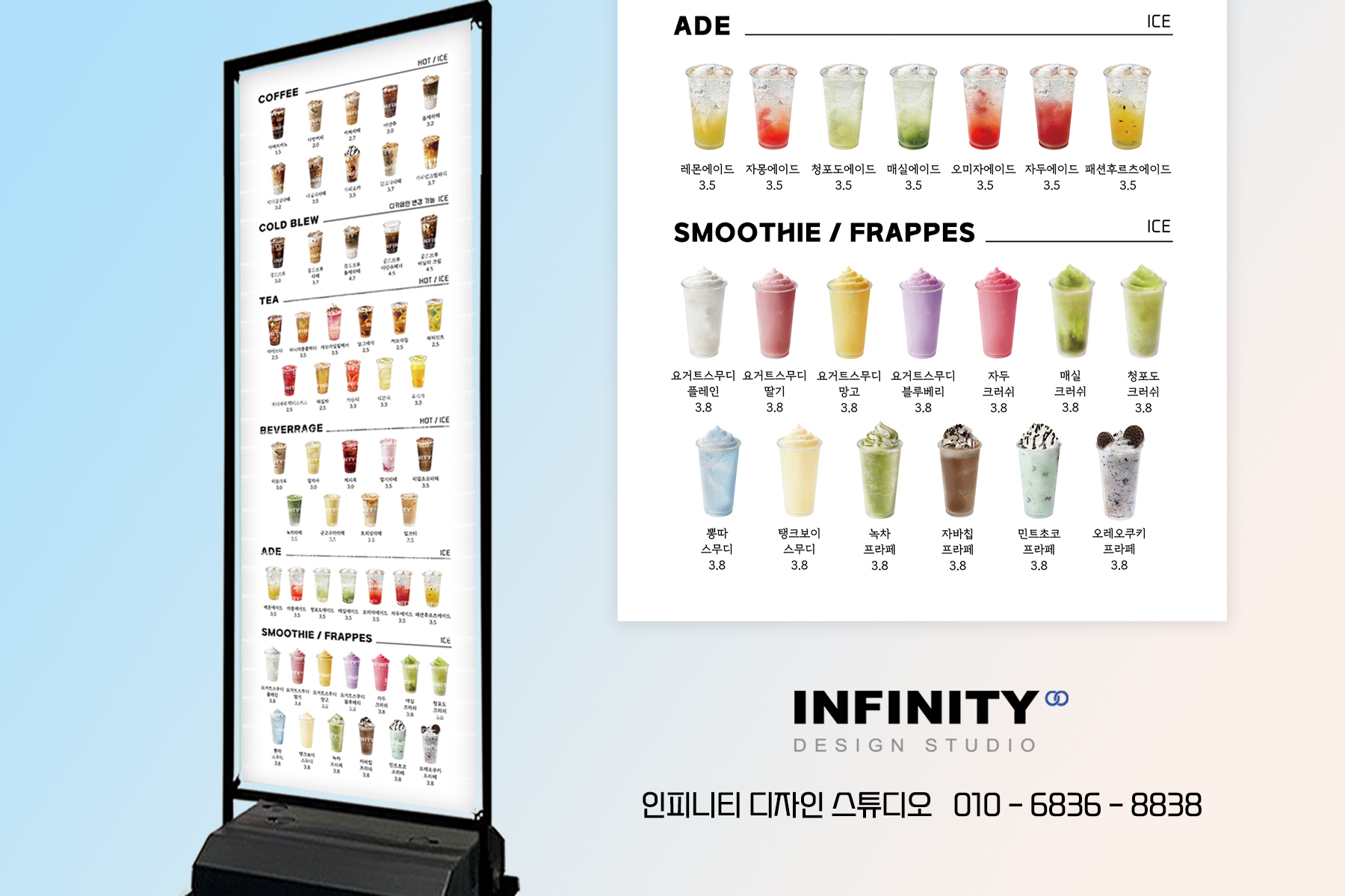 안녕하세요, 디자인, 제작 전문인피니티 디자인 스튜디오 입니다. 오늘은 카페 키오스크 사진 촬영제작 소식포스팅 드립니다 :) 번거로운 촬영없이 제작 진행해드려우리매장 세트로 통일성
