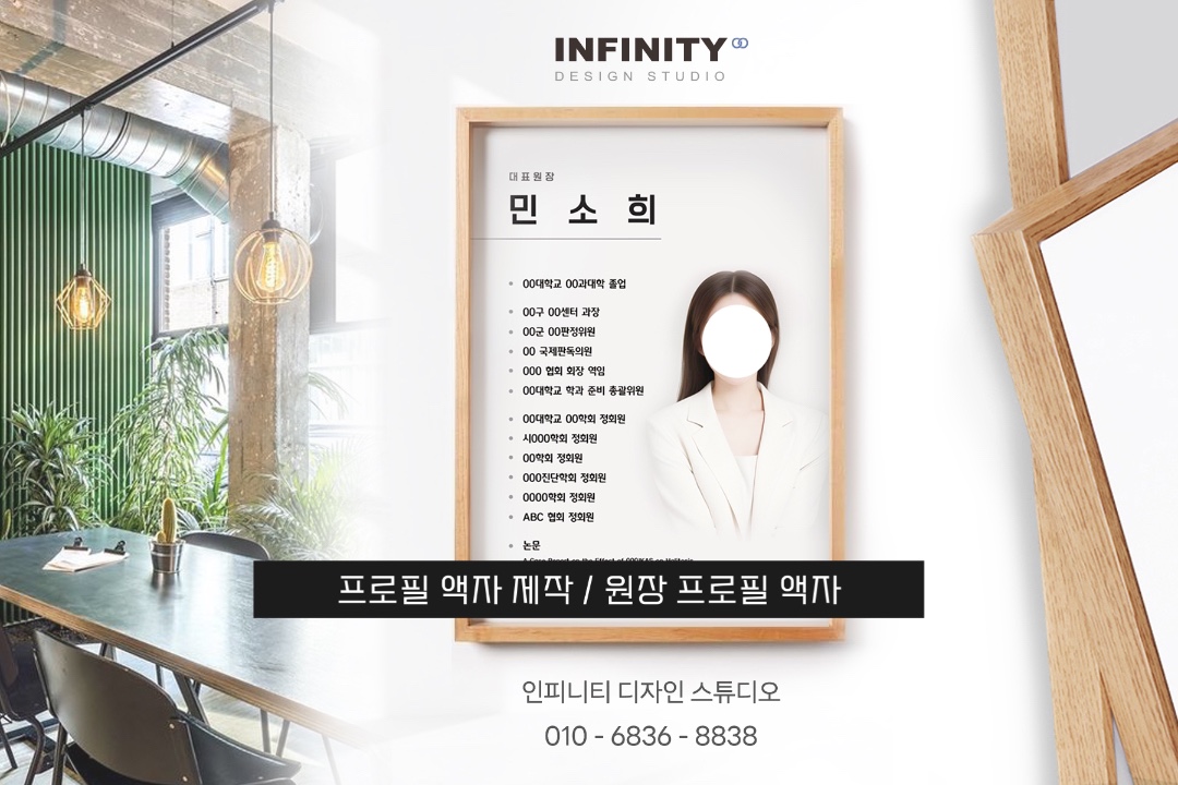 안녕하세요, 디자인 / 제작 전문 인피니티 디자인 스튜디오 입니다. 오늘은 프로필 액자 제작 ! 소식으로 포스팅 드립니다 :) 학원, 피트니스, 필라테스, 요가 스튜디오, 뷰티샵, 에스테틱, 관리샵