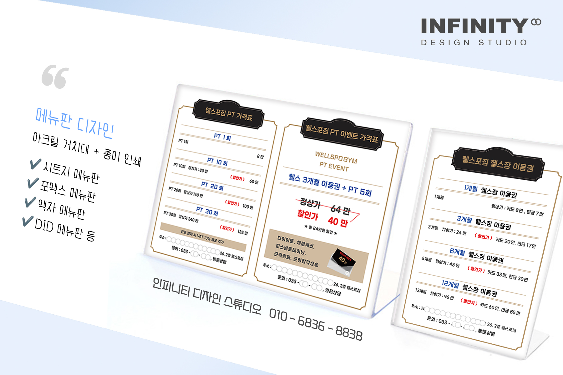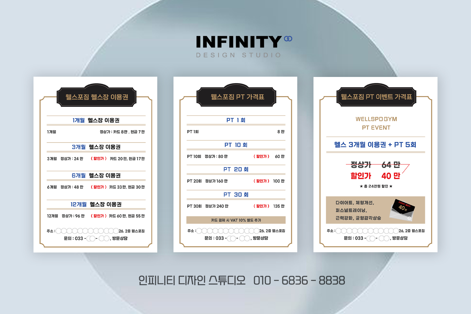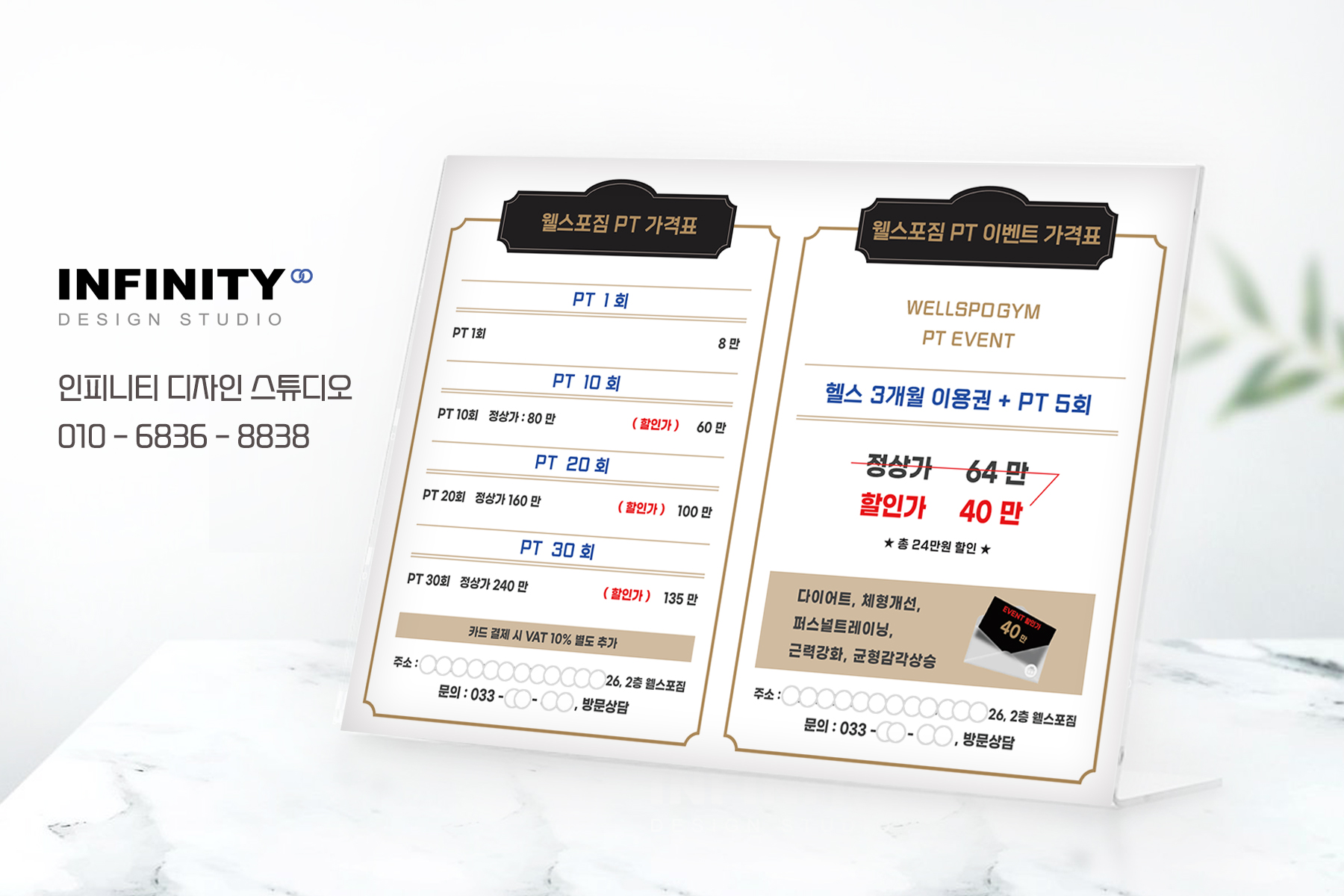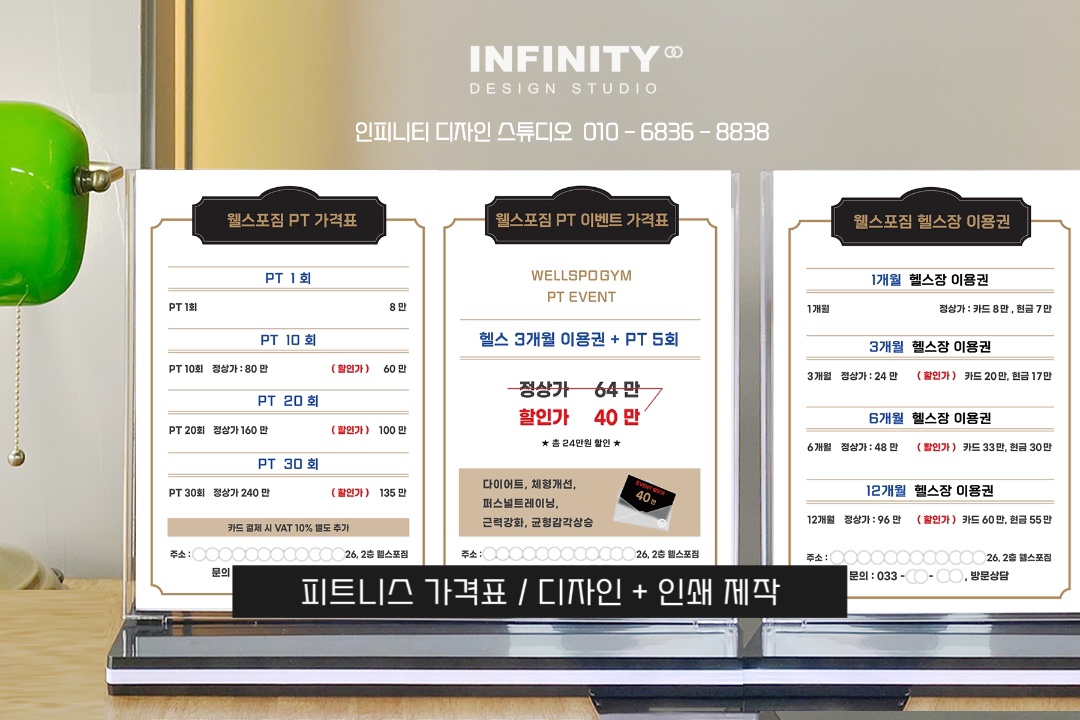 오늘은 피트니스, 헬스장 가격표, PT가격표 제작
