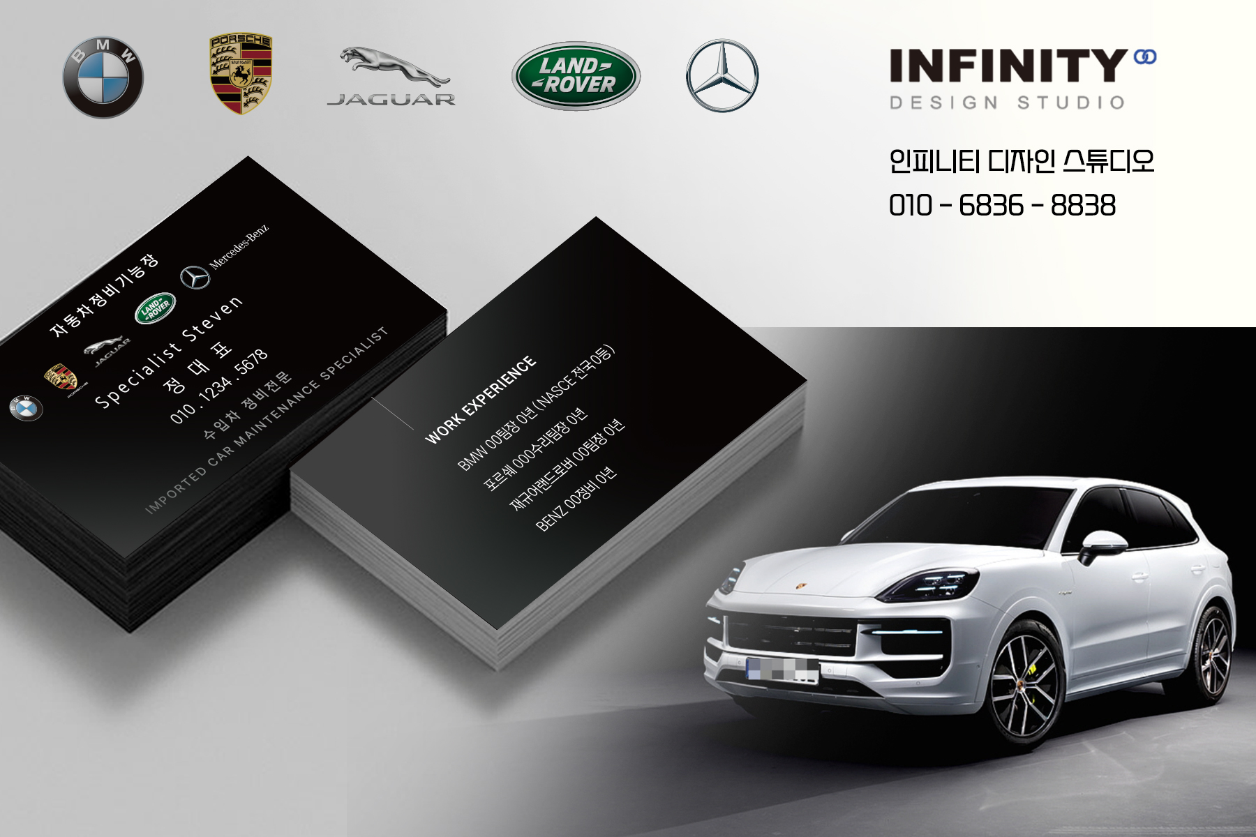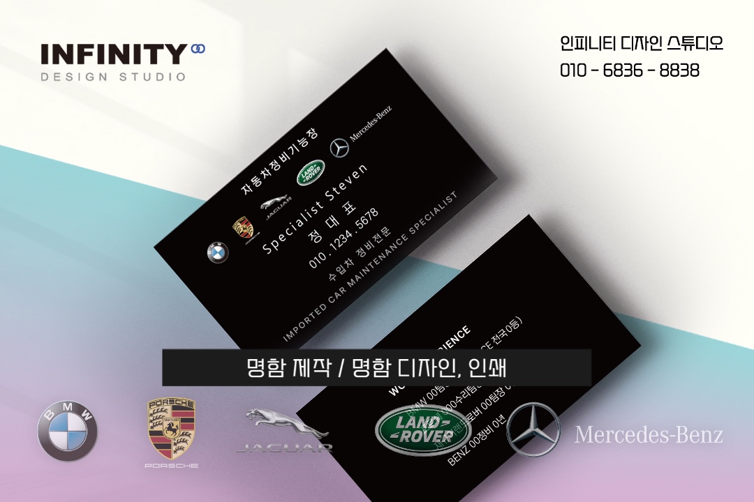 썬팅샵 명함 제작, 카센터 세차장 명함 추천, 카플레이스 명함 제작 안녕하세요, 명함 제작 전문 인피니티 디자인 스튜디오 입니다. 기업, 뷰티, 차량, 피트니스 등 다양한 브랜드, 매장의 명함