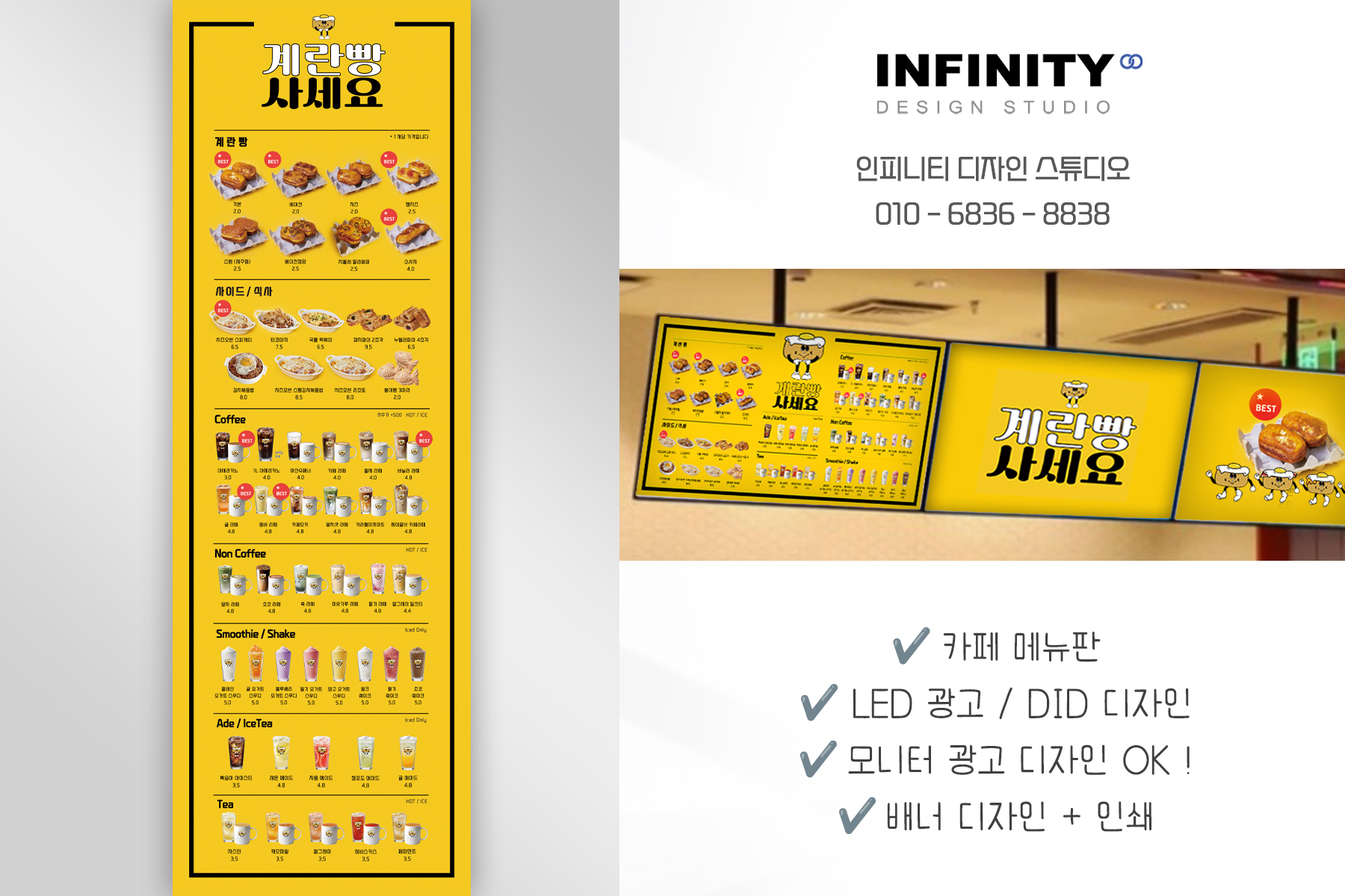| 카페 음료사진 메뉴판 배너 제작, 배너 디자인, 메뉴판 인쇄 (0) | 2024.08.14 |