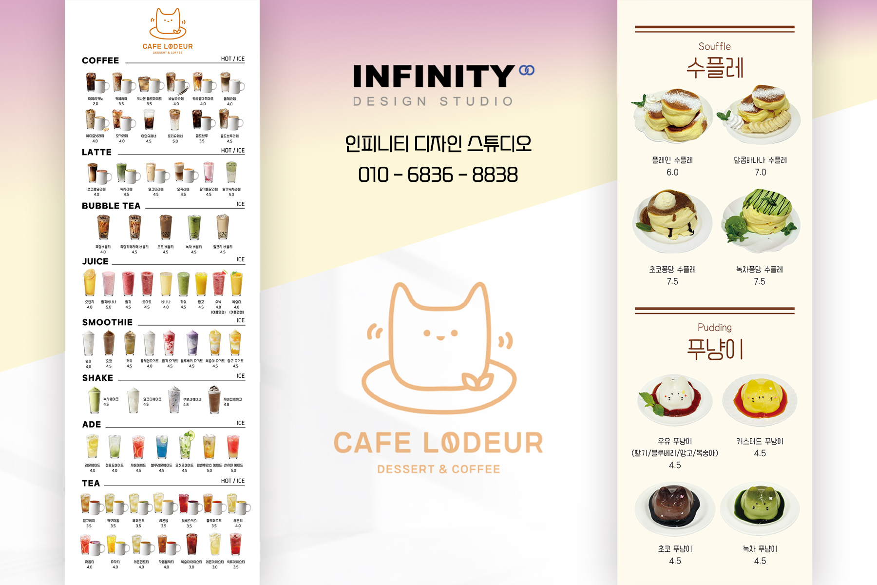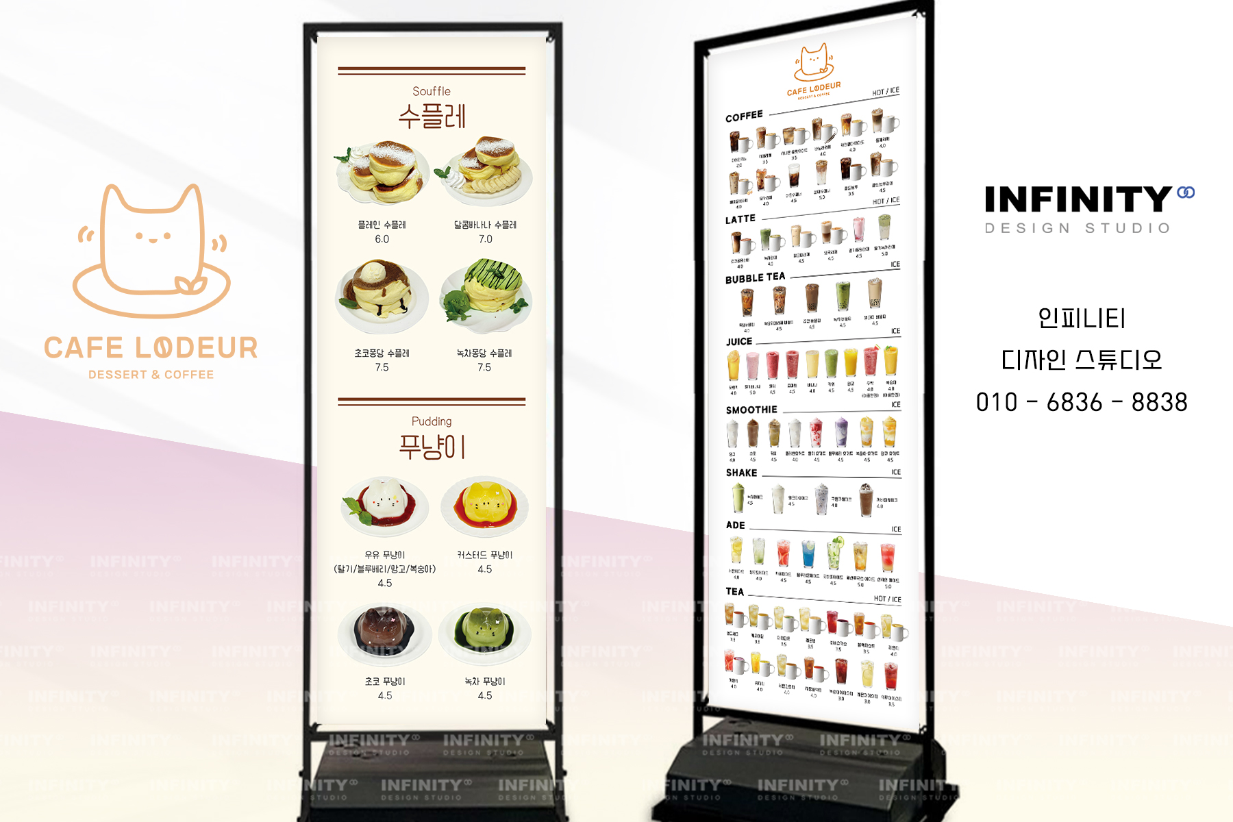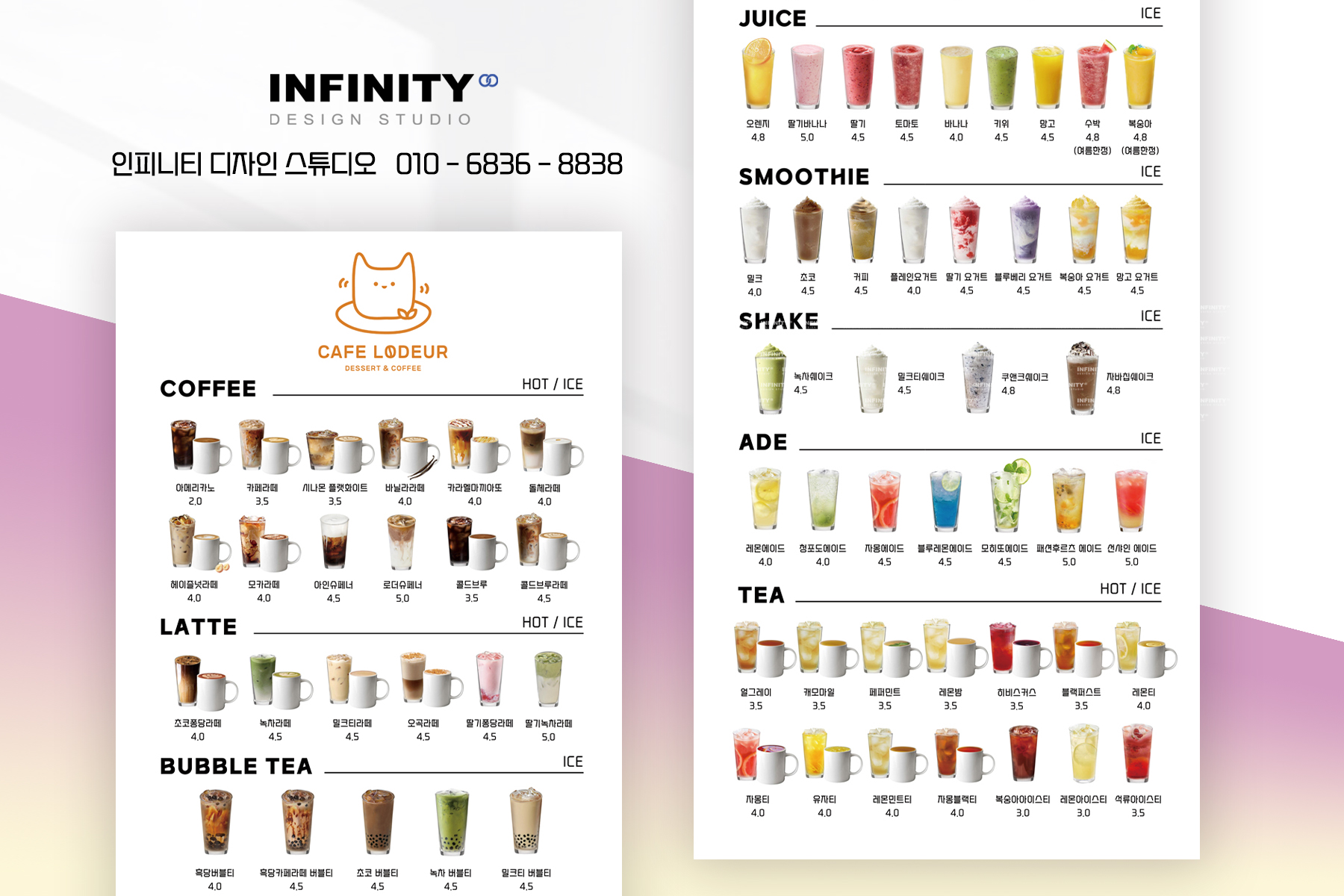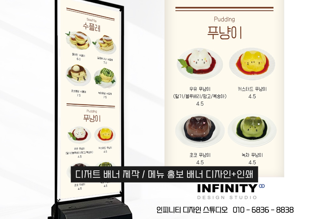 안녕하세요, 카페 홍보물 제작 전문인피니티 디자인 스튜디오 입니다. 카페 메뉴판 추천 소식 포스팅 시작합니다. 카페에서 판매하는 음료와 디저트를 담아아크릴 메뉴판으로 디자인 + 제작