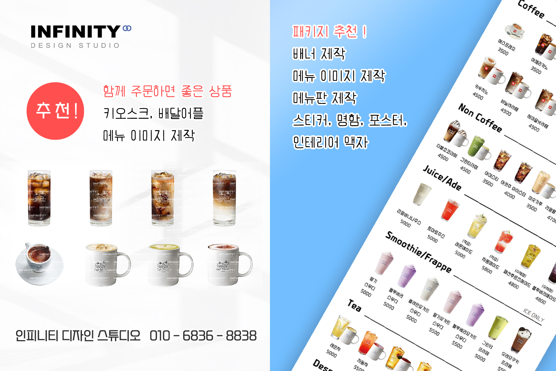 안녕하세요, 디자인, 제작 전문인피니티 디자인 스튜디오 입니다. 오늘은 카페 음료 사진 촬영 제작,카페 키오스크 등록 사진 준비, 카페 오픈 준비포스팅 드립니다 :) 키오스크 운영중인 카