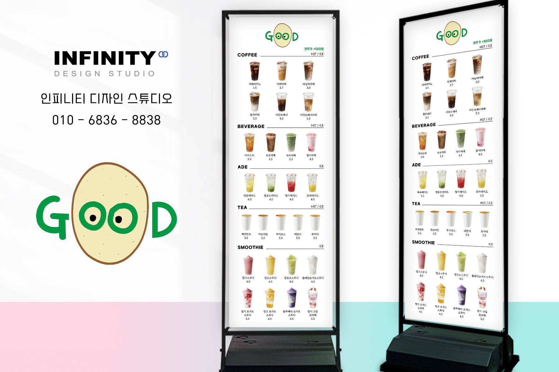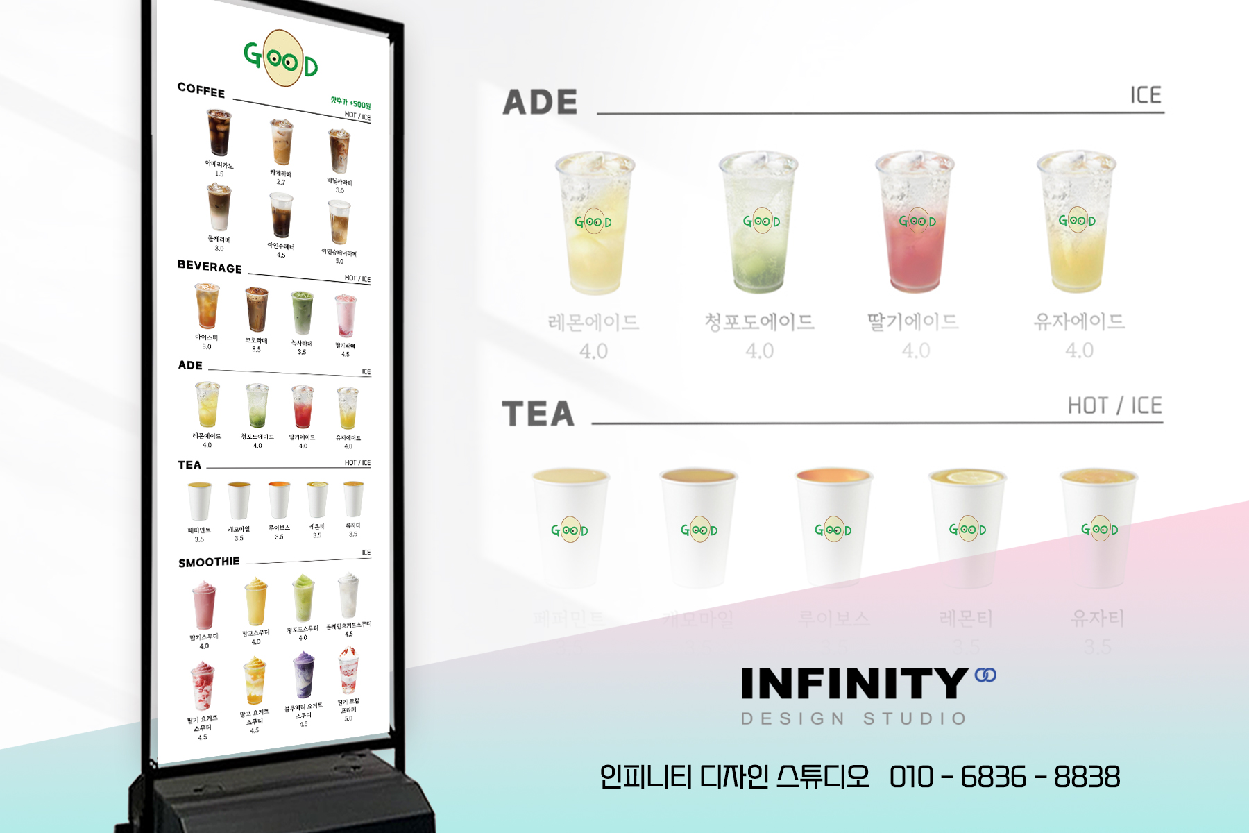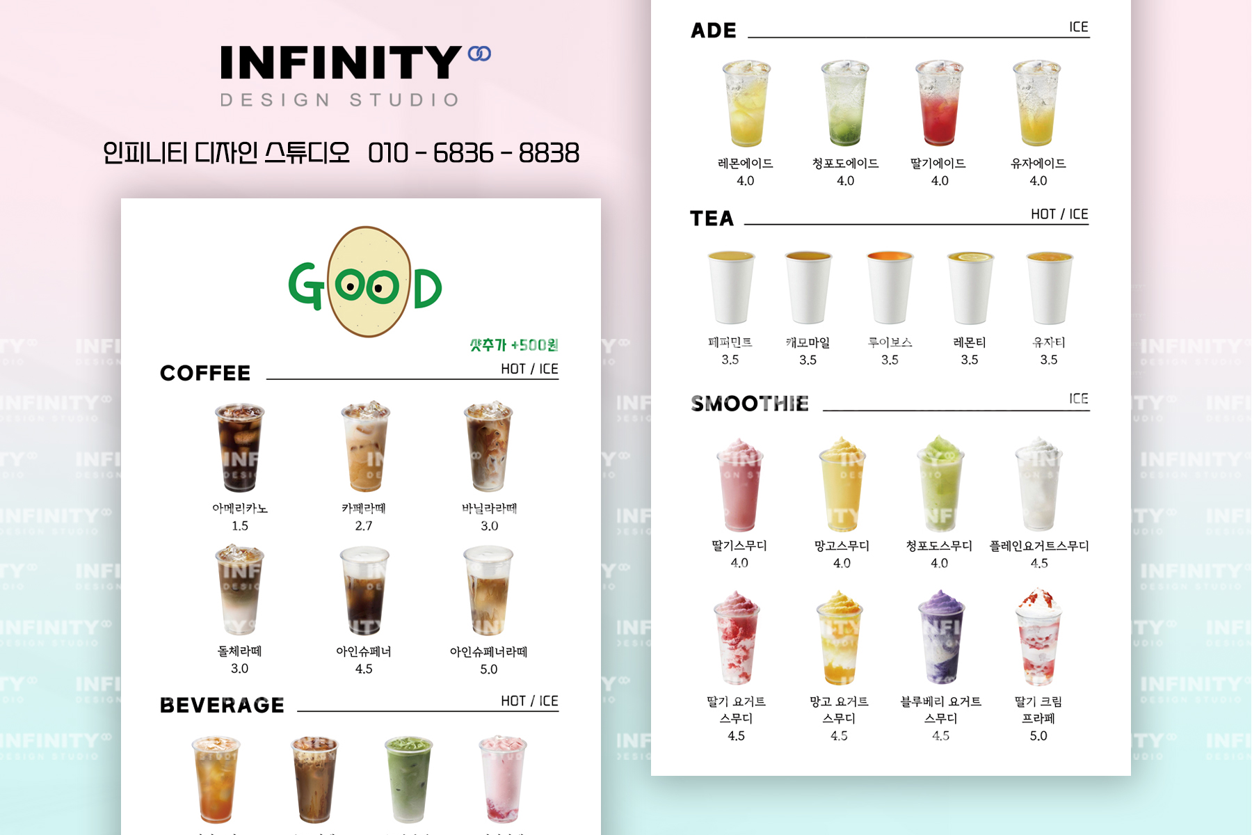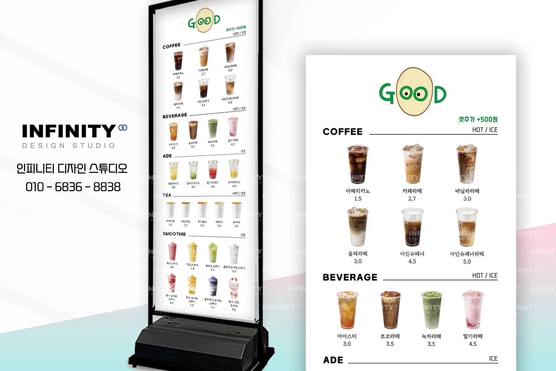 안녕하세요, 카페 홍보물 디자인, 제작 전문인피니티 디자인 스튜디오 입니다.오늘은 키오스크, 각종 스마트오더에 등록하여사용가능한 음료 사진 이미지 촬영제작 소식준비했으니 함께 보실