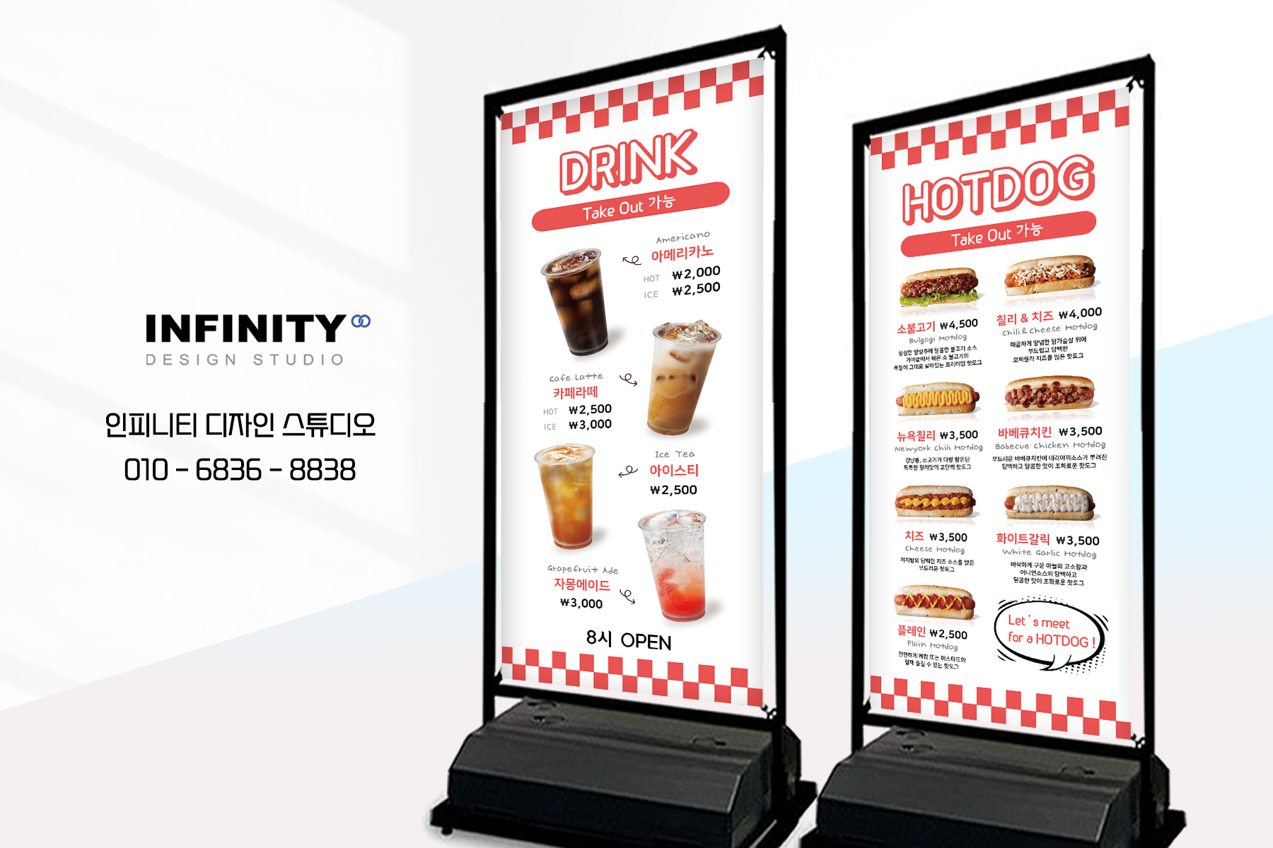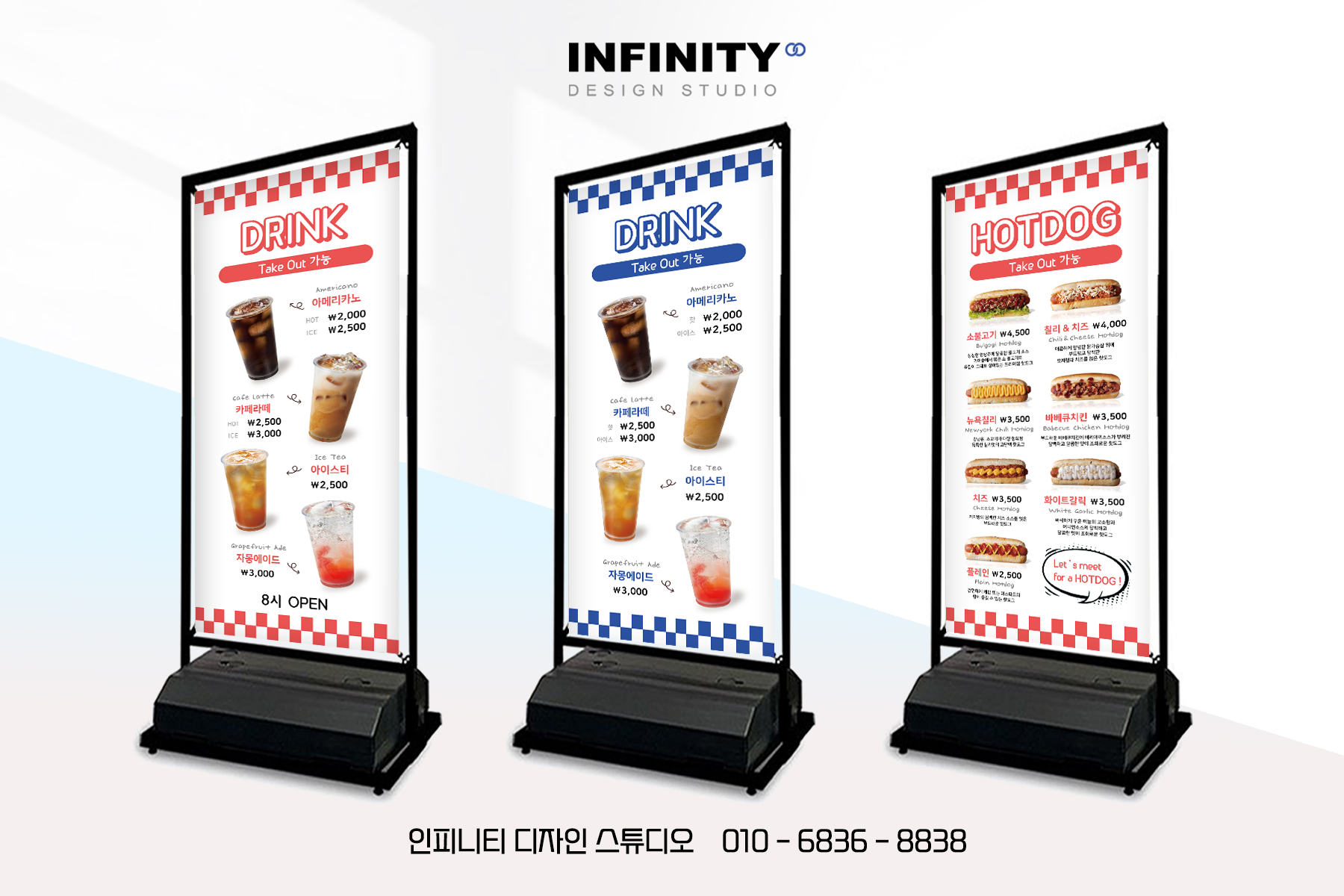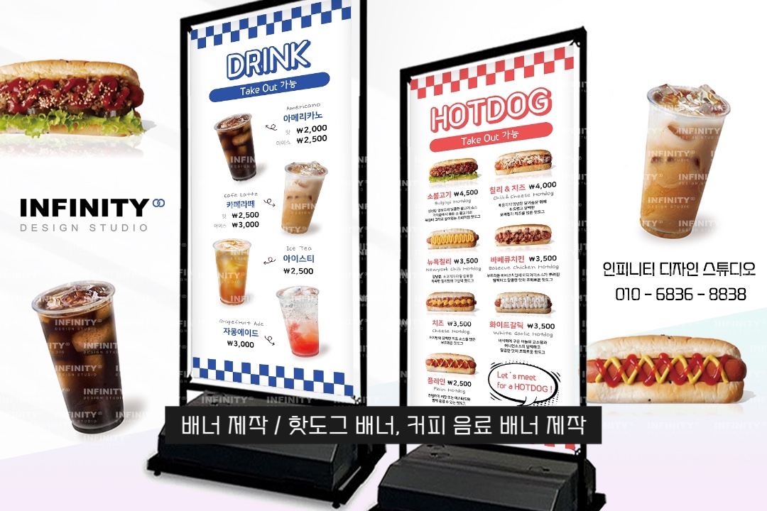 안녕하세요, 디자인, 제작 전문인피니티 디자인 스튜디오 입니다. 카페에서 필수로 필요한 배너 제작과배달, 포장시 용이하게 사용하는자석메뉴판 디자인 + 제작 포스팅 준비했어요~ 매장에