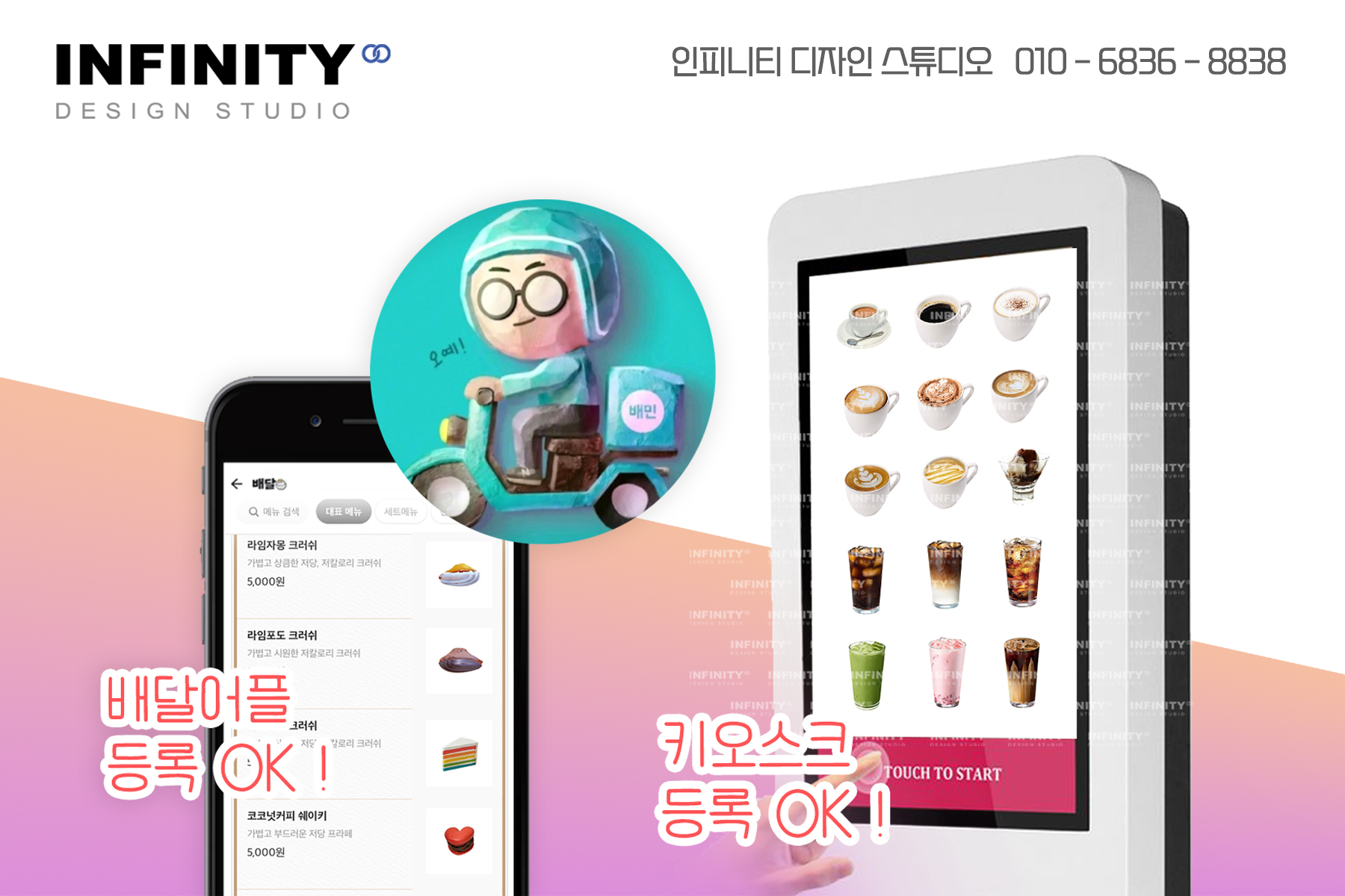 안녕하세요, 카페 홍보물 디자인, 제작 전문인피니티 디자인 스튜디오 입니다.오늘은 카페 키오스크 운영 중 필수템커피, 음료 사진 촬영제작 서비스소식 포스팅 입니다 :) 번거로운 촬영없이