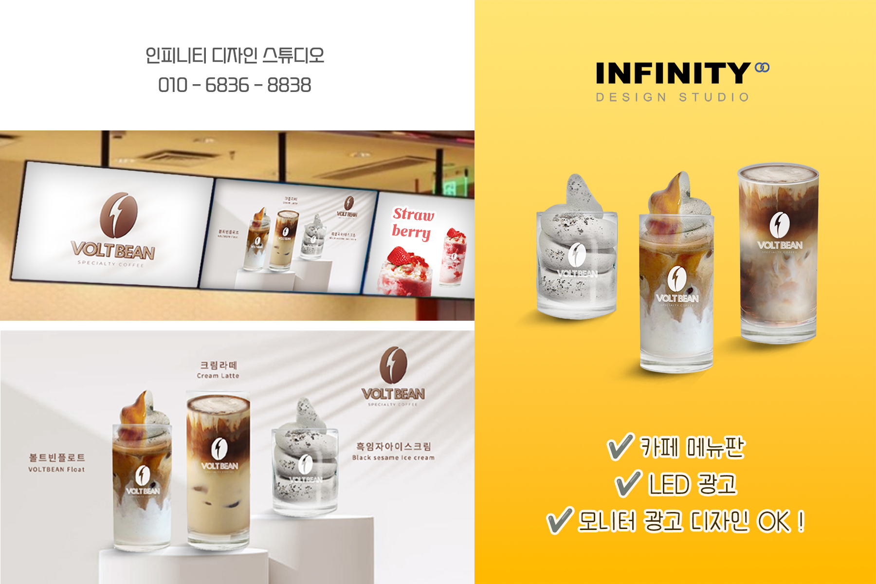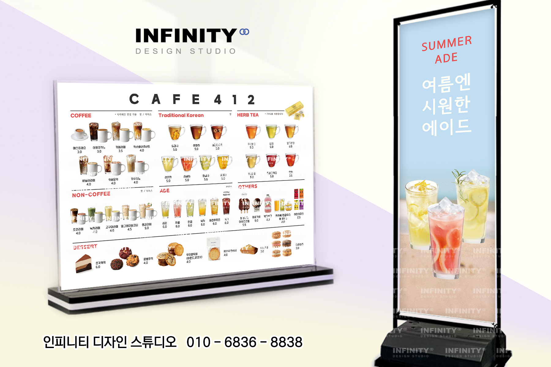 안녕하세요, 디자인, 제작 전문인피니티 디자인 스튜디오 입니다. 오늘은 카페 포스터 제작 소식포스팅 준비했어요 :) 다양한 메뉴를 홍보하는 포스터 제작,커피, 음료, 아이스크림, 떡볶이