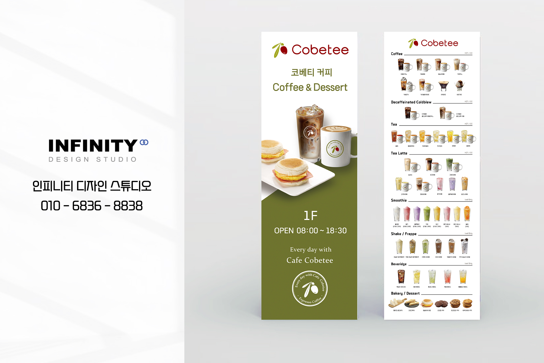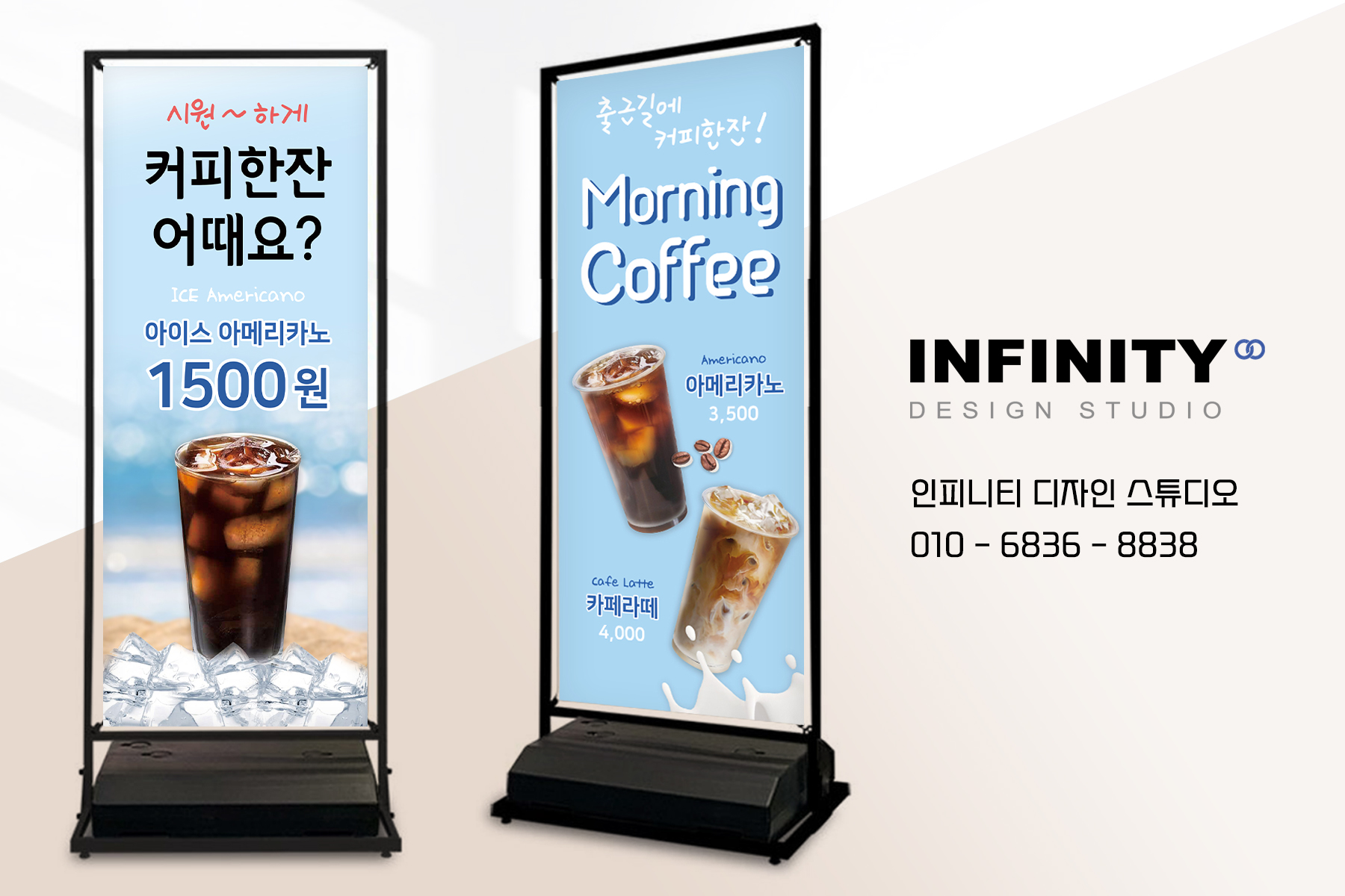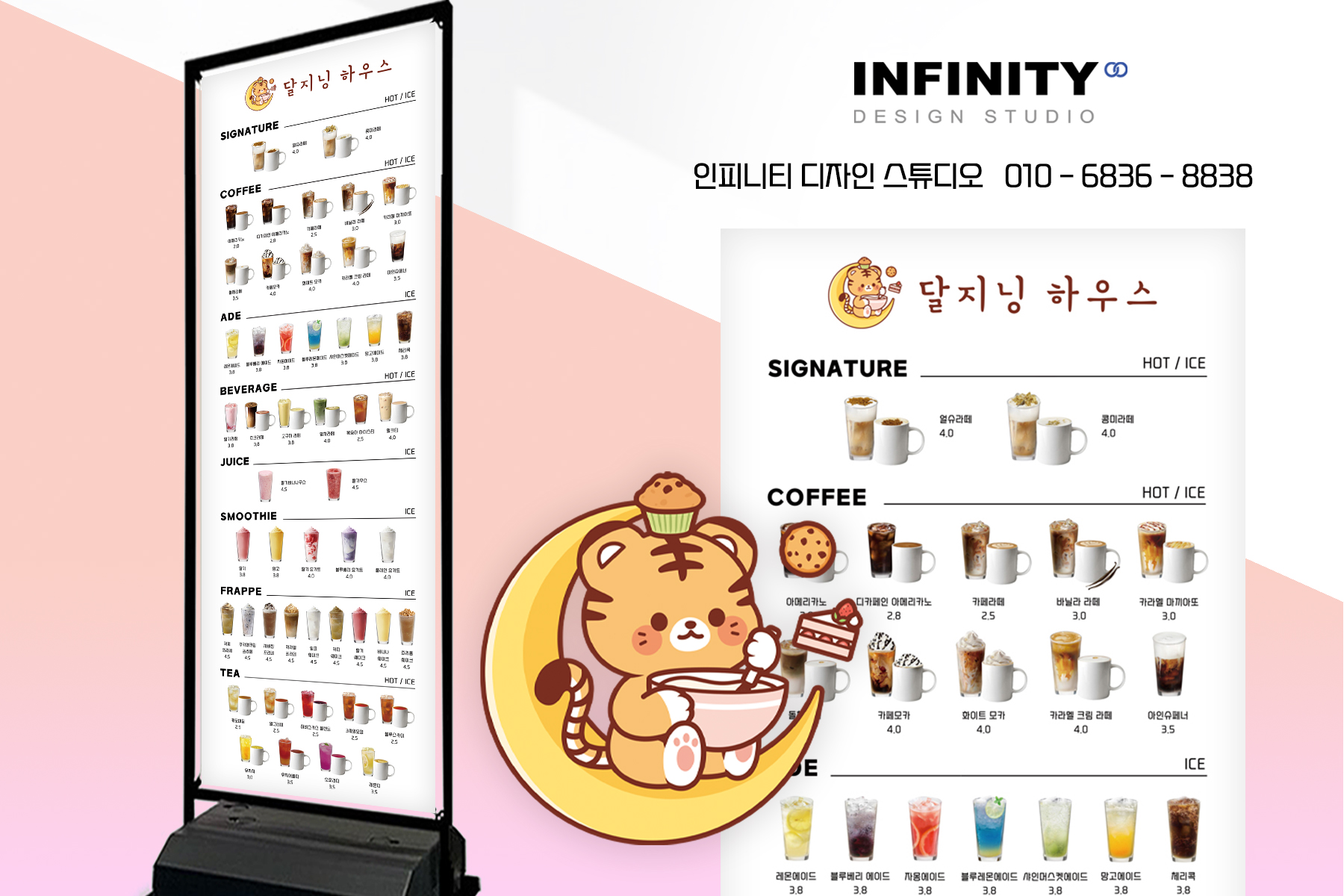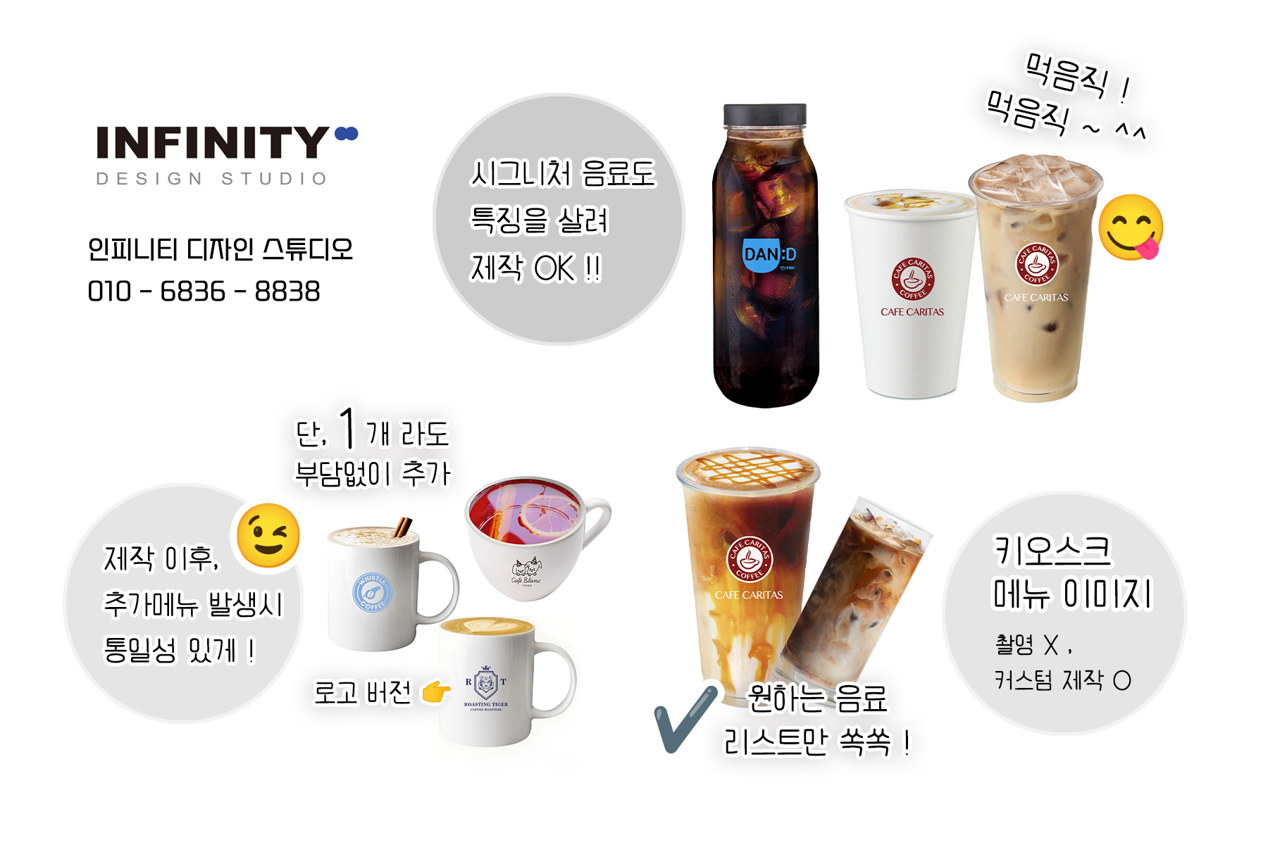 안녕하세요, 카페 홍보물 제작 전문인피니티 디자인 스튜디오 입니다. 카페에서 많이 사용하는홍보 / 안내 필수템 소개해드려요, 인기만점 [ 카페 배너 + 메뉴판 제작 ]세트 진행 소식 함께