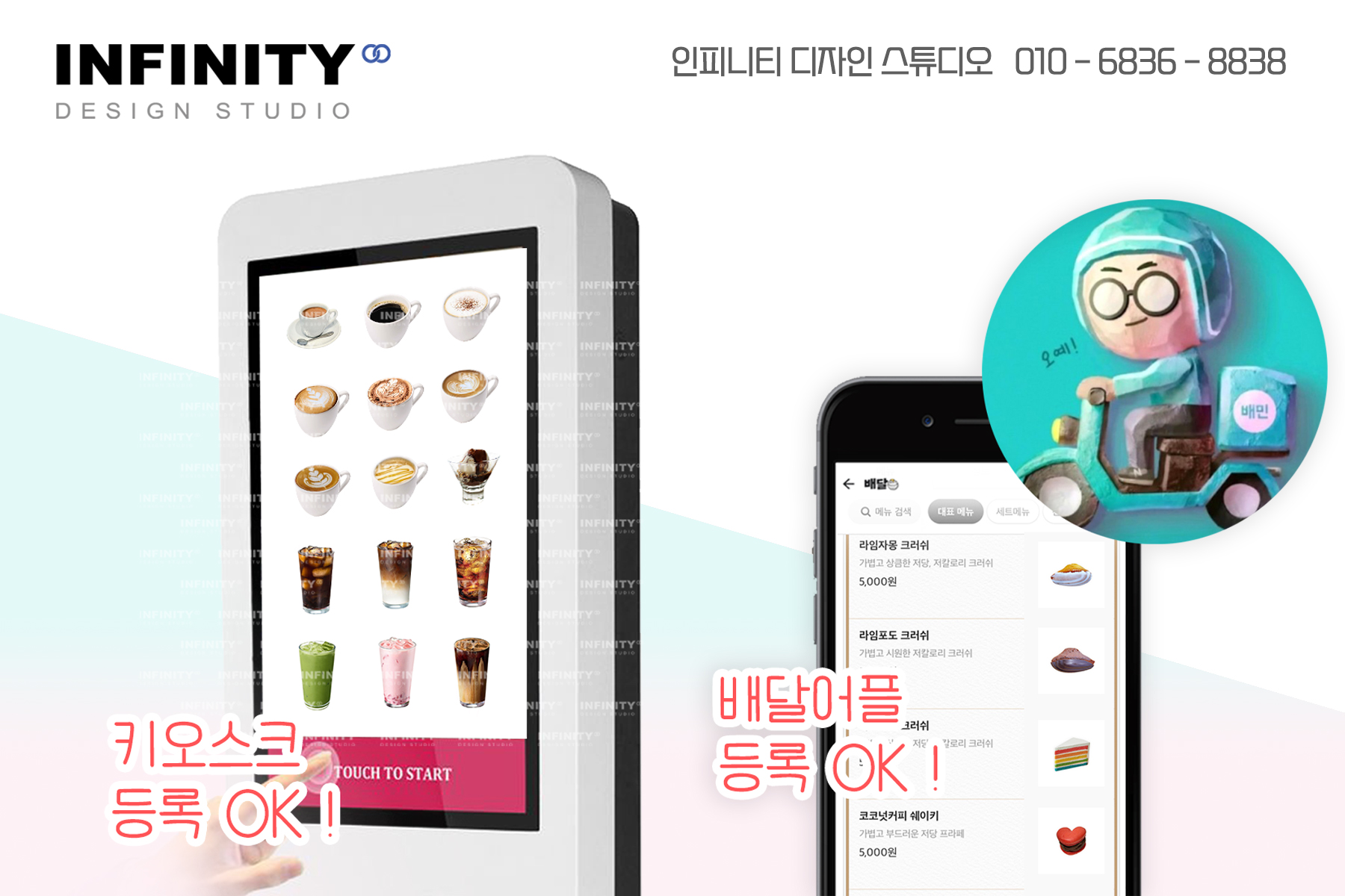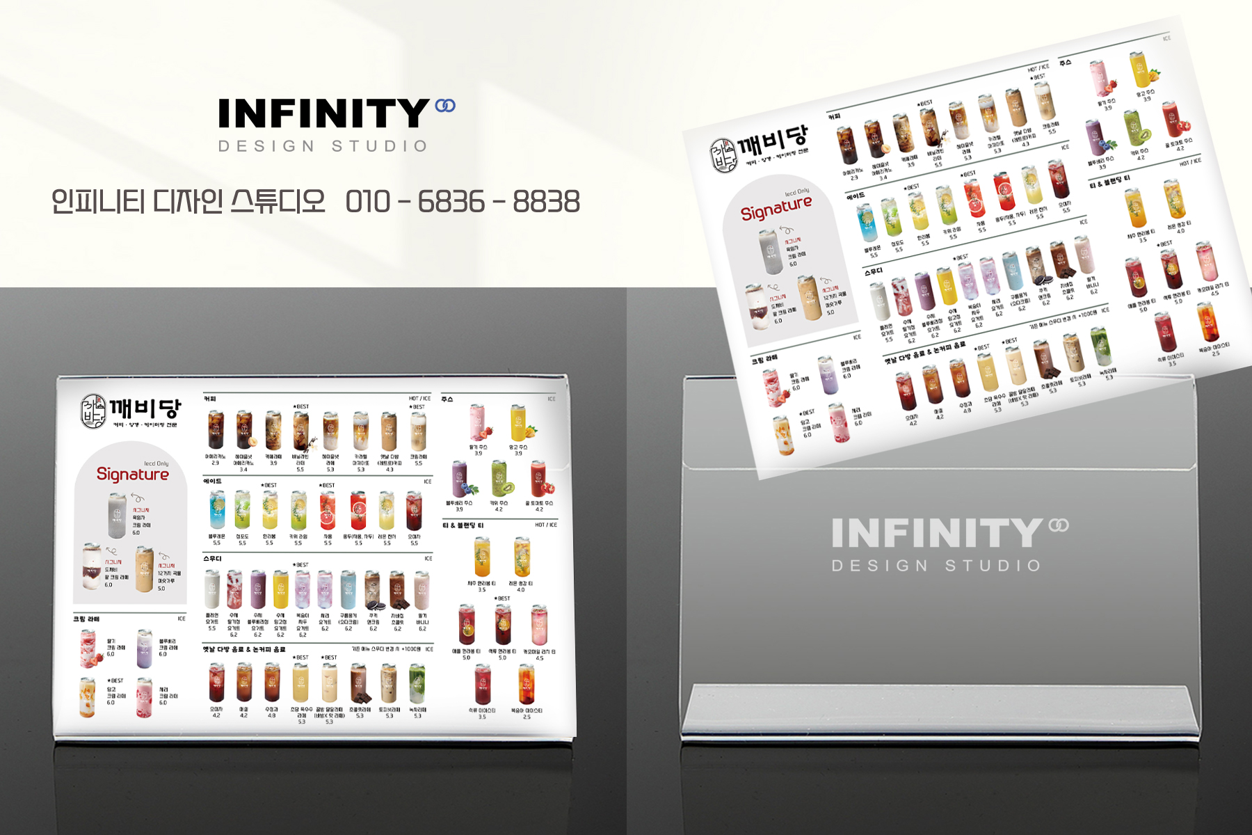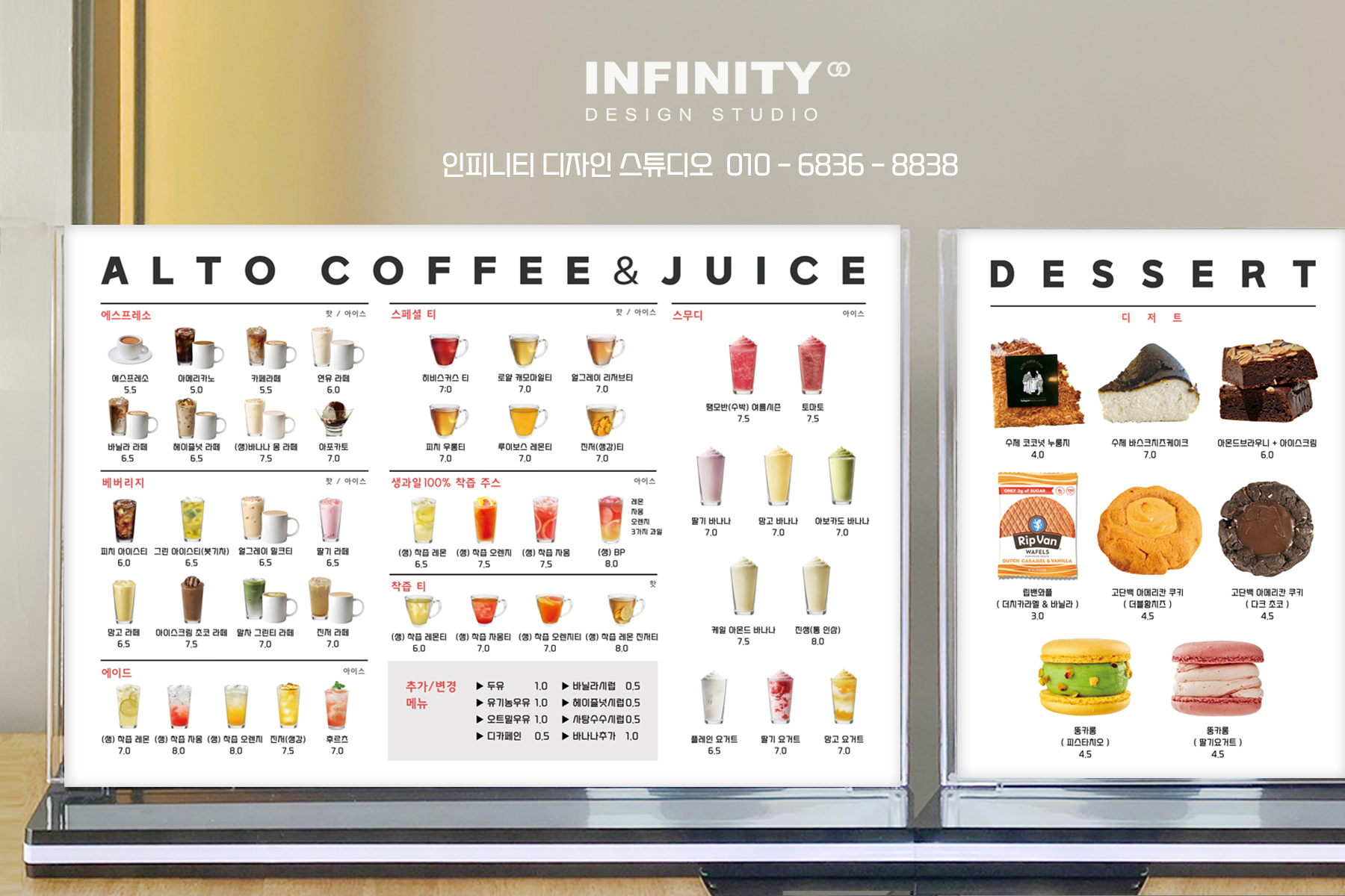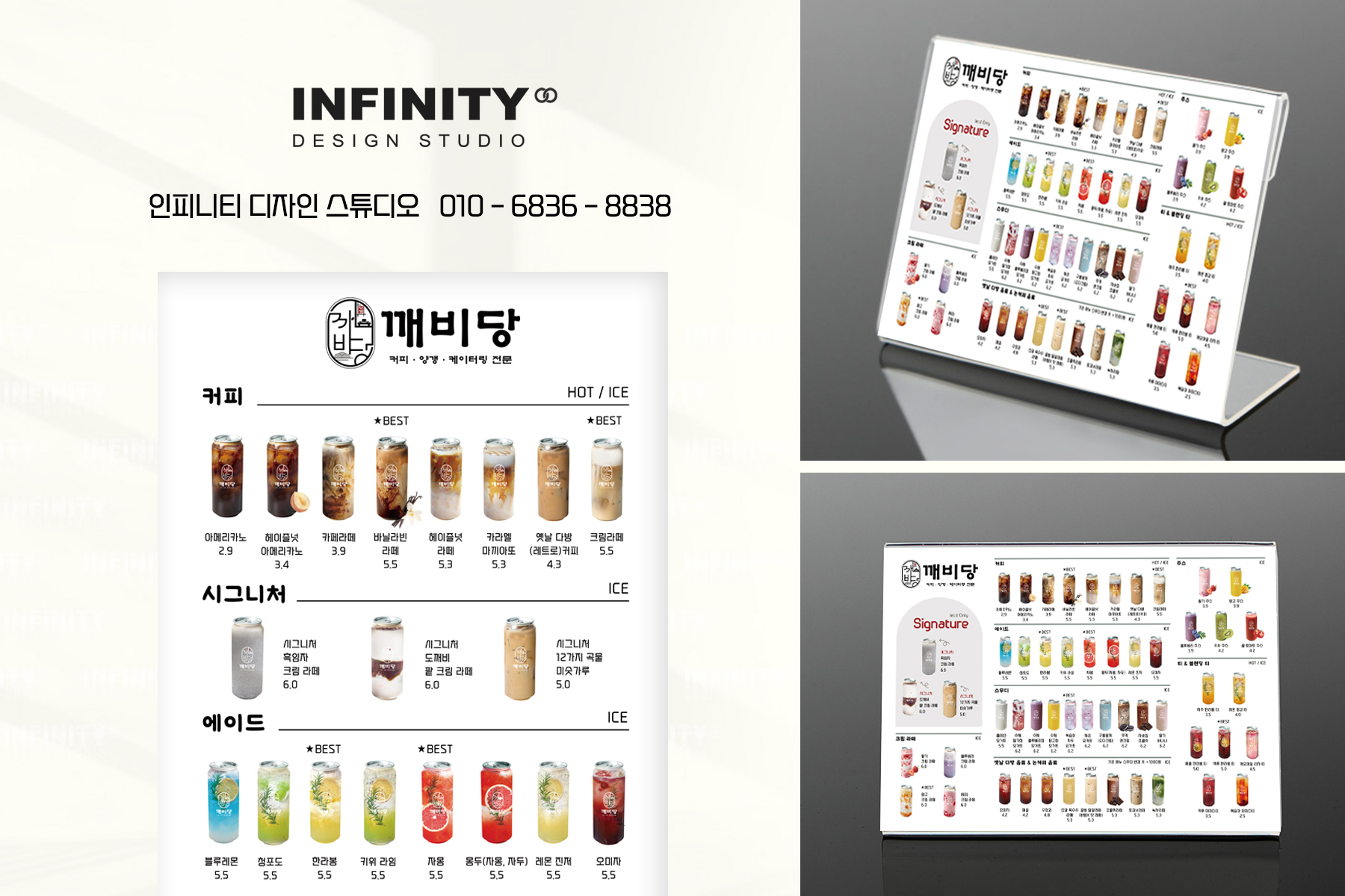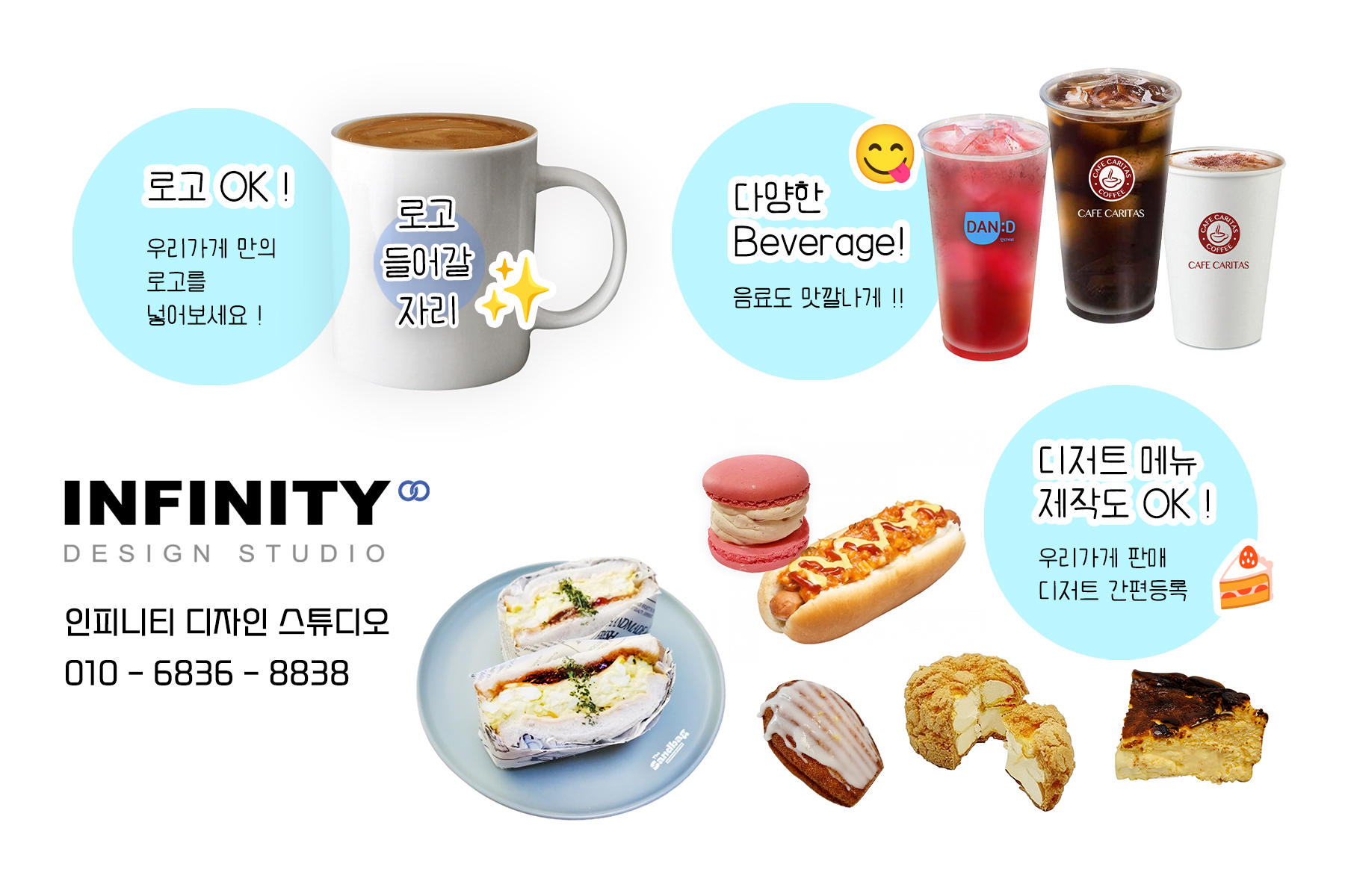 안녕하세요, 카페 홍보물 제작 전문인피니티 디자인 스튜디오 입니다. 카페에서 많이 사용하는홍보 / 안내 필수템 소개해드려요, 인기만점 [ 카페 배너 + 메뉴판 제작 ]세트 진행 소식 함께