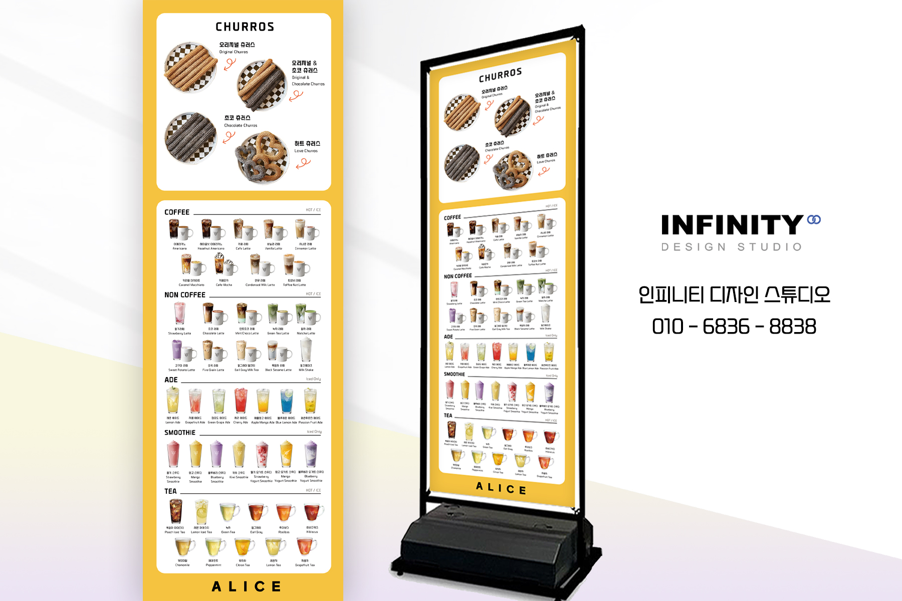 안녕하세요, 디자인, 제작 전문인피니티 디자인 스튜디오 입니다.오늘은 메뉴판 디자인 제작 소식 포스팅준비했으니, 함께 보실까요?! DID 메뉴판 디자인, 시트지 메뉴판 제작,카페 메뉴판, 제