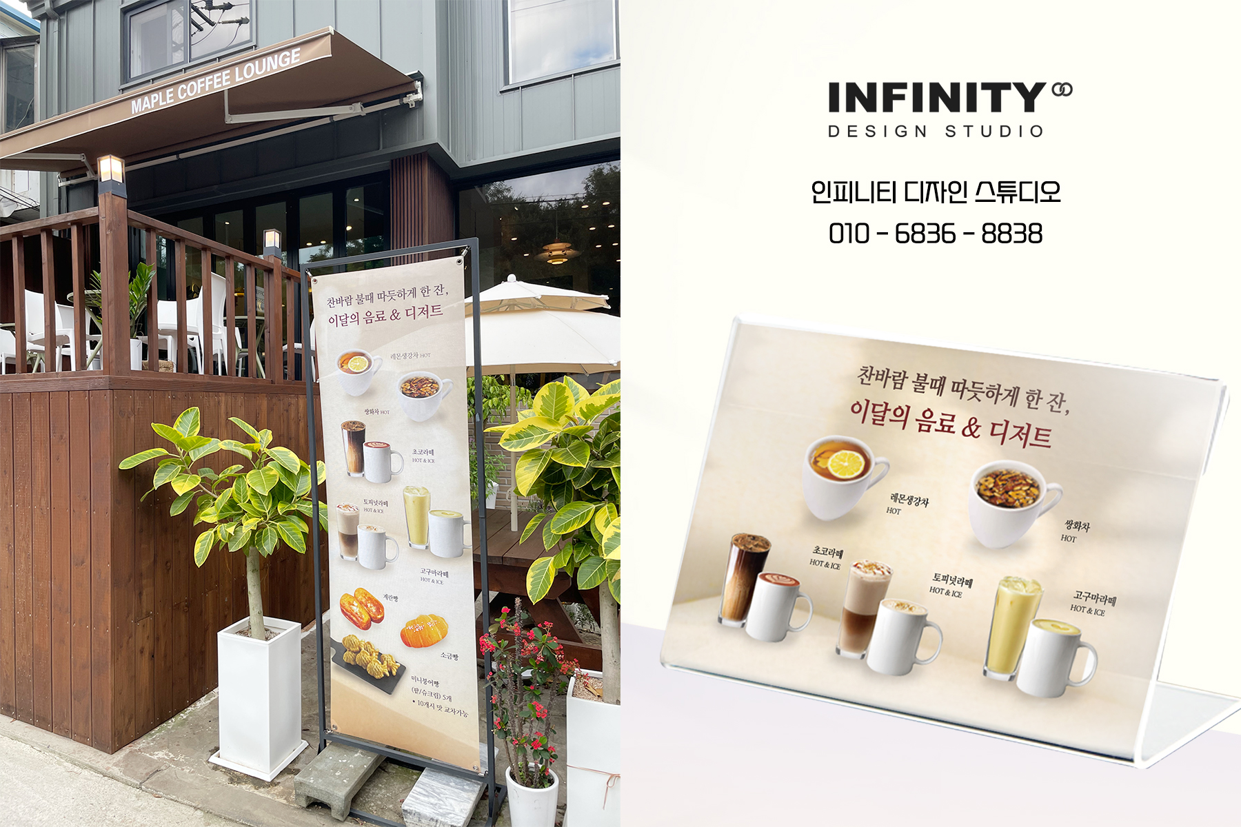 안녕하세요, 디자인, 제작 전문인피니티 디자인 스튜디오 입니다.오늘은 카페 배너 / 메뉴판 등 원하는카페 홍보물 제작 소식 포스팅 드립니다 카페 필수템 !메뉴판 배너, 메뉴 홍보 배너, 아