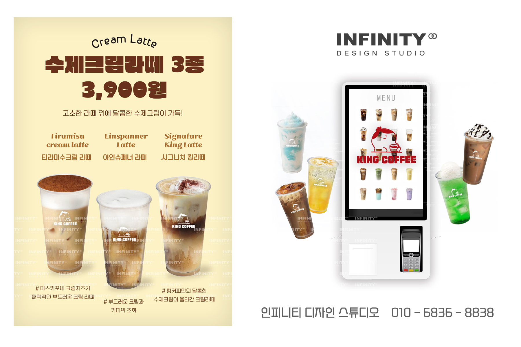 안녕하세요, 카페 홍보물 디자인, 제작 전문인피니티 디자인 스튜디오 입니다.오늘은 카페 키오스크 운영 중 필수템커피, 음료 사진 촬영제작 서비스소식 포스팅 입니다 :) 번거로운 촬영없이