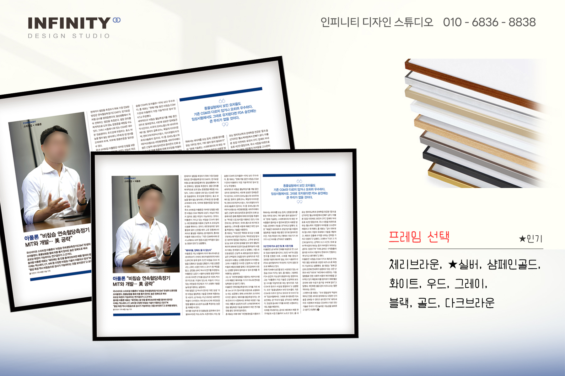한의원 액자 제작, 원장님 홍보물 디자인+인쇄+제작