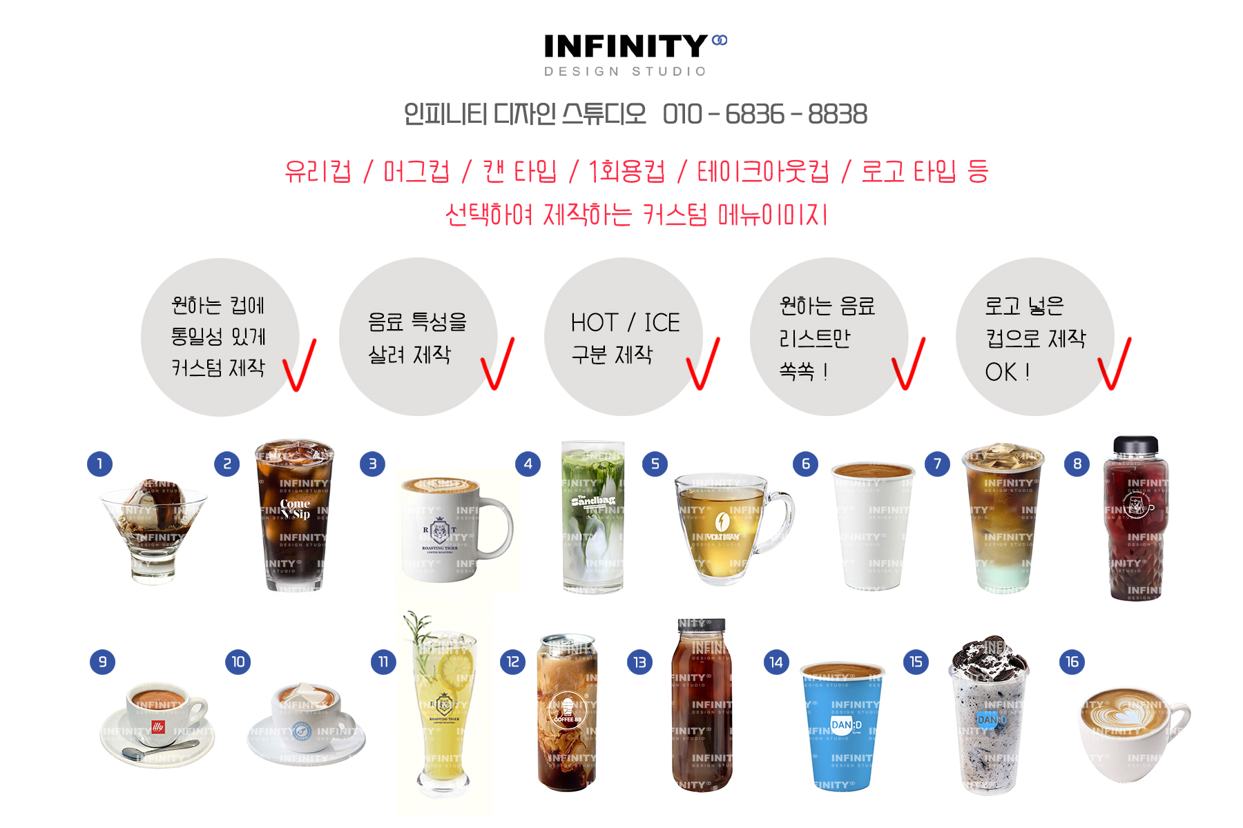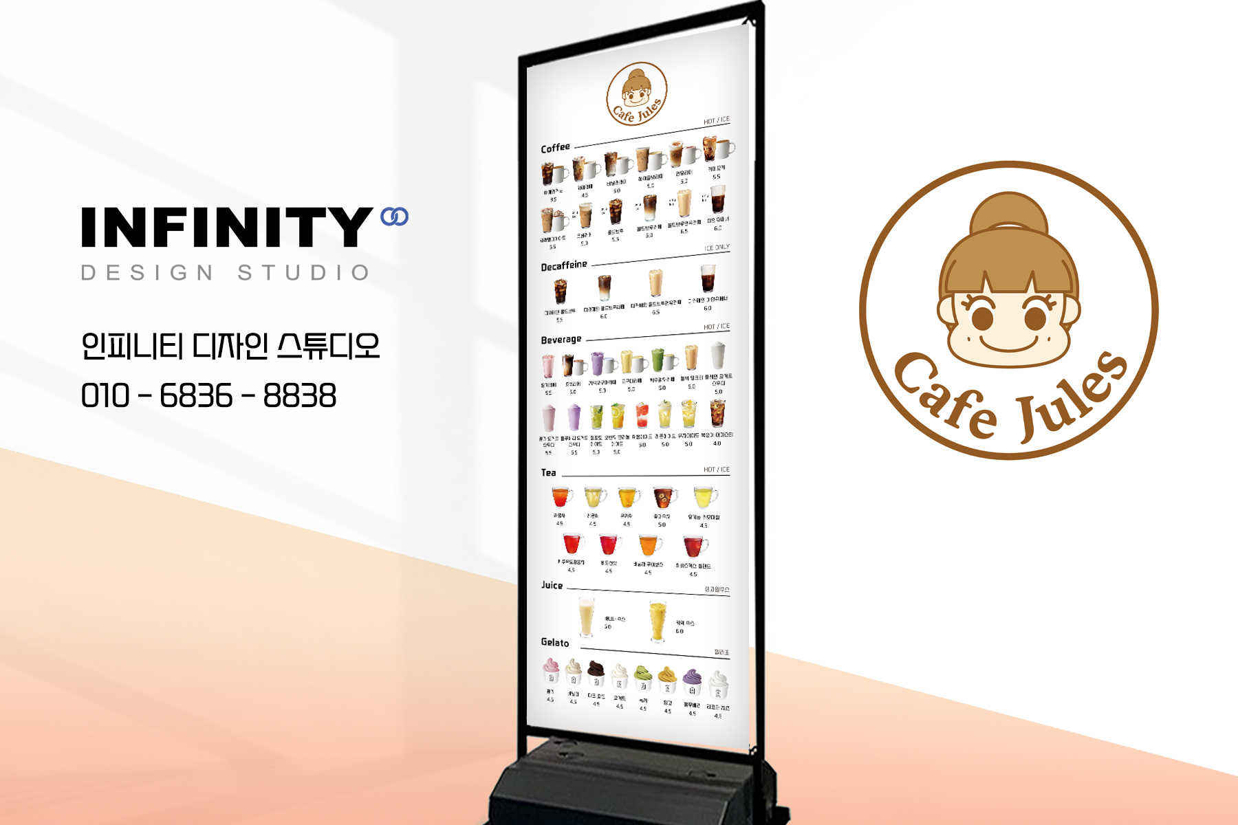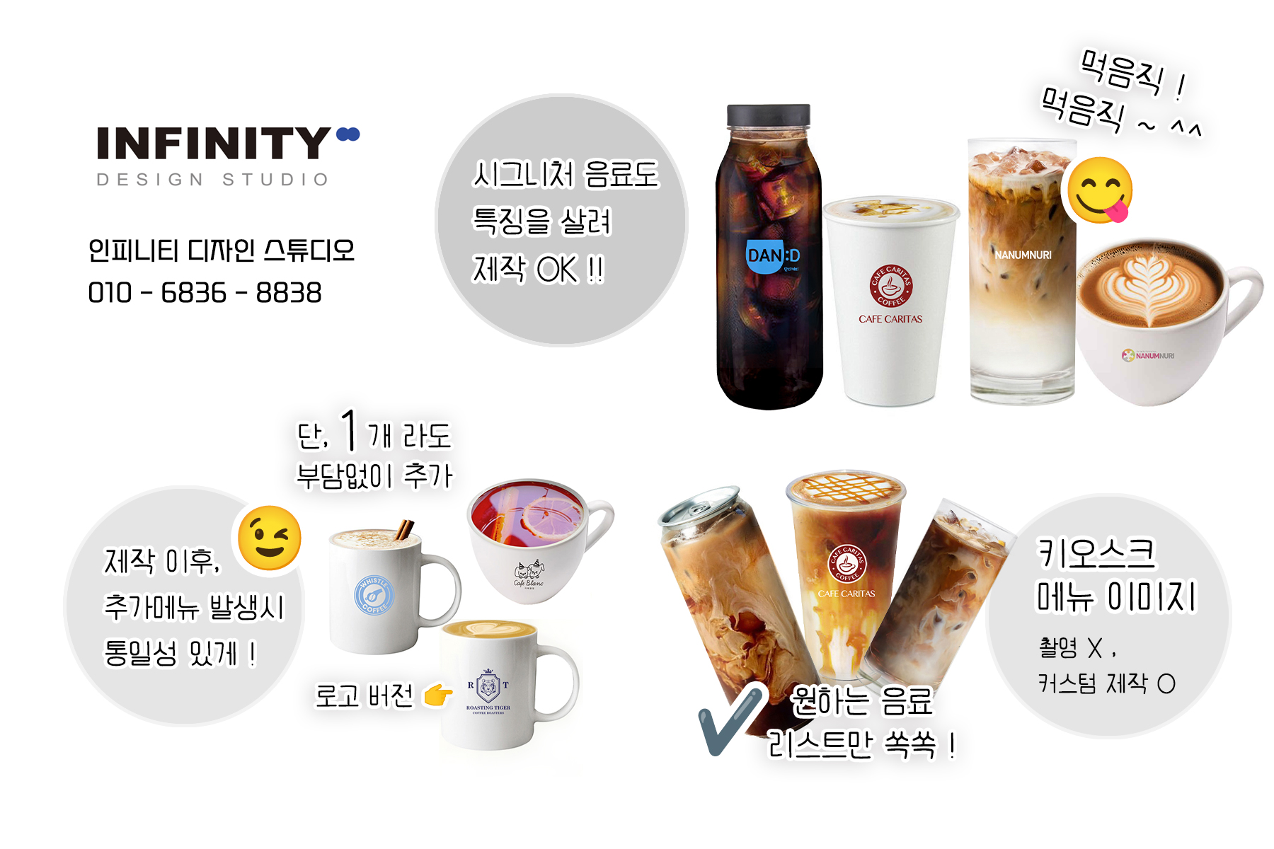 안녕하세요, 카페 홍보물 제작 전문인피니티 디자인 스튜디오 입니다. 카페 메뉴판 제작, 메뉴판 인쇄,아크릴 메뉴판 거치대 세트 원하는 곳에 세워둘수 있는 깔끔하고 예쁜메뉴판 제작 추천