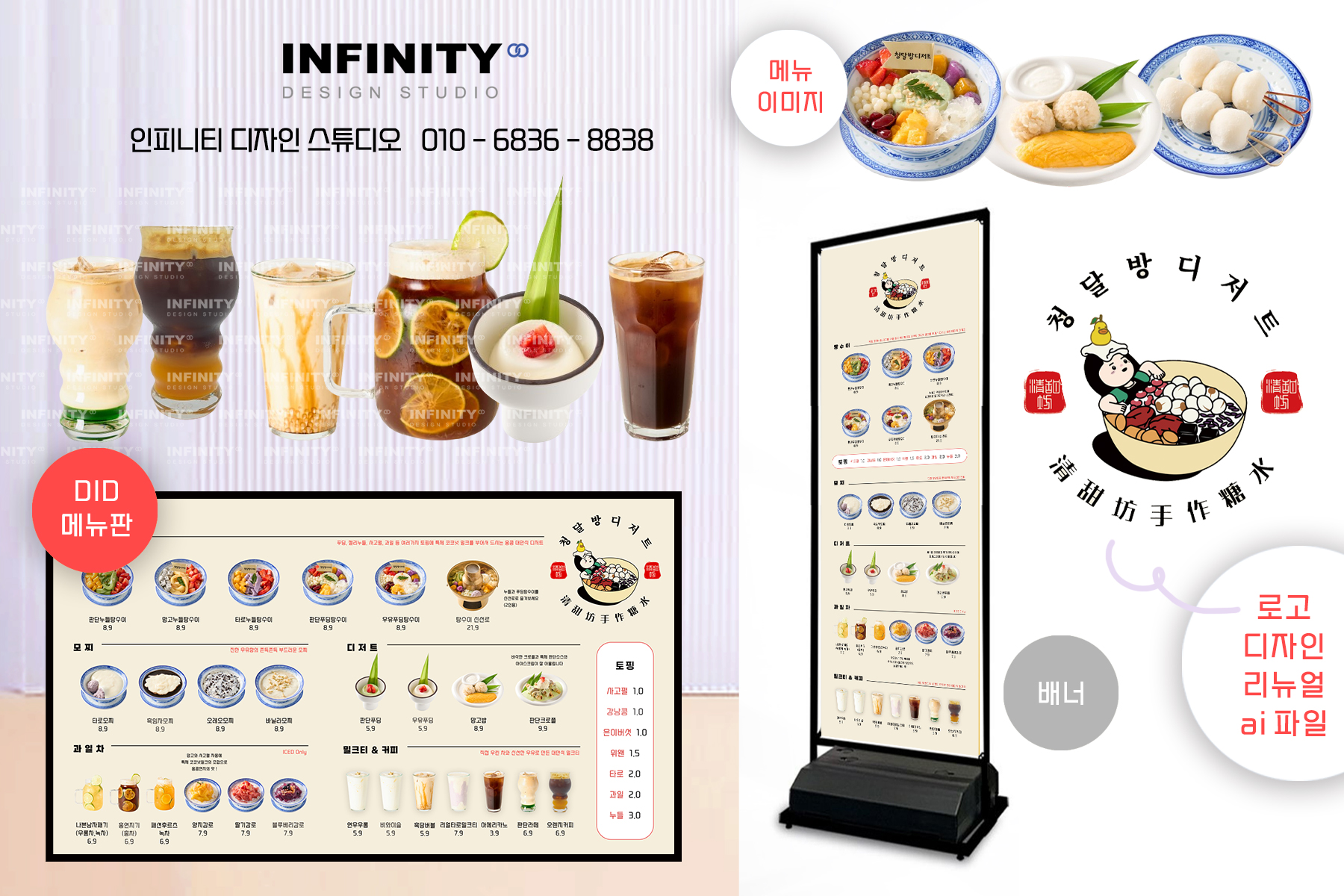 안녕하세요, 디자인, 제작 전문인피니티 디자인 스튜디오 입니다.오늘은 DID 화면에 구현될메뉴판 디자인, 로고 디자인 소식 포스팅준비 했습니다. 함께 보실까요?! 카페 오픈을 준비하며 의뢰