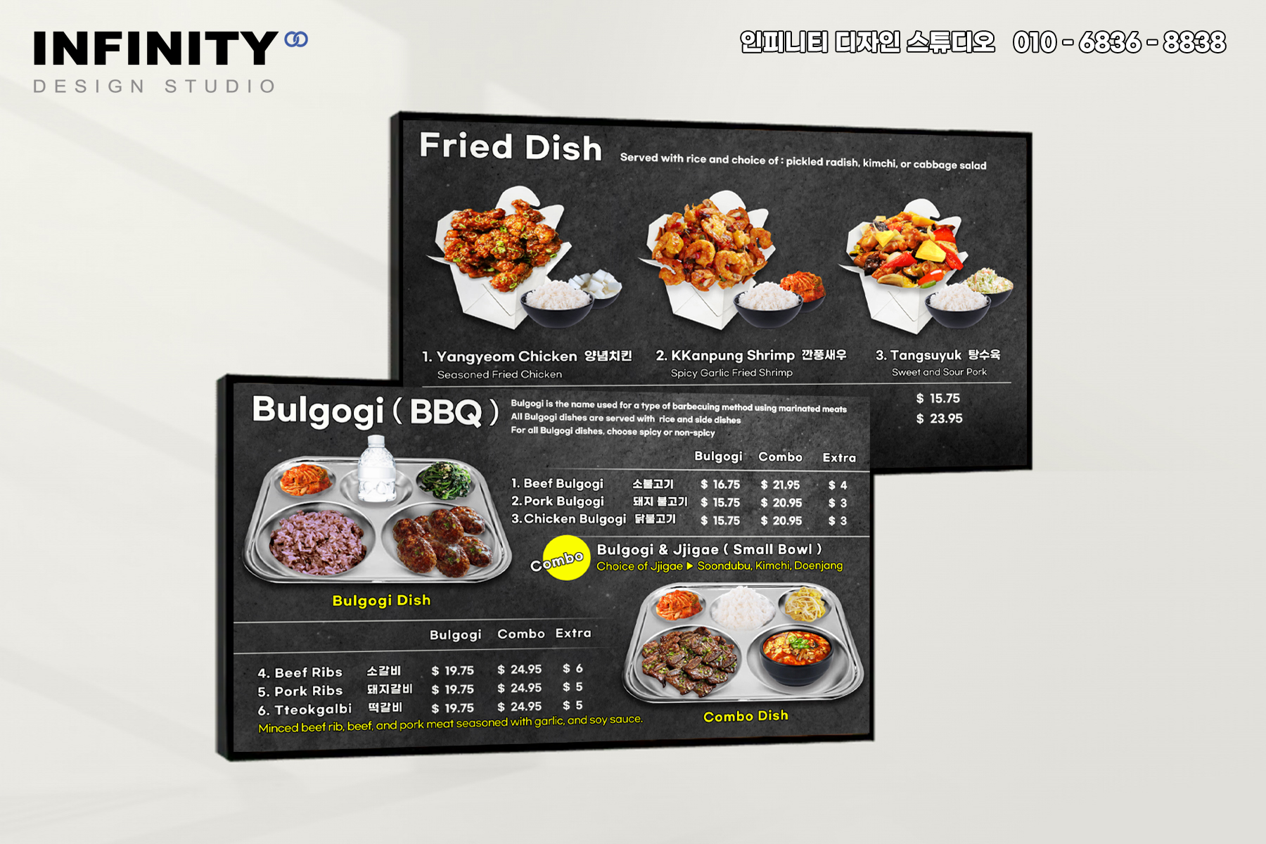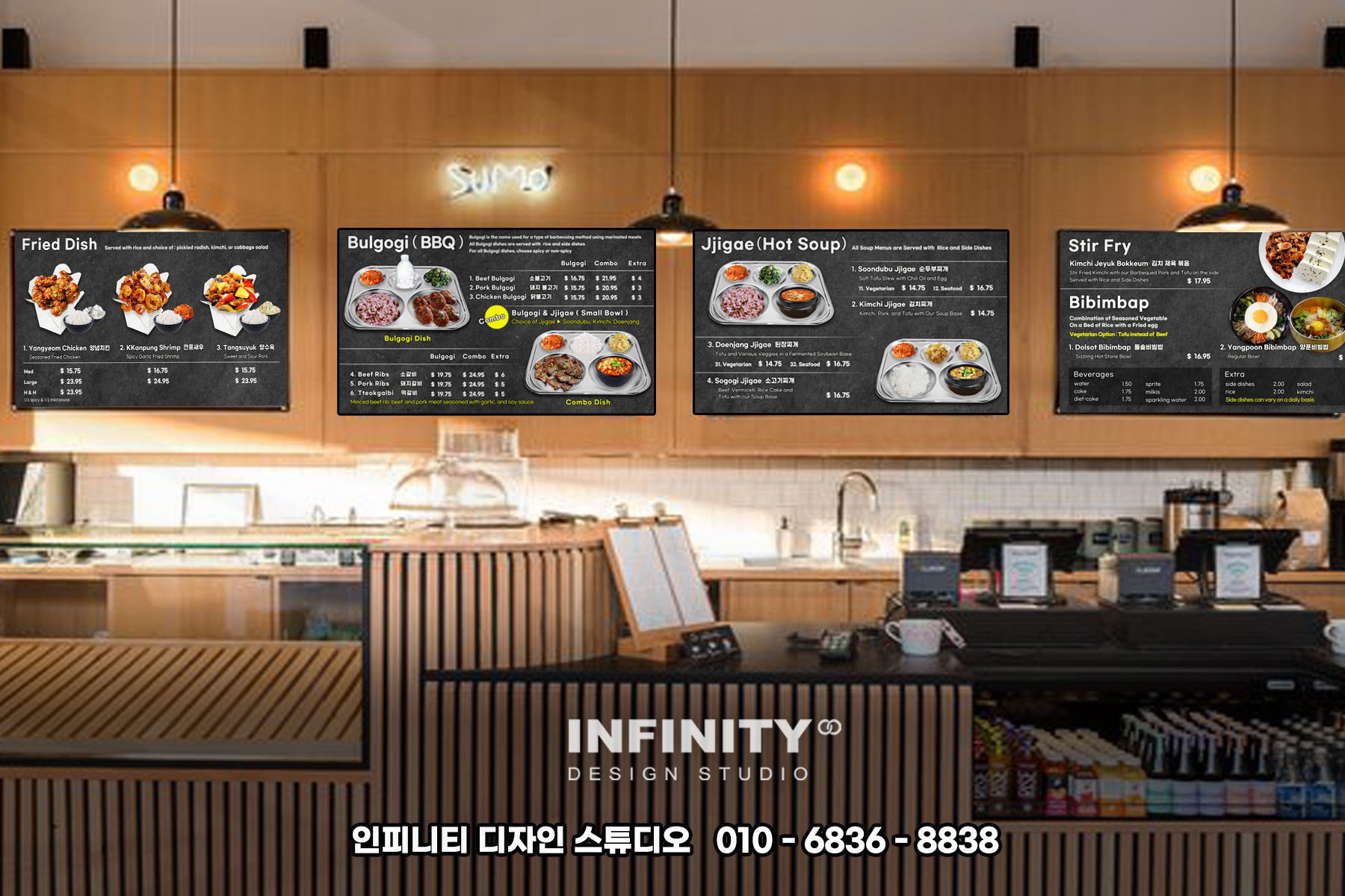 안녕하세요, 디자인, 제작 전문인피니티 디자인 스튜디오 입니다. 오늘은 음식점 메뉴판, DID 모니터 메뉴판디자인 의뢰로 진행된 소식 포스팅 드려요 :) 음식점 메뉴판, DID 모니터 메뉴판 디