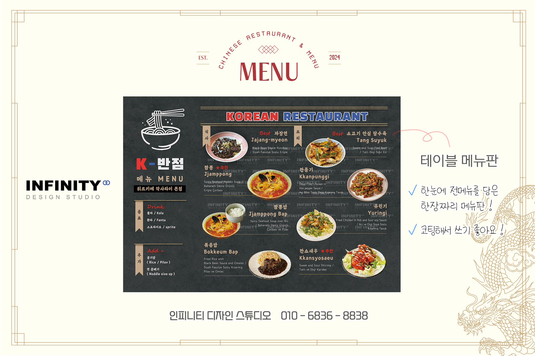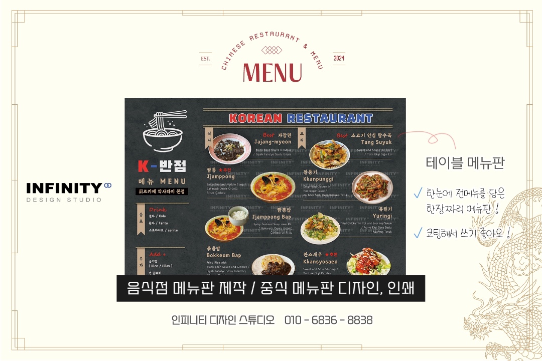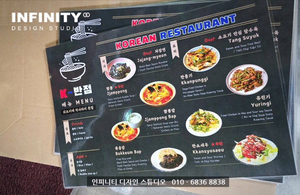 안녕하세요, 디자인, 제작 전문인피니티 디자인 스튜디오 입니다. 오늘은 음식점 메뉴판 제작 소식 포스팅준비했으니 함께 보실까요?! 한식, 일식, 중식, 양식, 동남아식 등다양한 업종에 맞