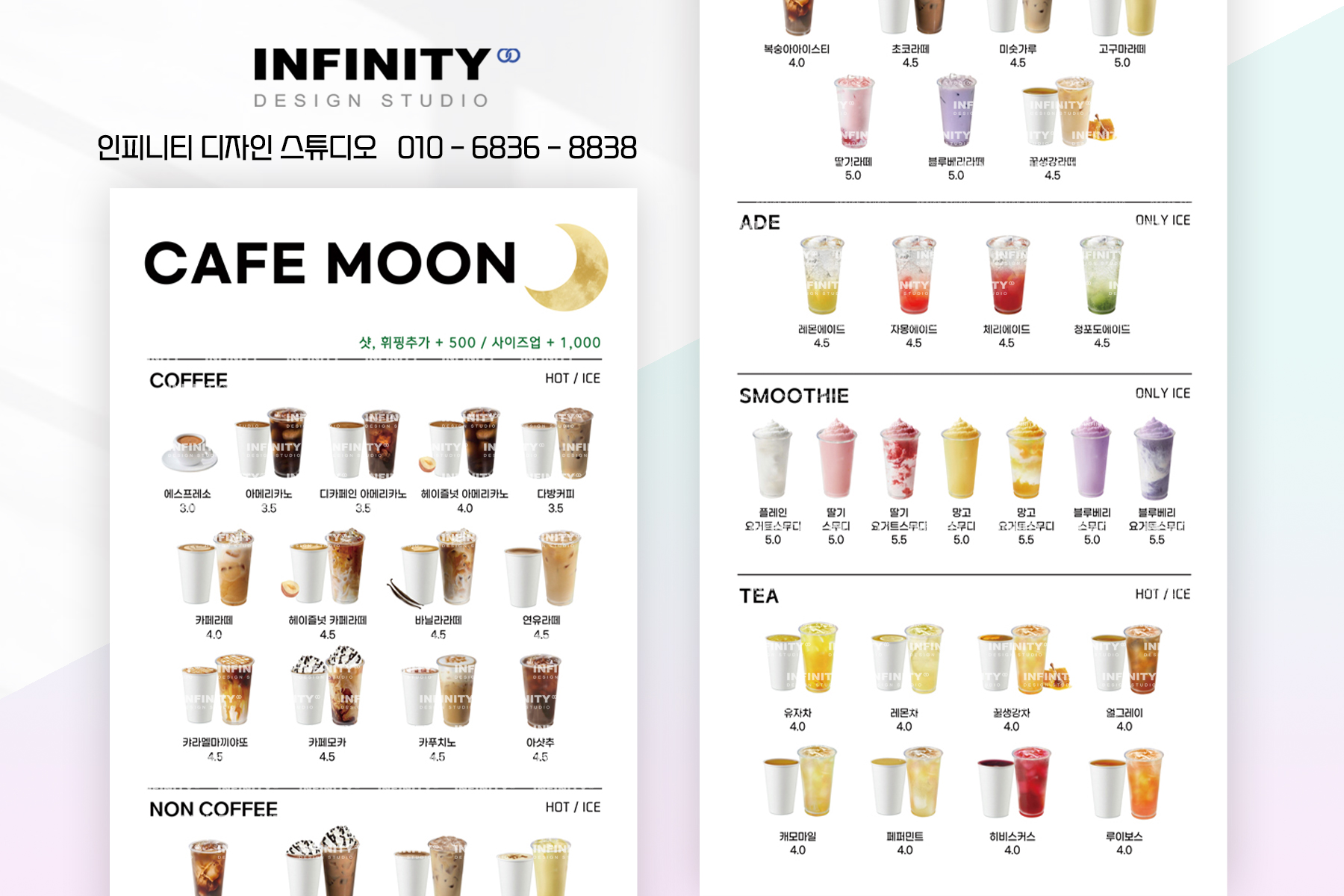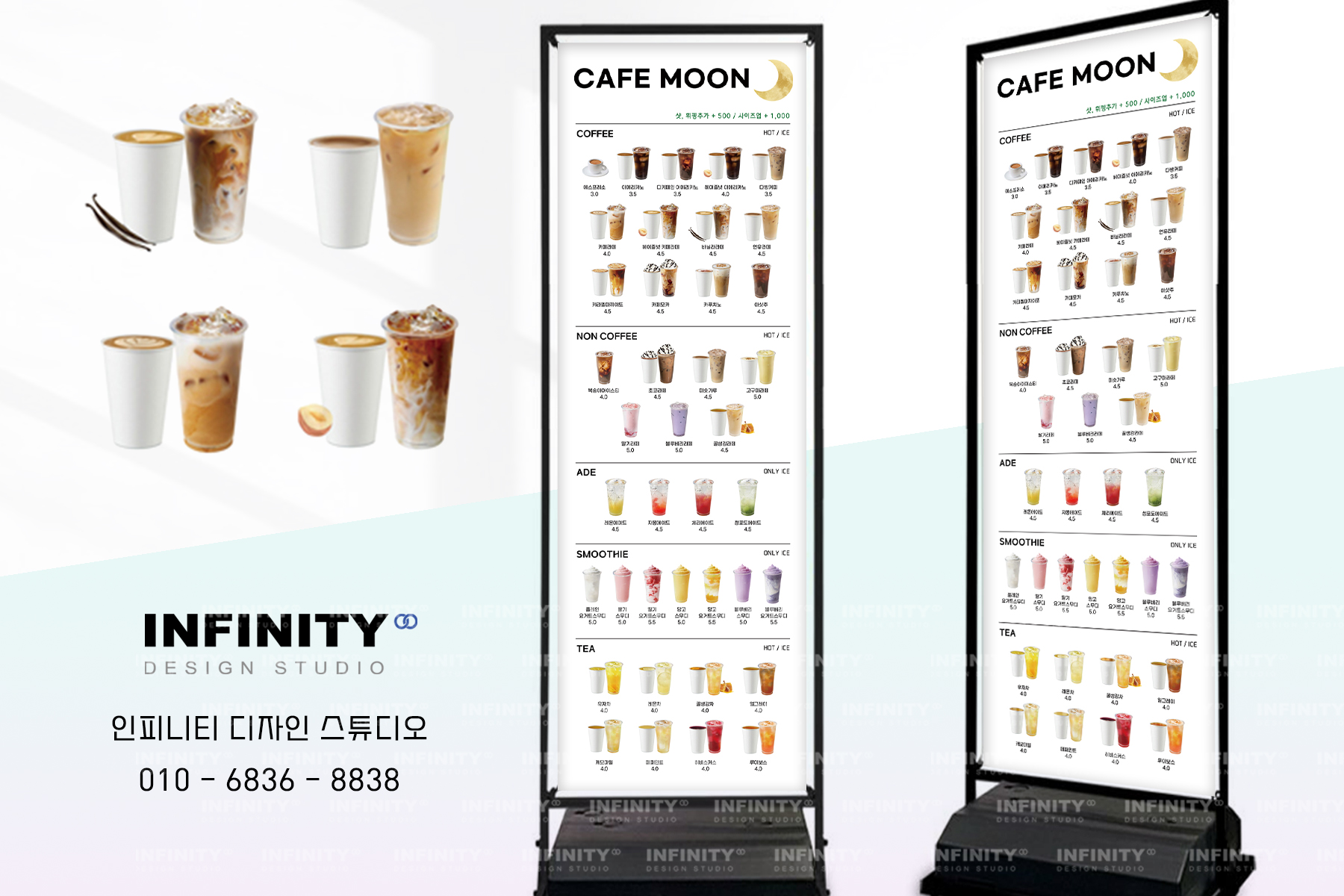 안녕하세요, 디자인, 제작 전문인피니티 디자인 스튜디오 입니다. 오늘은 카페 키오스크 메뉴사진 촬영 제작 소식 포스팅 드려요 ! 번거로운 메뉴제조, 촬영없이 진행되어개인카페는 물론,