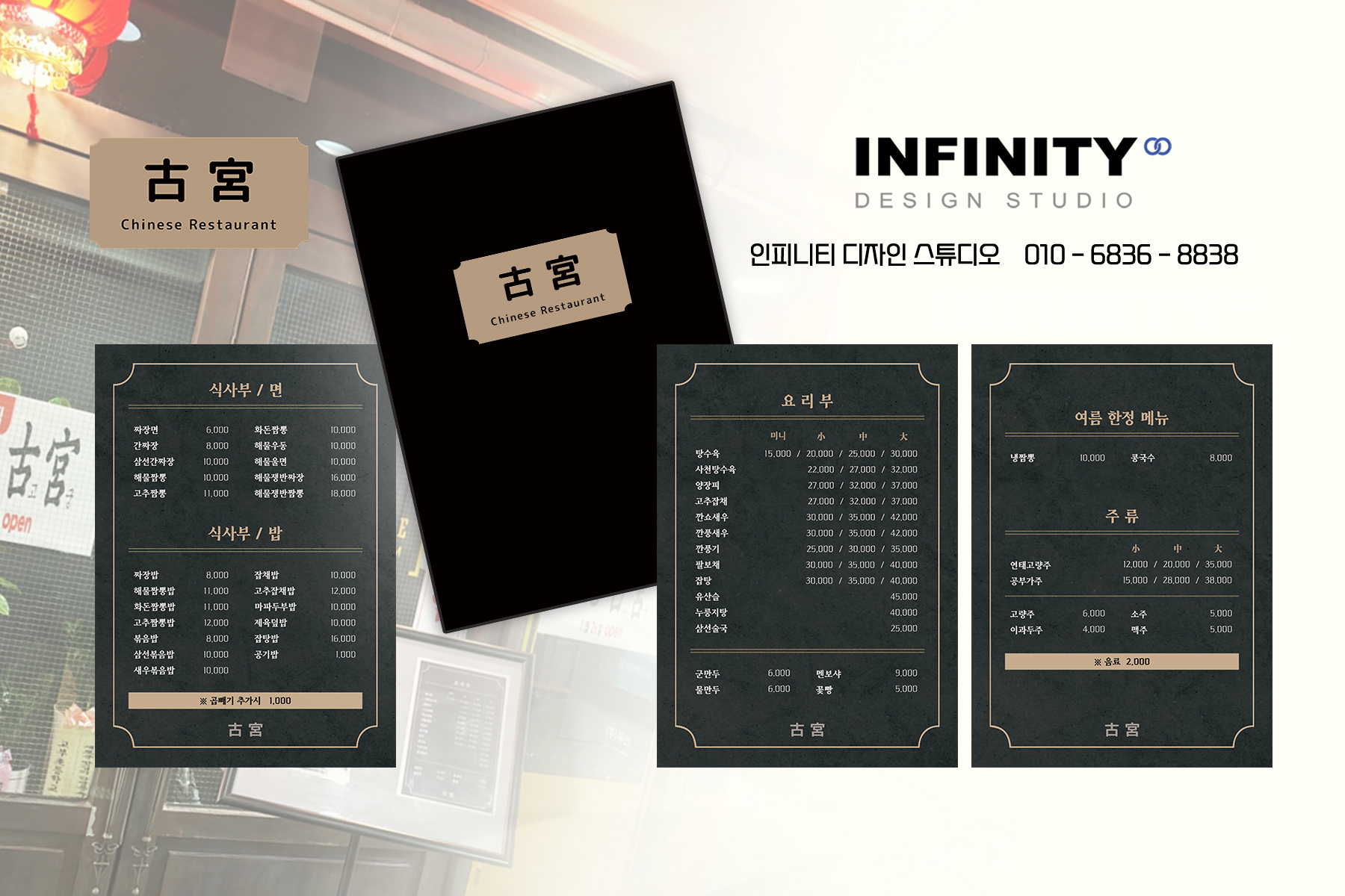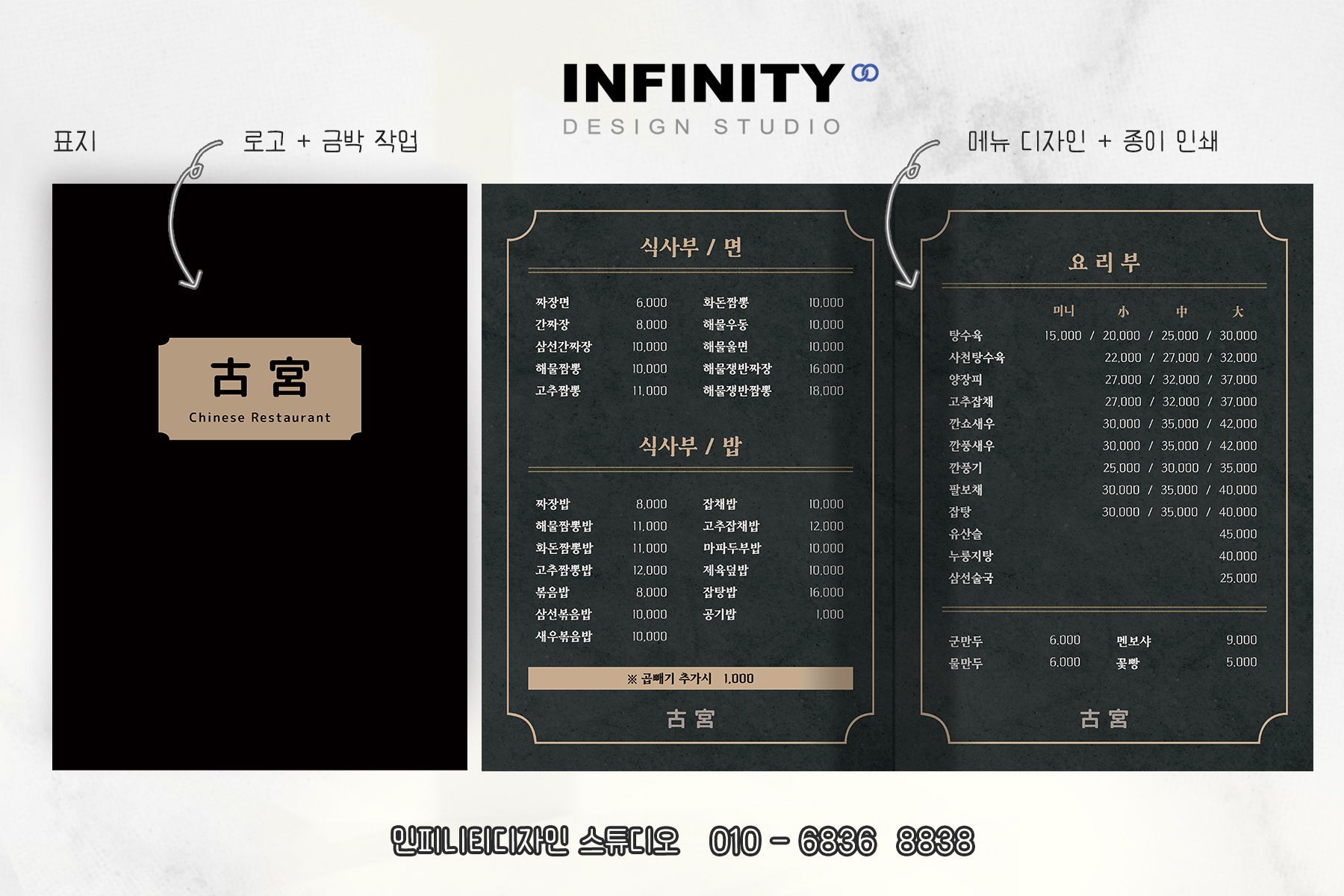 오늘은 음식점 메뉴판 제작, 금박 로고 디자인,