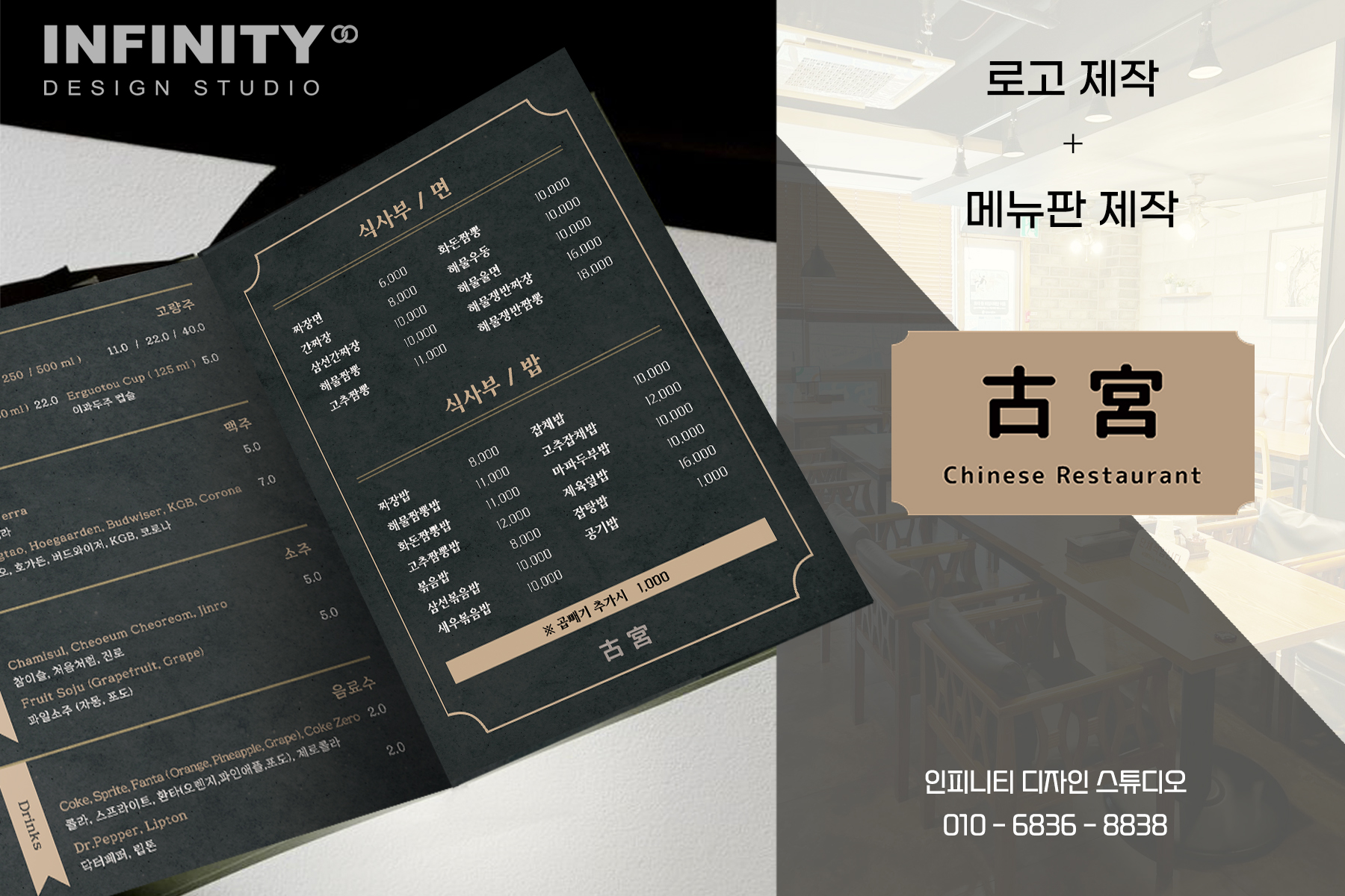안녕하세요, 디자인, 제작 전문인피니티 디자인 스튜디오 입니다.오늘은 음식점 메뉴판 디자인, 제작소식 포스팅 드립니다 중식, 한식, 양식, 일식, 동남아 음식점 등다양한 매장에서 인기인