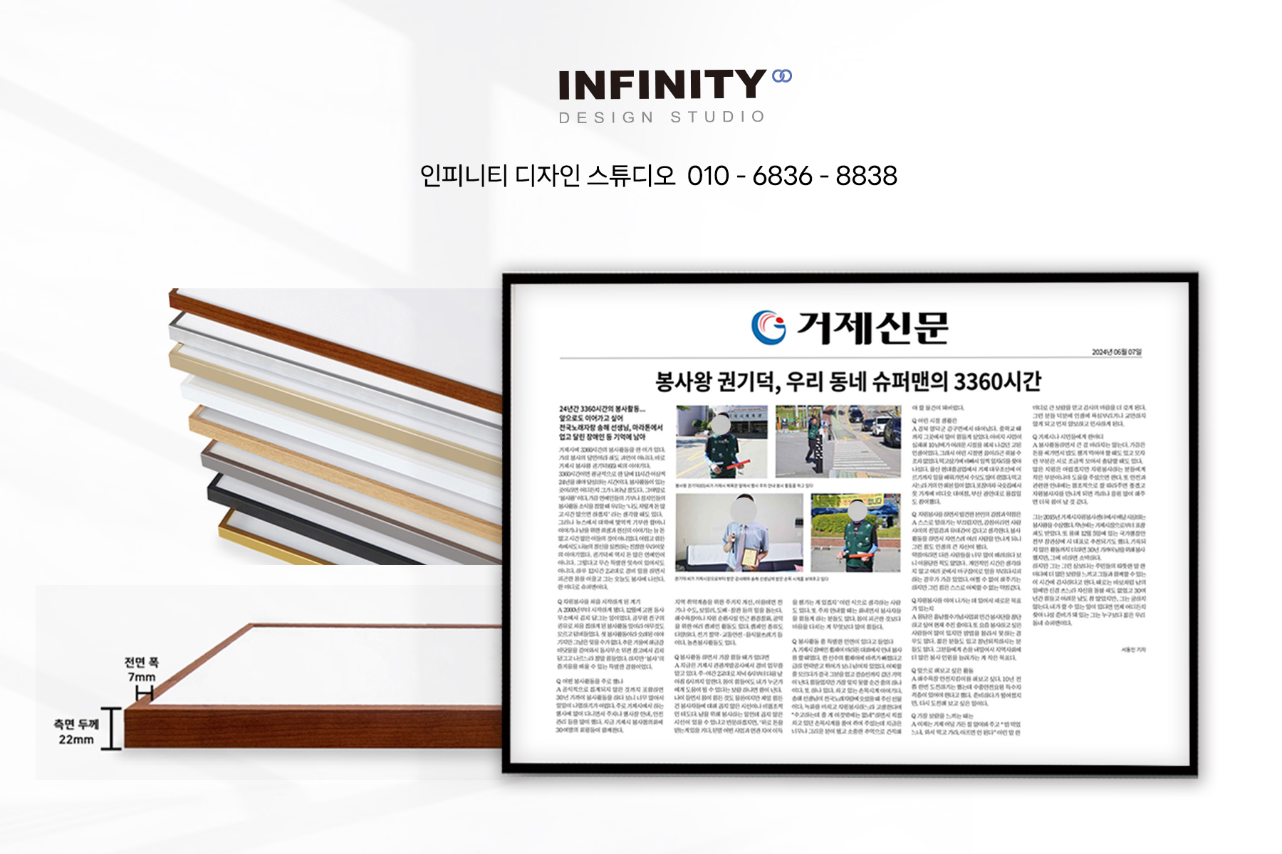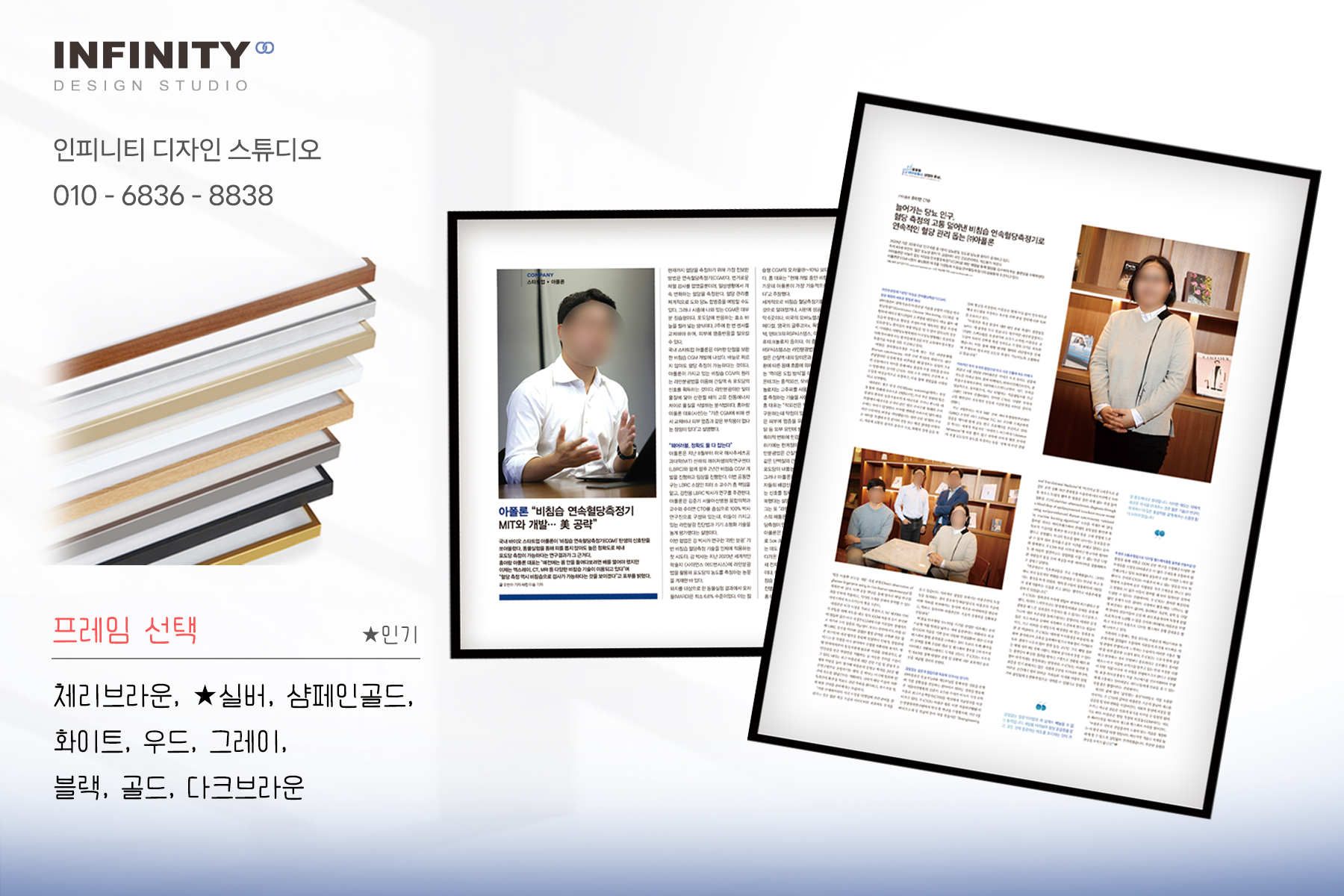신문기사 홍보 / 기념 / 보관 사무실 인테리어 액자 제작 홈 인테리어 액자 제작 안녕하세요, 액자 제작 전문 인피니티 디자인 스튜디오 입니다. 오늘은 액자 제작 소식으로 포스팅 드립니다 :)