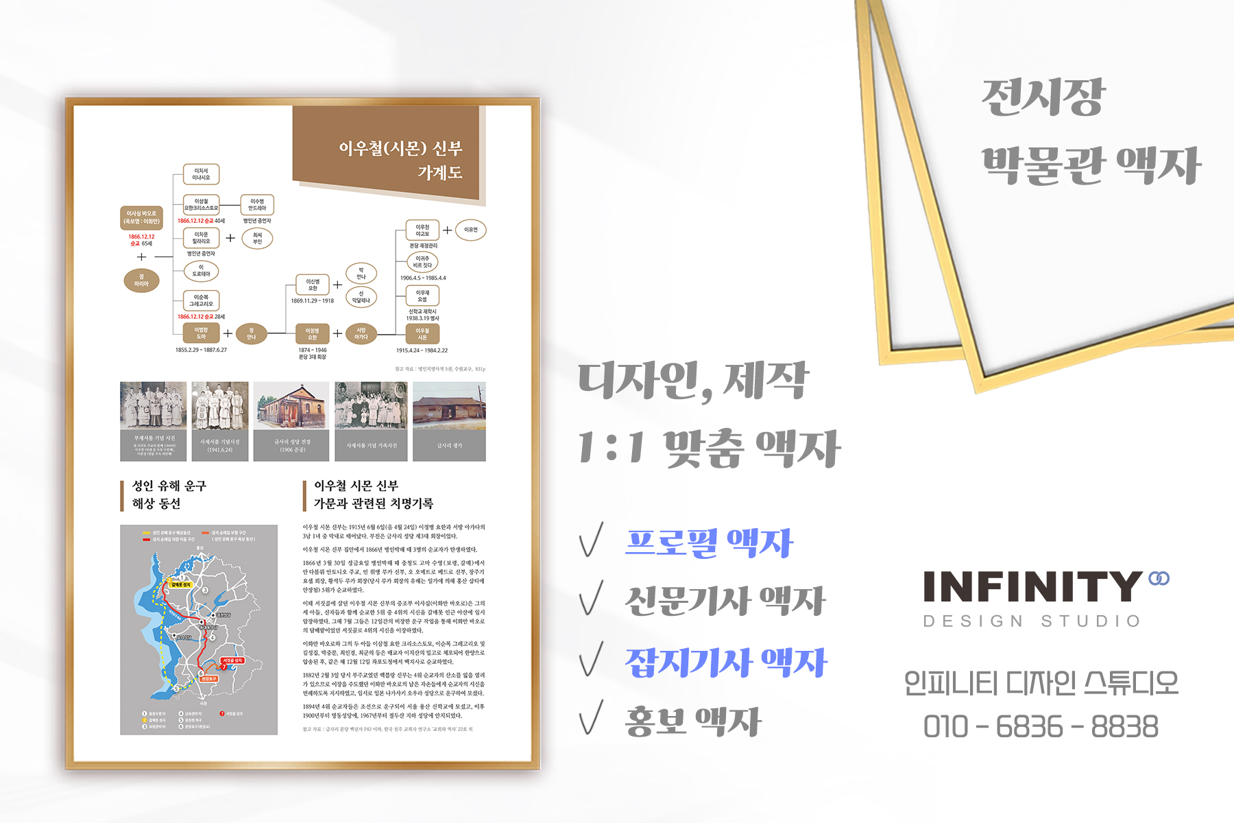 회사 액자 제작, 신문기사 홍보 액자 제작, 맞춤 액자 디자인, 전시장 액자 제작