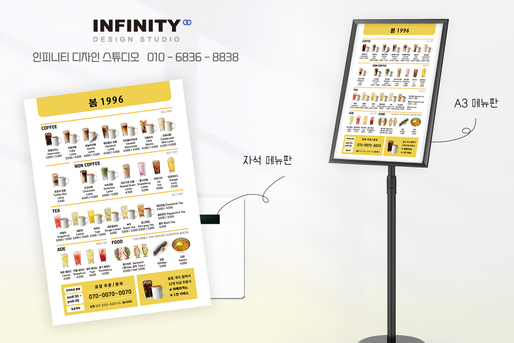안녕하세요, 디자인, 제작 전문인피니티 디자인 스튜디오 입니다.오늘은 카페 메뉴판 / 자석 메뉴판 제작소식 포스팅 드려요 ! 자석메뉴판과 메뉴판 배너는필수템으로 인기만점인데요~! 카페