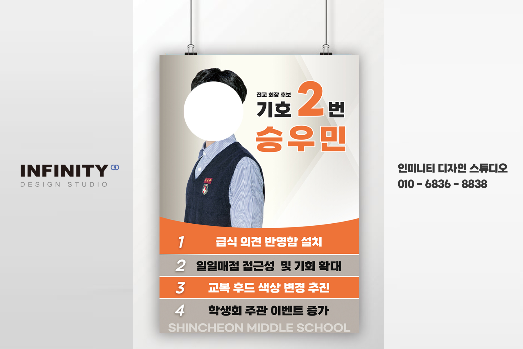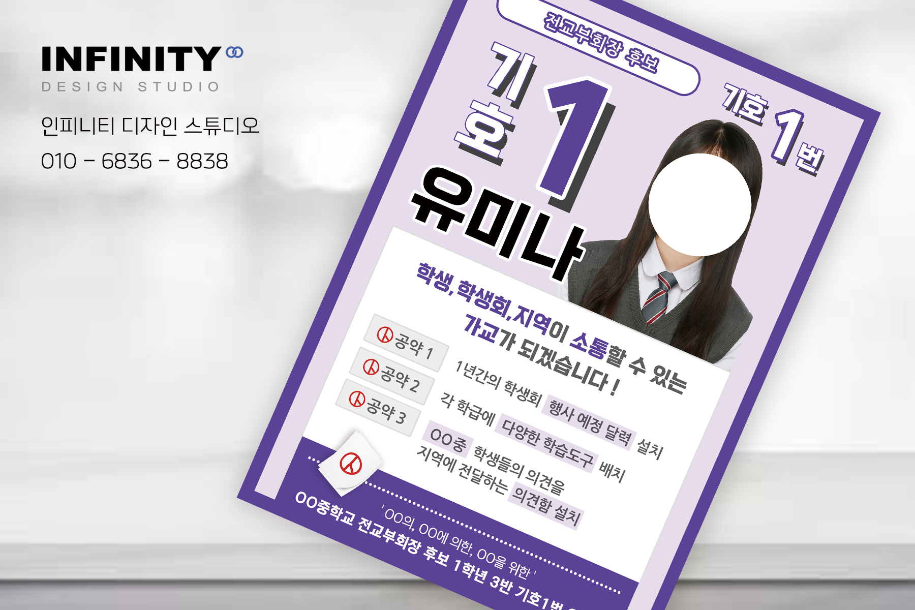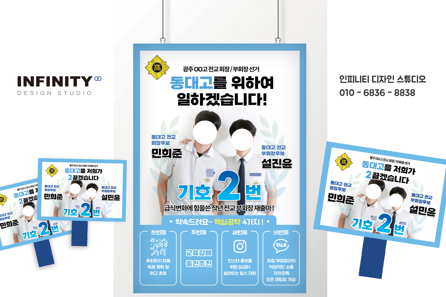 안녕하세요, 디자인, 제작 전문인피니티 디자인 스튜디오 입니다.오늘은 전교회장 부회장 선거포스터,선거피켓 추천 포스팅 드립니다 :) 깔끔한 디자인과 함께 인쇄, 제작도한번에 진행해드