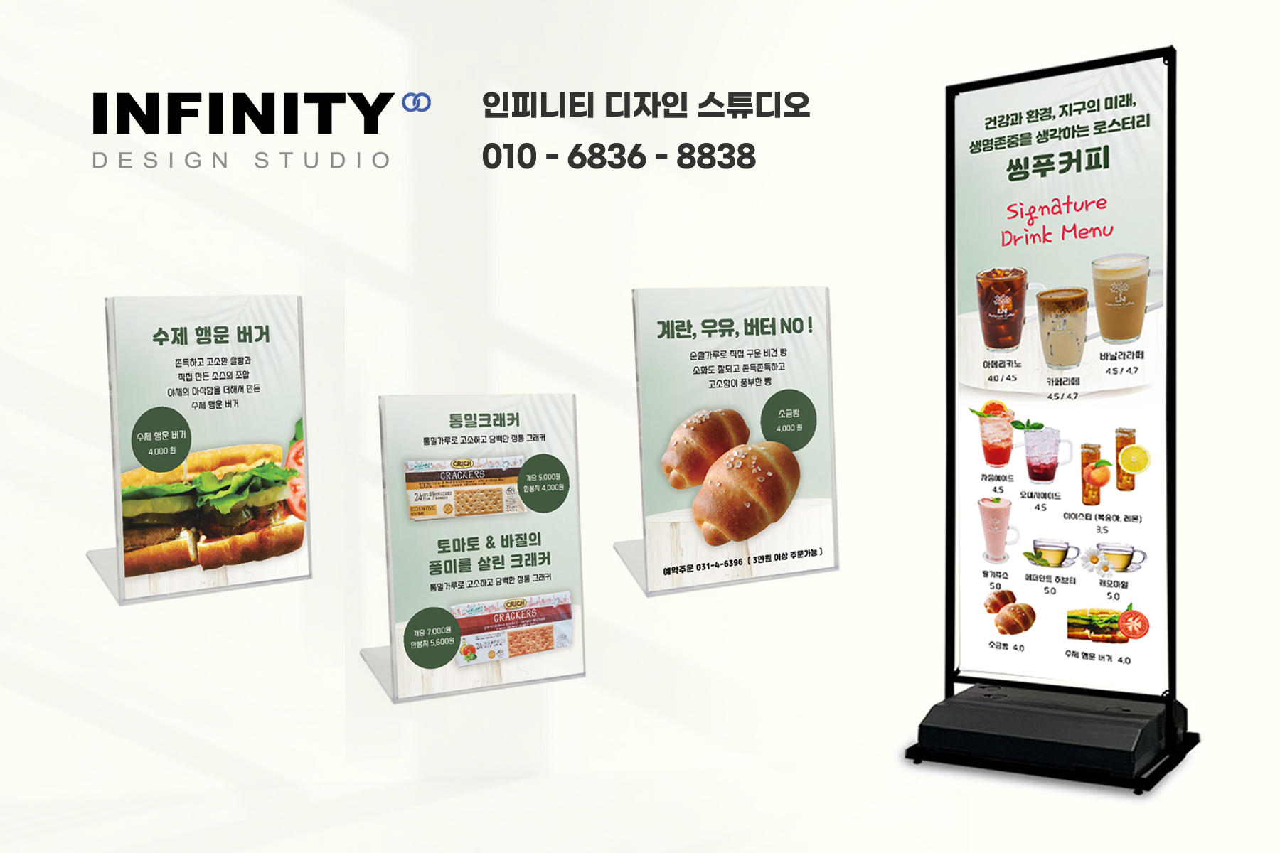 안녕하세요, 디자인, 제작 전문인피니티 디자인 스튜디오 입니다. 오늘은 카페 키오스크 사진 촬영제작 소식포스팅 드립니다 :) 번거로운 촬영없이 제작 진행해드려우리매장 세트로 통일성