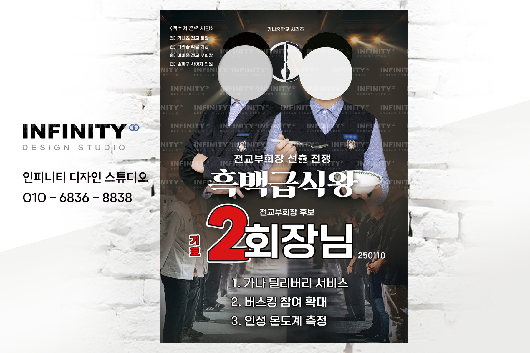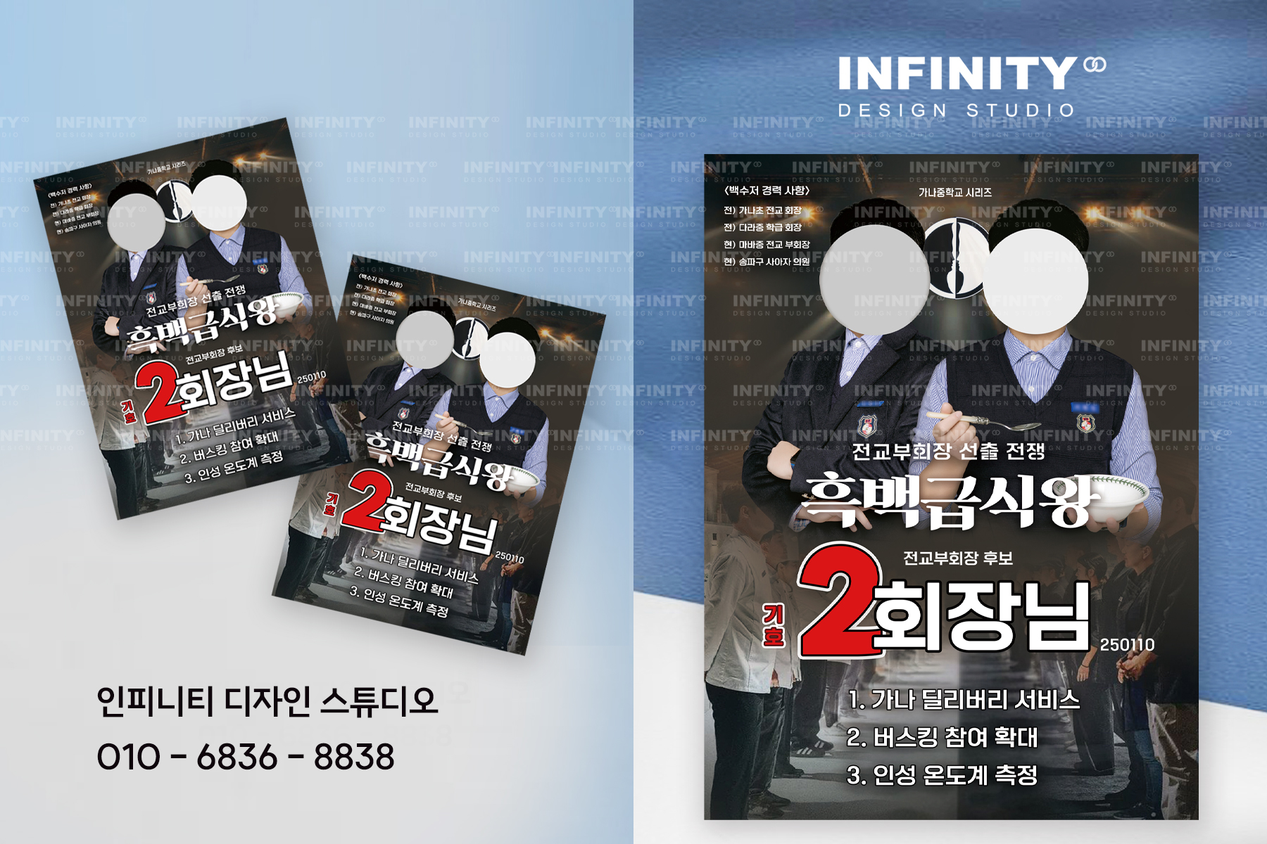 안녕하세요, 디자인, 제작 전문인피니티 디자인 스튜디오 입니다.오늘은 교육대학원 총학생회장 선거 준비로의뢰해주신 선거포스터 디자인 제작소식 포스팅 드립니다 :) 바쁜 선거철, 일정에